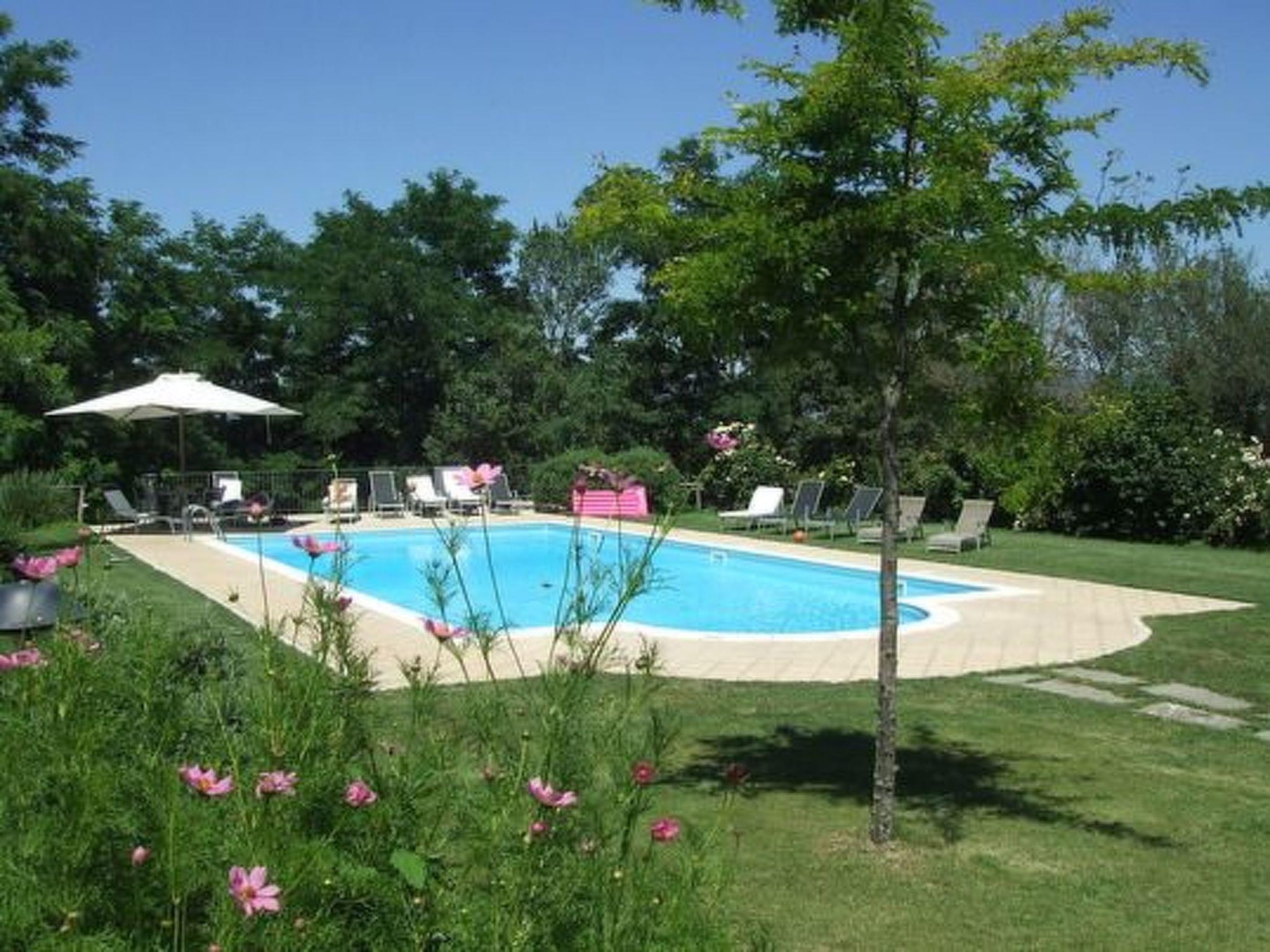 A barbecue area, fenced and partially covered, is a two-minute walk away. It is equipped with electricity and water connections. There is a large table and chairs. A few steps away is a private park, shared with other owners of the hamlet. The park has a fantastic swimming pool (12 x 8 m) in a panoramic position. By the pool is a private bar with toilets, outdoor shower and Wi-Fi access. Sun loungers and parasols are available in the garden. It is possible to park vehicles on the road in front of the house.