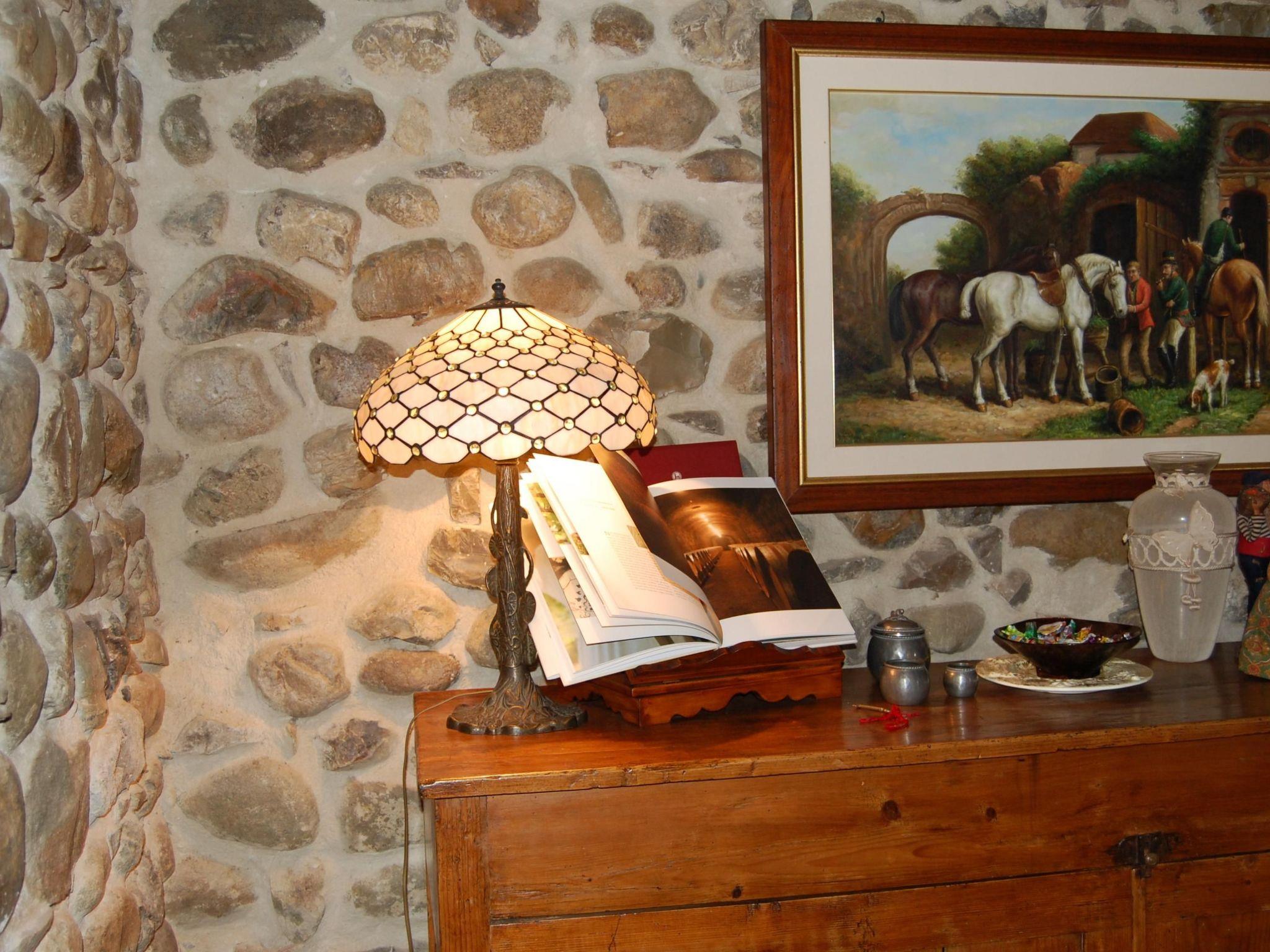 The 19th century country house is built entirely of stone. It was carefully restored by the owners in 2003, preserving the original structure and reusing as many original materials as possible. The load-bearing walls, built with river stones and perfectly preserved, deserve special mention. Even inside, during the restoration, the old charm was maintained: the four-metre high ceilings are made of wooden beams and clay bricks, and the floors are made of handmade clay tiles (some of which are original), giving the impression that time has stood still. On the ground floor of the country house there is a spacious kitchen-dining room with a fireplace, a large dining table, sofas and a well-equipped brick kitchenette. In addition, on the ground floor there is a bedroom with a double bed (160x190cm) and a bathroom with shower en suite, a bedroom with two single beds (each 80x190cm) and a bathroom with whirlpool tub. An external staircase leads to the first floor, where there is a large living room with sofas and a dining table. From here there is access to a well-equipped kitchen with wood-burning stove and a utility room with laundry area. There are two bedrooms, each with a double bed (160x190cm), one of which has a private bathroom with shower, and a bedroom with two single beds (80x190cm each). Another bathroom has a bathtub. All the windows in the villa are fitted with mosquito nets. The living room and kitchen offer a view of the pool, while the bedrooms offer a view of the surrounding hills. The rooms are tastefully and elegantly furnished in the old Arte Povera style. The bedrooms have a precious charm and are all equipped with wrought iron beds. The house offers every comfort: TV in the living room and bedrooms, washing machine, coffee machine, DVD and CD player, stereo system. The fireplaces and wood-burning stove cannot be used.