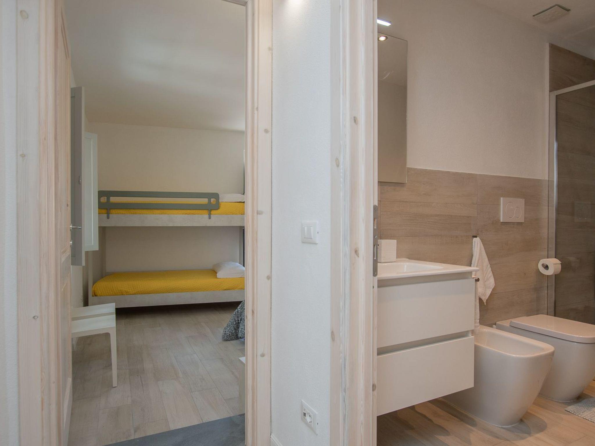 Internally, the flat shines with its brightness and effective organisation of space. The bedroom is equipped with a comfortable double bed and a bunk bed, perfect for accommodating a family, with a large window allowing views of the valley and contributing to a cosy atmosphere. The presence of a wardrobe provides ample space to conveniently store personal belongings. The modern and functional kitchen is equipped with everything needed to prepare meals, including cooking utensils, plates, cutlery, microwave and hob. The dining area, which overlooks the valley, enhances the dining experience with a breathtaking panorama. For maximum comfort, the flat also has air conditioning and a TV, while the bathroom is complete with a shower and all the necessary amenities.
