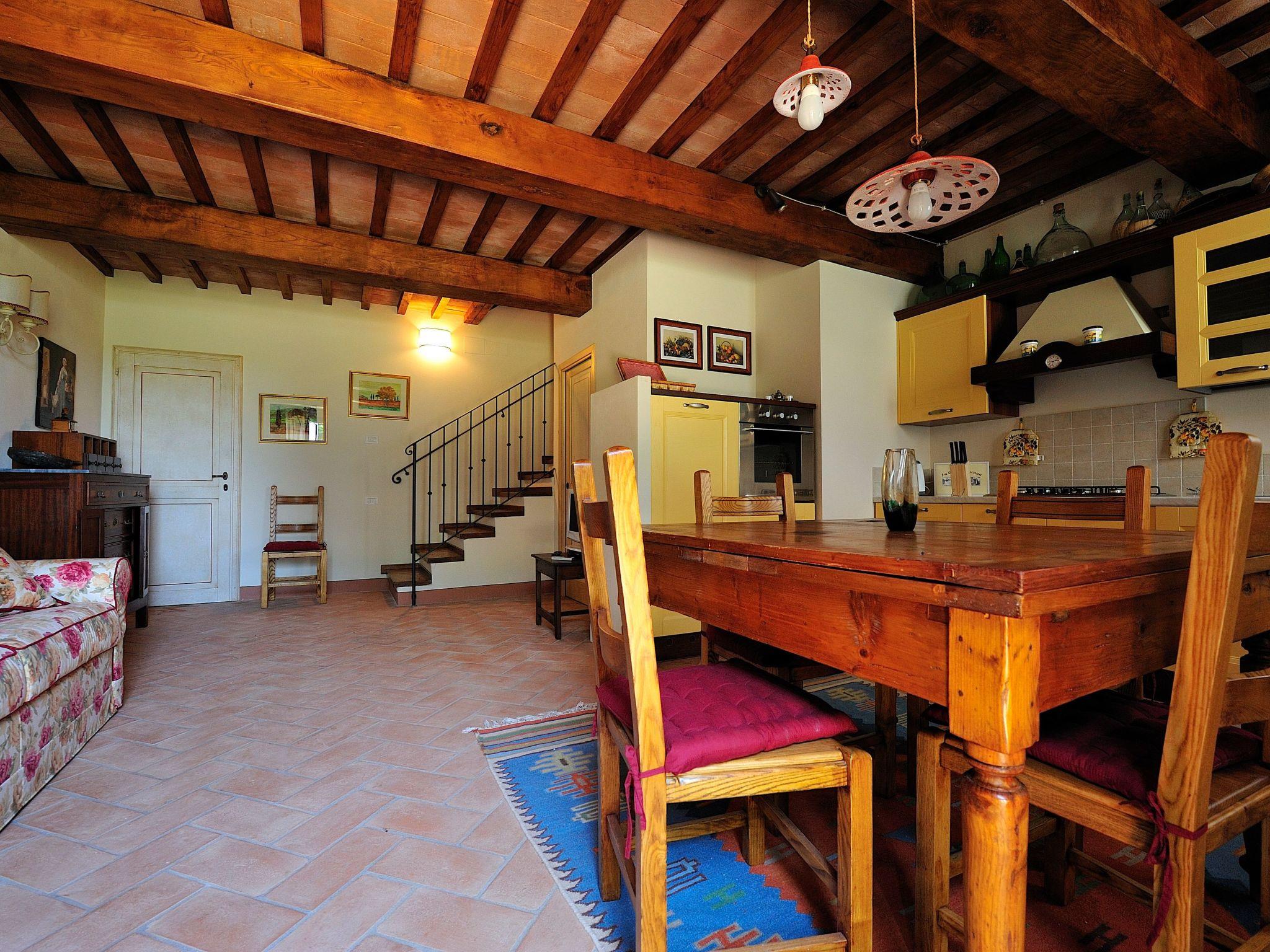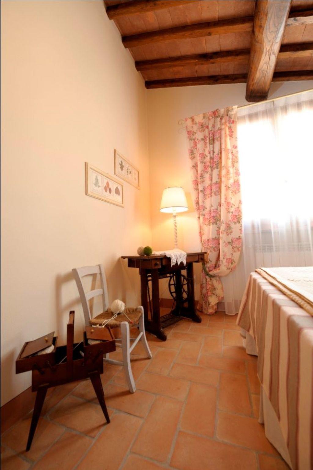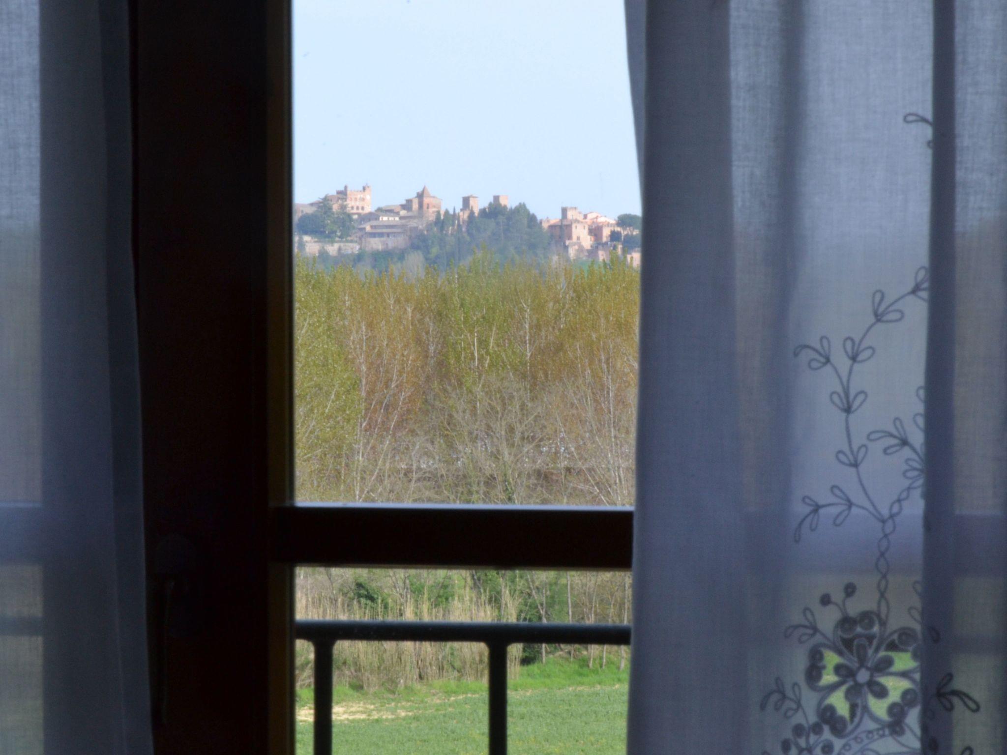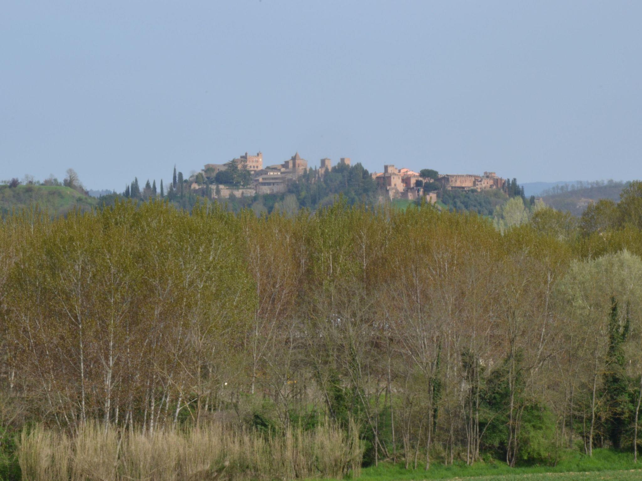 The flat is located in the Tuscan countryside with a splendid view of the vineyards and the medieval village of Certaldo Alto. The flat is in a structure with only 3 flats. The structure is surrounded by more than 20 hectares of high-trunk woodland where you can walk or go mountain-biking in a total fusion with nature, following paths among holm oaks, oaks and turkey oaks.
