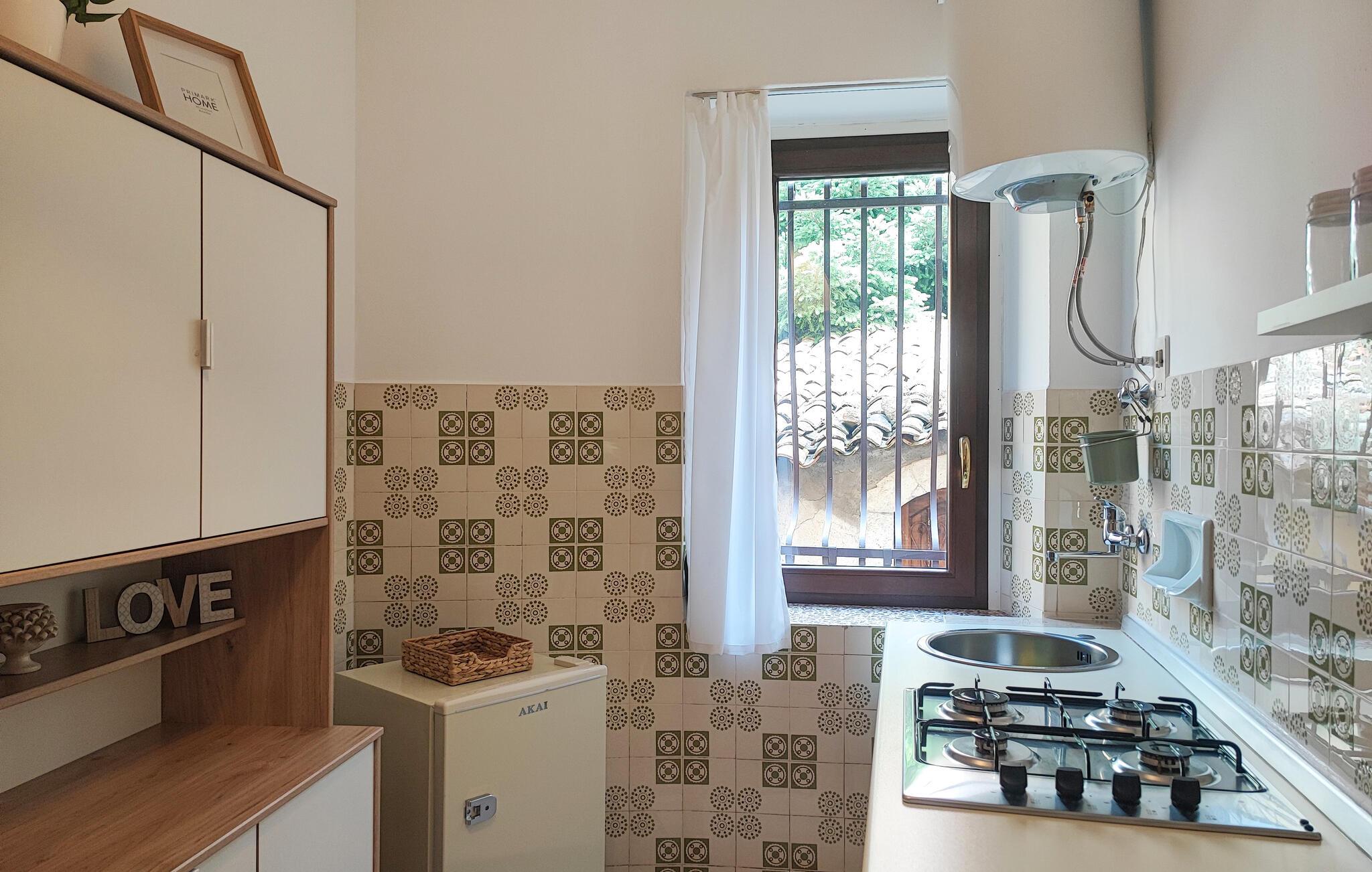 Denne hyggelige ferieleiligheten ønsker deg velkommen med et nydelig, moderne interiør i hjertet av Castelmola, og tilbyr deg et koselig tilfluktssted mens du utforsker de mange skattene rundt Etna. Her kan du starte dagen med en solid frokost, planlegge aktivitetene dine i fred og ro og slappe av i den koselige sofaen etter en lang tur.