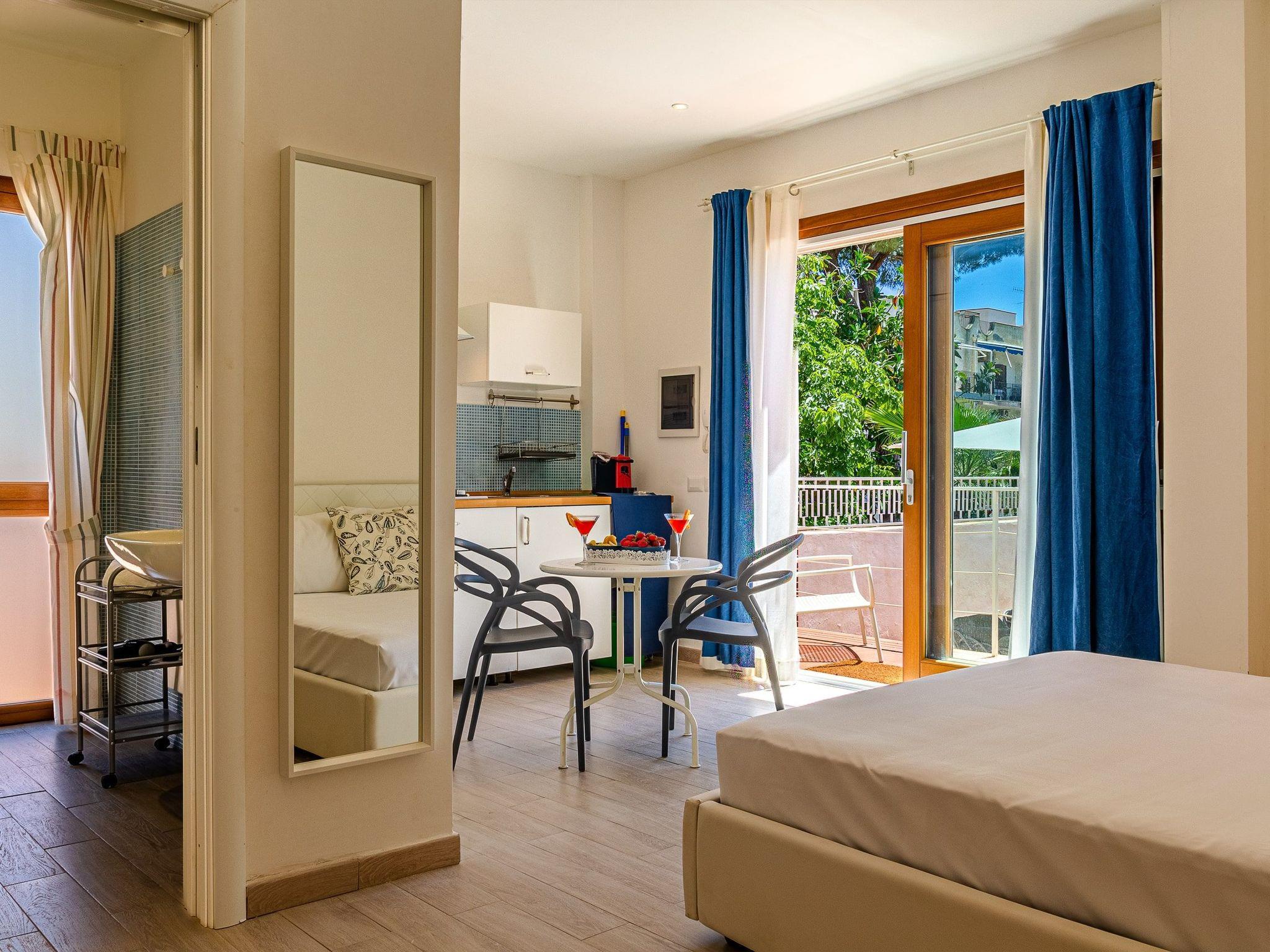 The interior of the studio is furnished with care and attention to detail, creating a cosy and functional environment. The living area is bright and airy, with a well-equipped kitchenette for preparing delicious meals. After a day spent exploring, you can relax on the comfortable sofa or enjoy a glass of wine on the terrace, taking in the beautiful swimming pool.