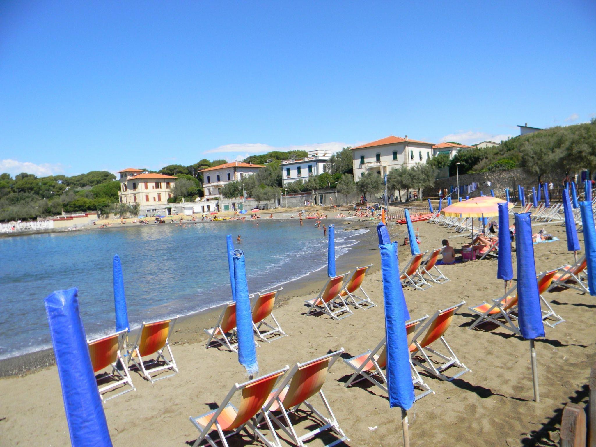 The flat is on the raised ground floor of a four-family house located in a quiet residential area of Castiglioncello, a maritime hamlet of Rosignano Marittimo. The flat has an independent entrance and consists of a kitchen-living room with a sofa bed for two persons (160x190 cm), a dining table and a kitchenette separated from the living room by a low wall and equipped with an oven, a gas cooker, a fridge with freezer and a microwave. There are two double bedrooms: one with a double bed (160x190 cm) and one with two single beds (80x190 cm each). The bathroom is equipped with a bathtub. The flat is equipped with a TV, washing machine, heating and a fan. For a child, there is either a cot or a folding cot available. There is a wifi connection.