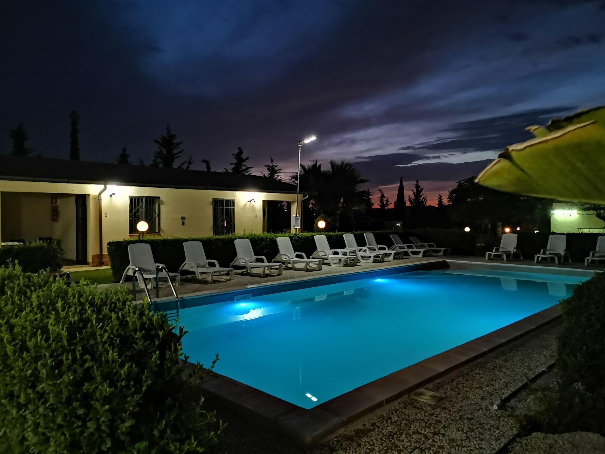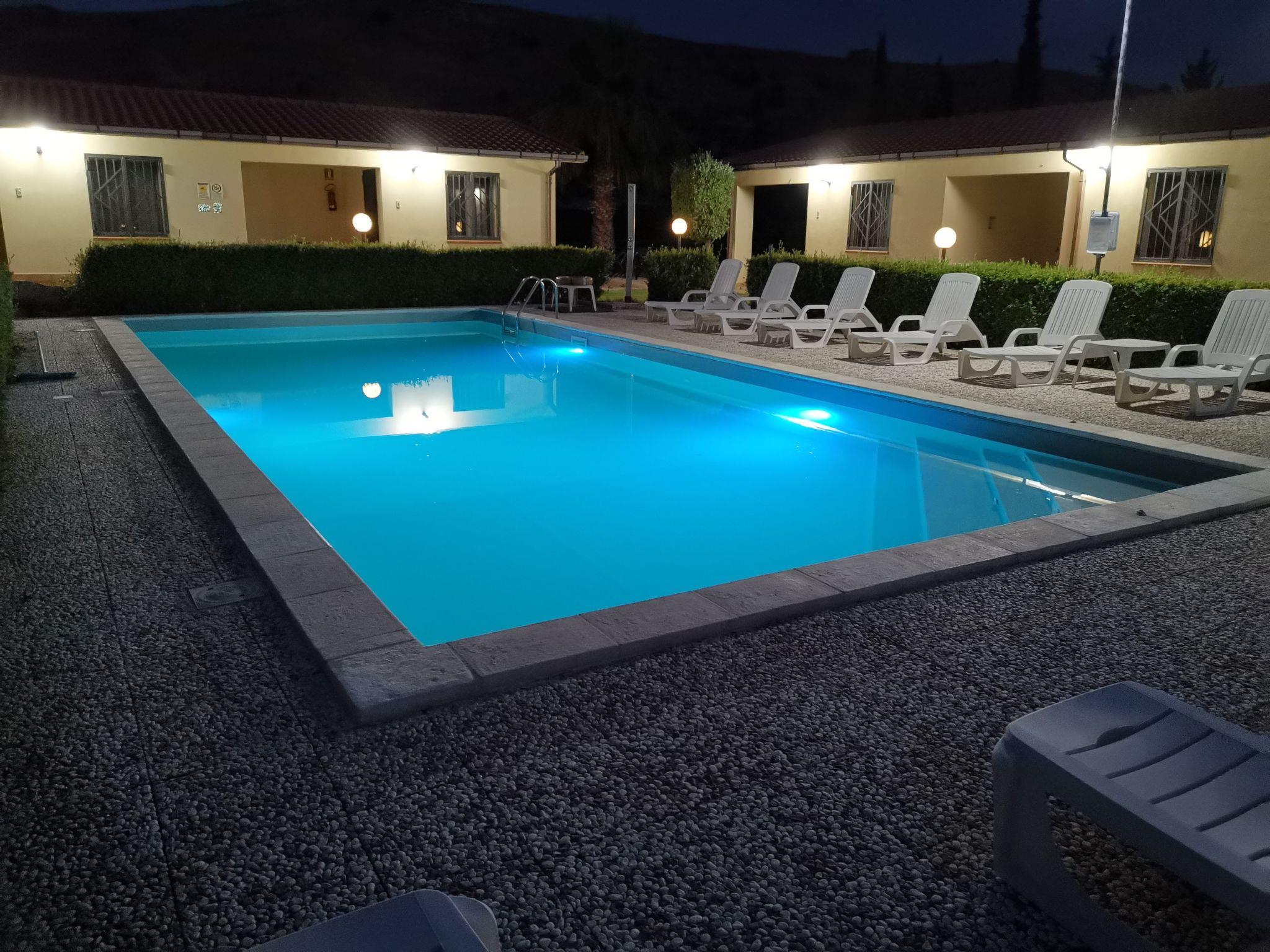 Two-room apartment with double bed, twin room, bathroom with shower, kitchen and furnished veranda. Air-conditioned and with use of swimming pool. Located next to the swimming pool and surrounded by lawn and greenery. Free parking inside the building and free internet access in shared areas.