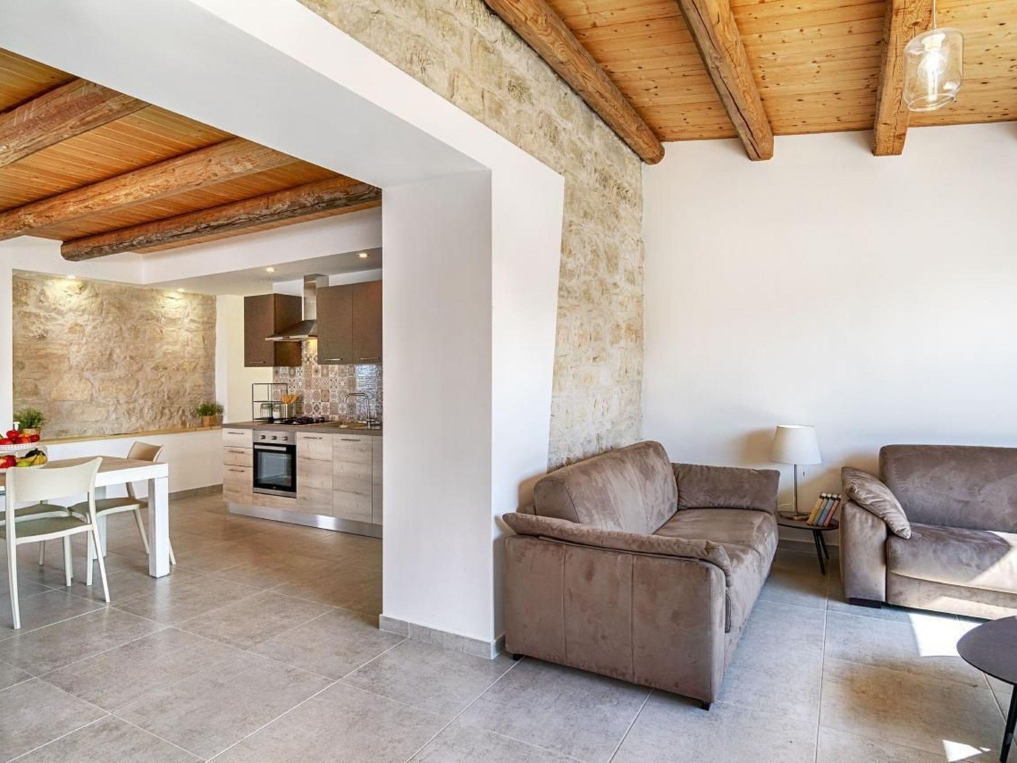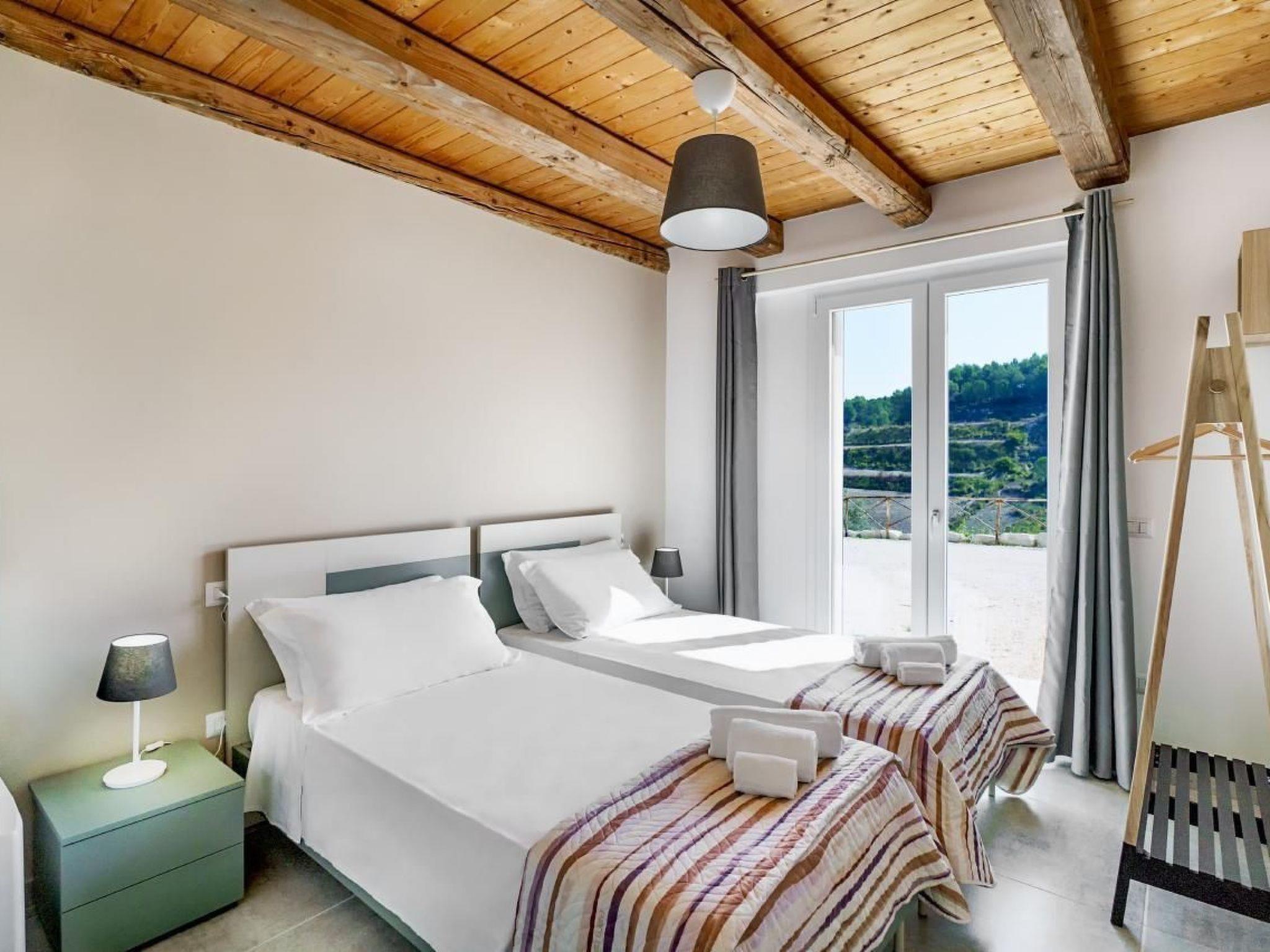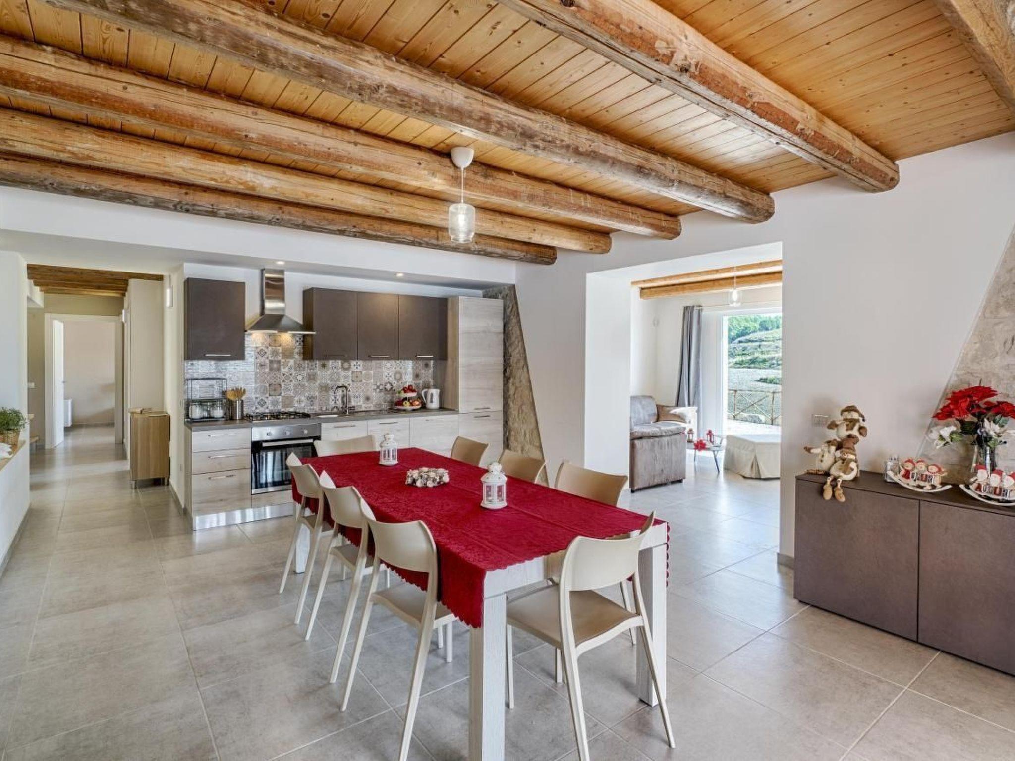 Delightful villa immersed in the green countryside of Giarratana, in Contrada Serramargi, in an oasis of Mediterranean vegetation. The house is on two levels. On the ground floor, the large and bright living room, equipped with two double sofa beds and a TV cabinet, is furnished with style and simplicity, which matches perfectly with the furnishings of the kitchen. Both are arranged in a single room to make the most of the brightness and space that the house offers. In addition, we find a second living room that can also be used as a bedroom thanks to the comfortable double sofa bed inside. On the ground floor we also find the laundry room with washing machine, a bedroom with two single beds, and a double bedroom. Each room on this floor has an en-suite bathroom. On the second floor is the sleeping area which consists of three bedrooms, one double, one twin and one room with three single beds. All the rooms have a bathroom with shower. The large outdoor spaces allow you to fully enjoy the Villa also outside, thanks to a spacious veranda equipped with garden furniture, barbecue and outdoor kitchen, from here you can have a view of all the greenery surrounding the house and of the beautiful swimming pool for the exclusive use of the tenants. The whole house is furnished to be comfortable in both summer and winter holidays, it is equipped with hot/cold air conditioners, in the living room and in each bedroom.Short descriptionOther : Non-smoking houseShort description 1Total kitchens : 1Garden and outdoor spacesGarden equipment : GrillAdjacent leisure facilities : Swimming pool, Private outdoor pool, Hot tub