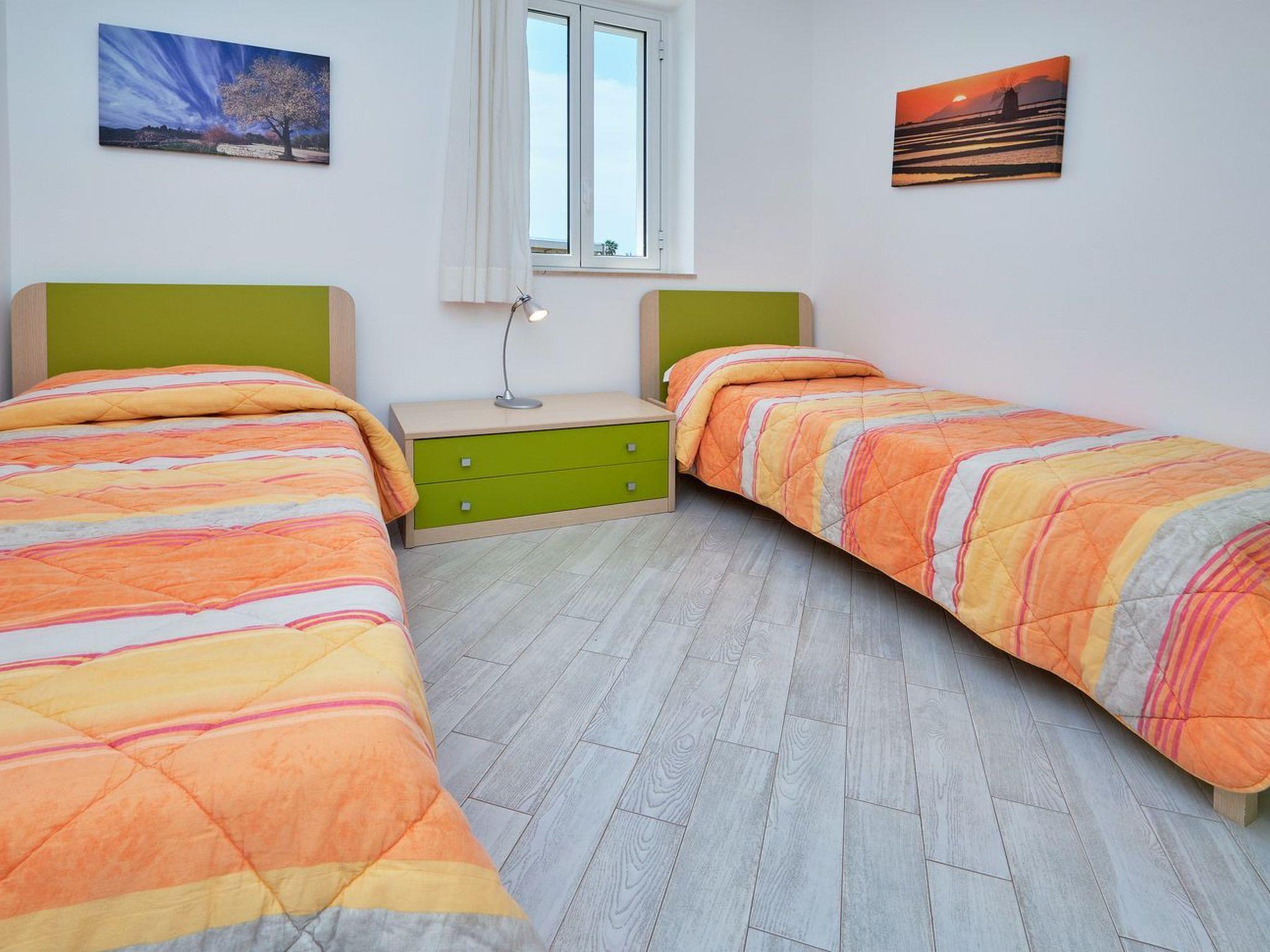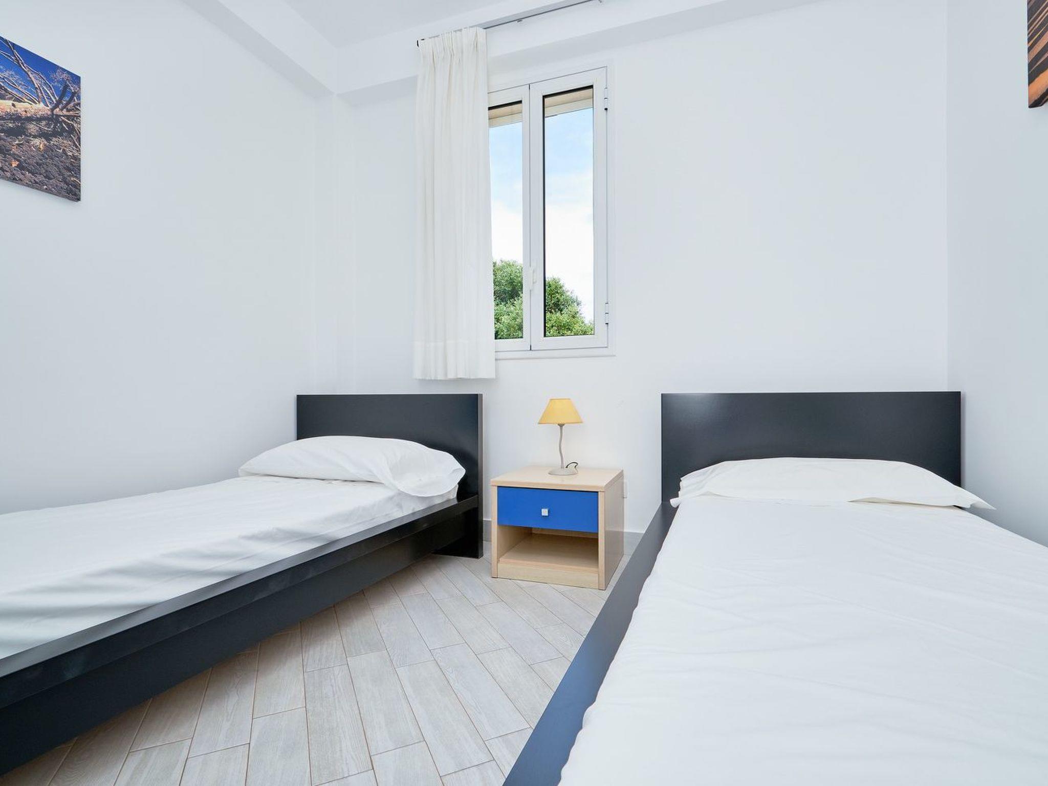Description First floor with sheltered terrace, furnished to have alfresco lunch and dinner. A wide living room with sofa bed and a kitchen equipped with oven, fridge and freezer. Two rooms: one double bedroom and one twin bedroom. Two bathrooms with shower. Centralized hot/cold air conditioning, washing machine and satellite TV. Internet Wi-Fi. Reserved parking space inside the residence.