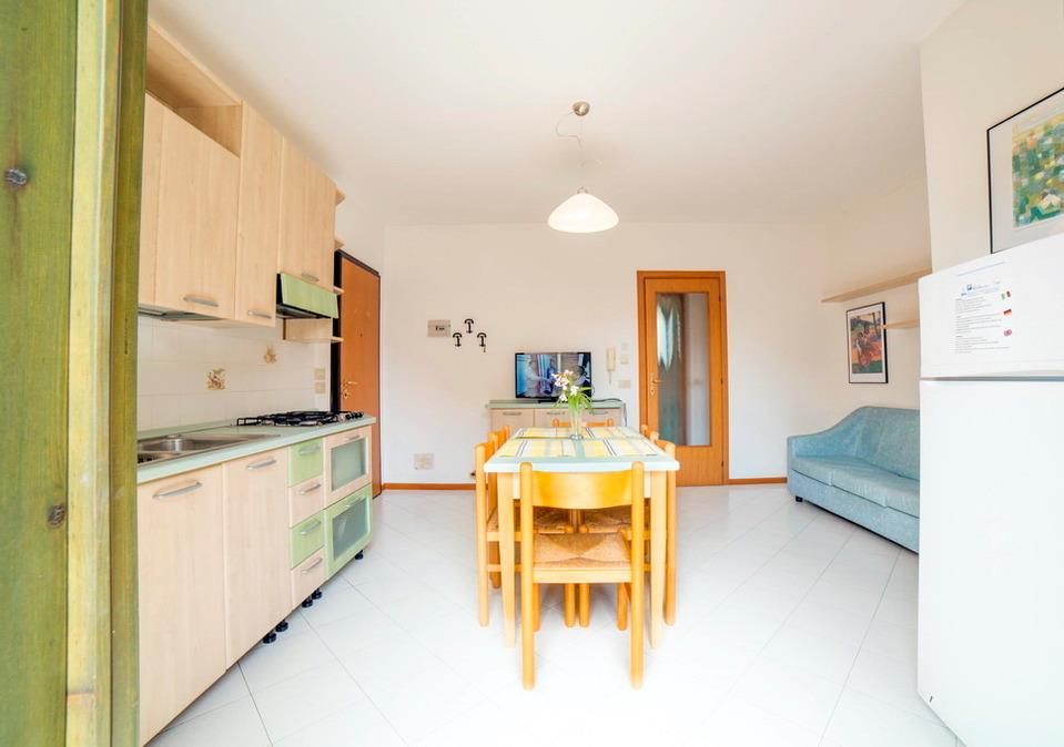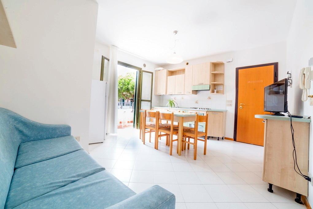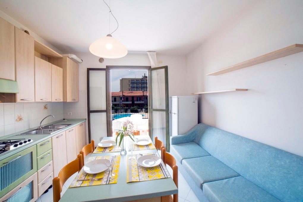 Die Appartements in Porto Sole sind wie folgt aufgeteilt: Es gibt 3-Zimmer-Appartements für maximal 4 bis 5 Personen. Diese verfügen über ein Schlafzimmer mit einem Doppelbett und einem Zustellbett, ein weiteres Schlafzimmer mit entweder zwei Einzelbetten oder einem Stockbett, einen Wohnraum mit Küchenzeile (in den meisten Fällen mit Spülmaschine), ein Badezimmer mit Dusche und WC sowie einen Balkon mit Gartenmöbeln.