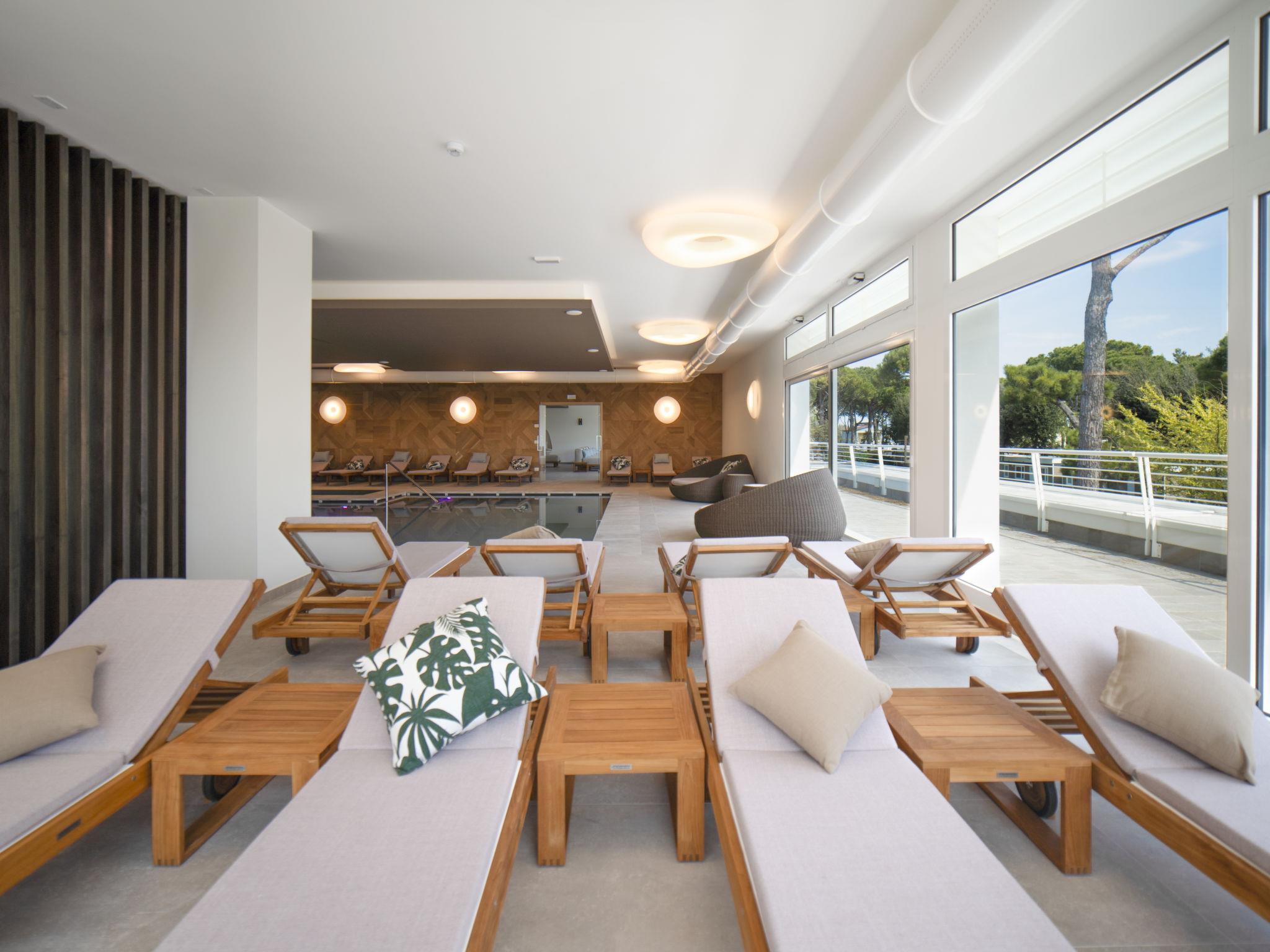 Modern residence "Green Park Apartments", 2 storeys, built in 2024. 12 apartments in the residence. In the district of Ca' Pasquali 4.3 km from the centre of Cavallino-Treporti, 12 km from the centre of Lido di Jesolo, 7 km from the centre of Punta Sabbioni (boat to Venice), 100 m from the sea, 100 m from the beach. Breakfast full board half board possible on request (extra). Communal covered parking at the house. Bus stop 900 m. The photo is just an example. In the nearby Camping Village Cavallino (same owner) our guests may use their pools (23th May-15th Sept., bathing caps are mandatory) and take part in the animation programme for adults and children from 5 years (1st June-30th Aug.) for free, whereas the Spa is against payment. All the guests have to wear a wristband for identification.