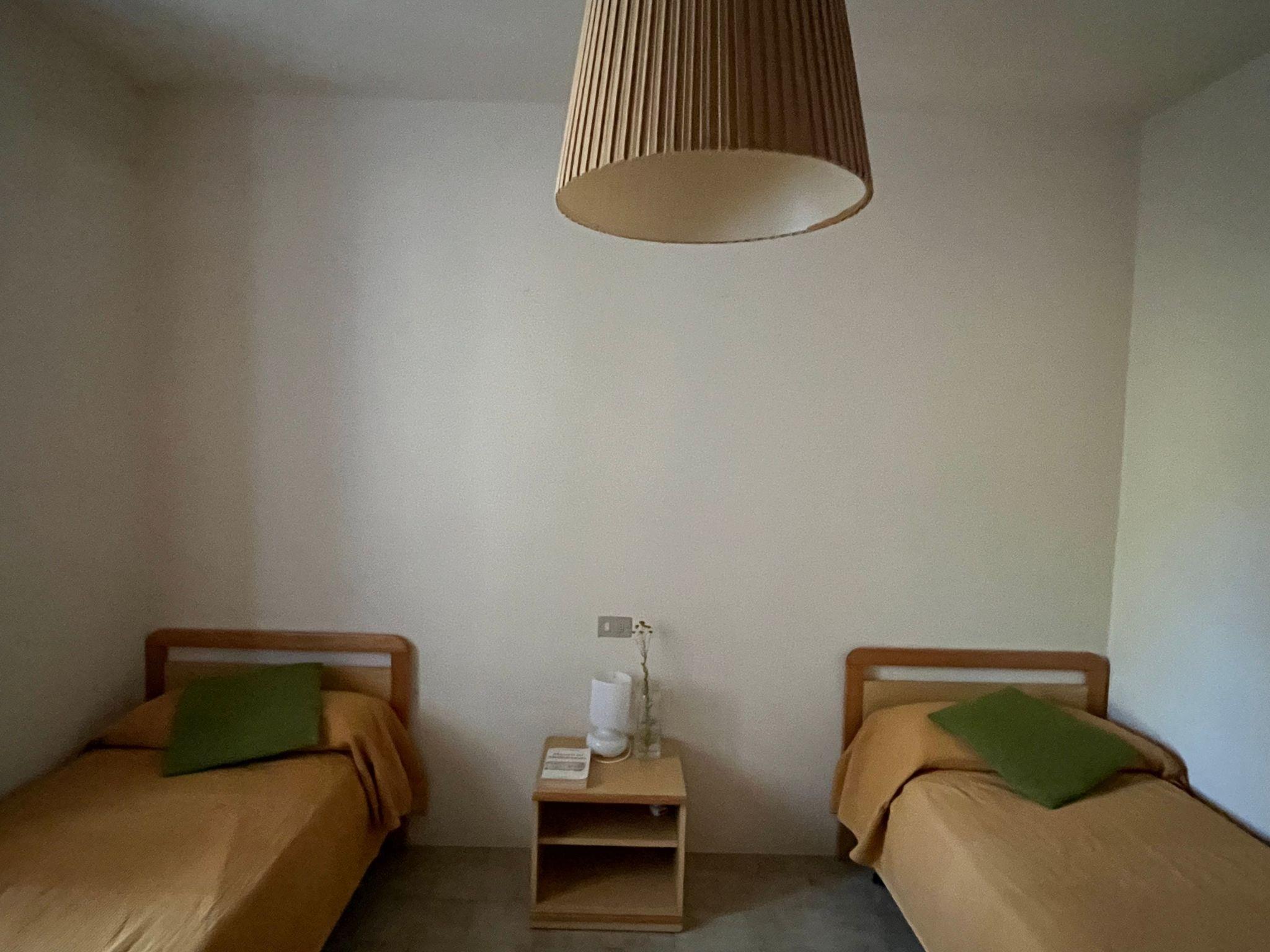The interior of the flat is functional and complete with everything you need for a pleasant stay. The eat-in kitchen offers a practical sofa bed that can be converted into two single beds thanks to the pull-out system, thus facilitating the management of living and sleeping spaces. The bedrooms are well laid out, with one double to ensure a peaceful rest and one with two single beds, ideal for children or single travellers. In addition, the room includes a useful storage room for storing your personal belongings, increasing the feeling of order and space.