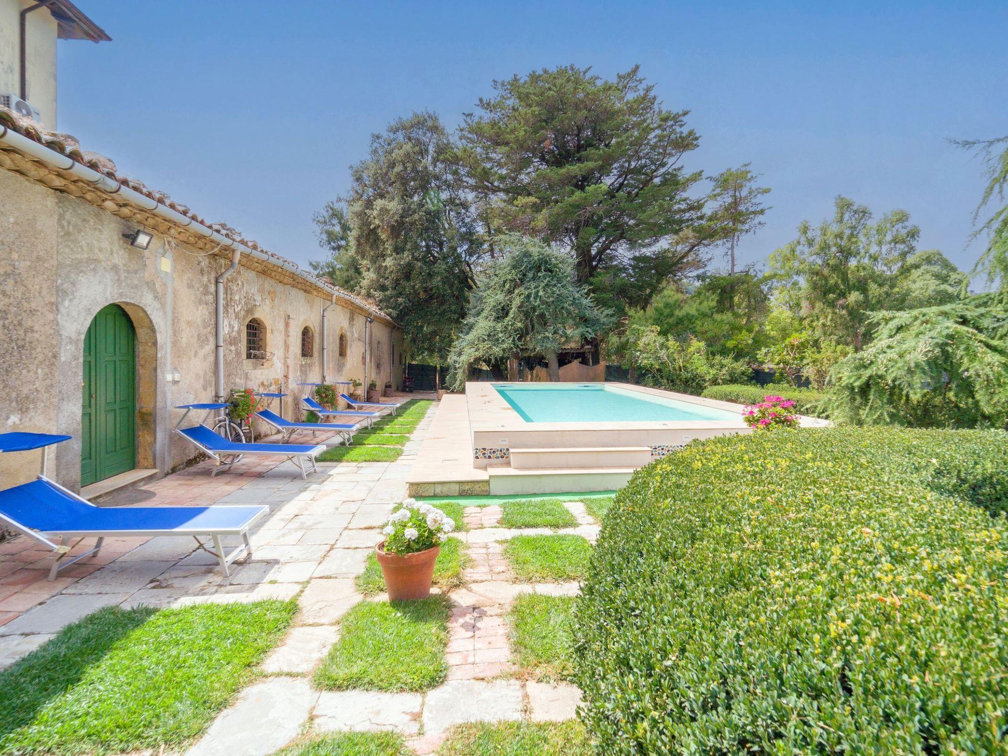 The estate is surrounded by nature, with ancient trees, fountains, romantic paths, a true oasis of peace and serenity with a spectacular view of the majestic volcano Etna.