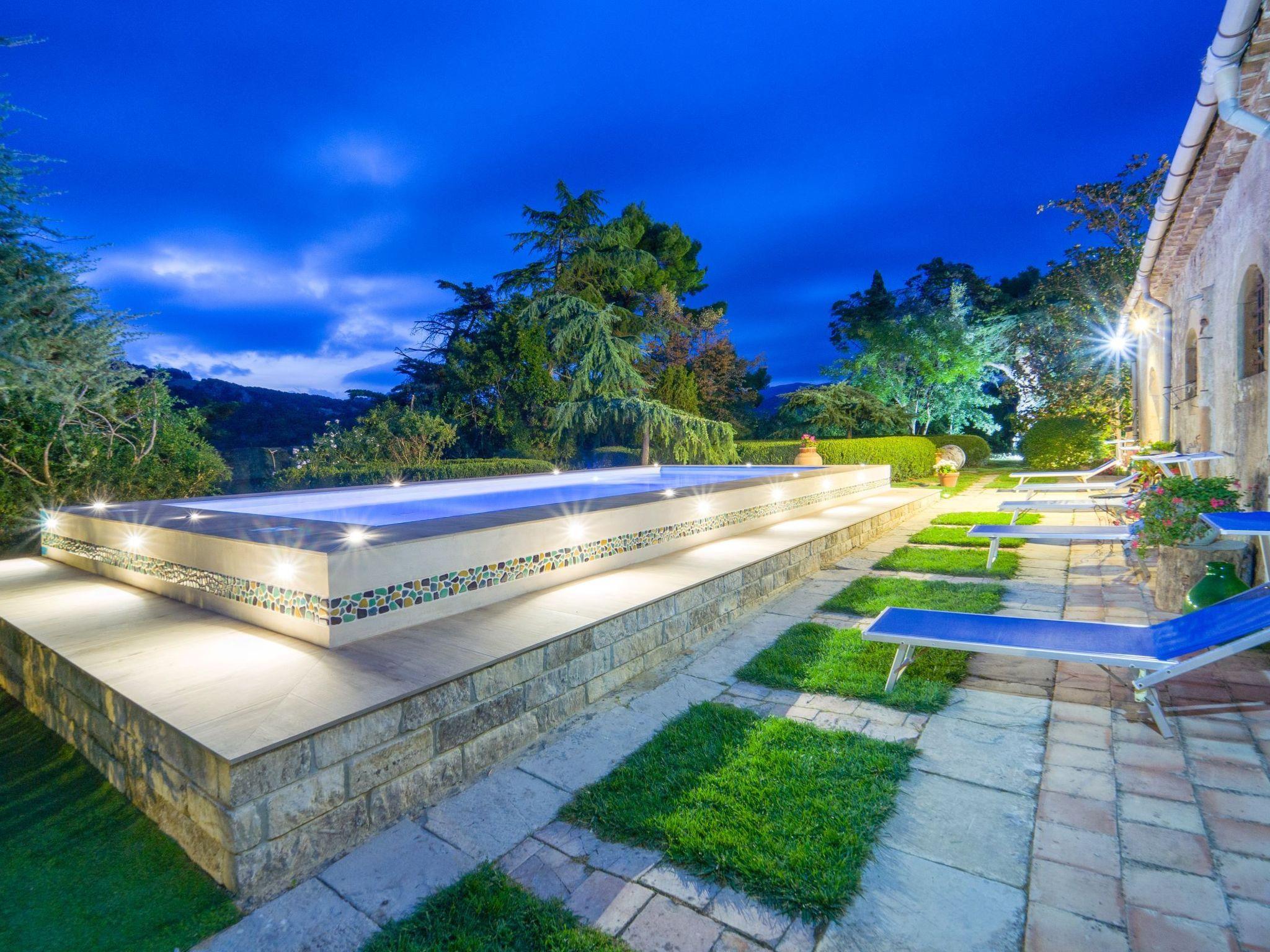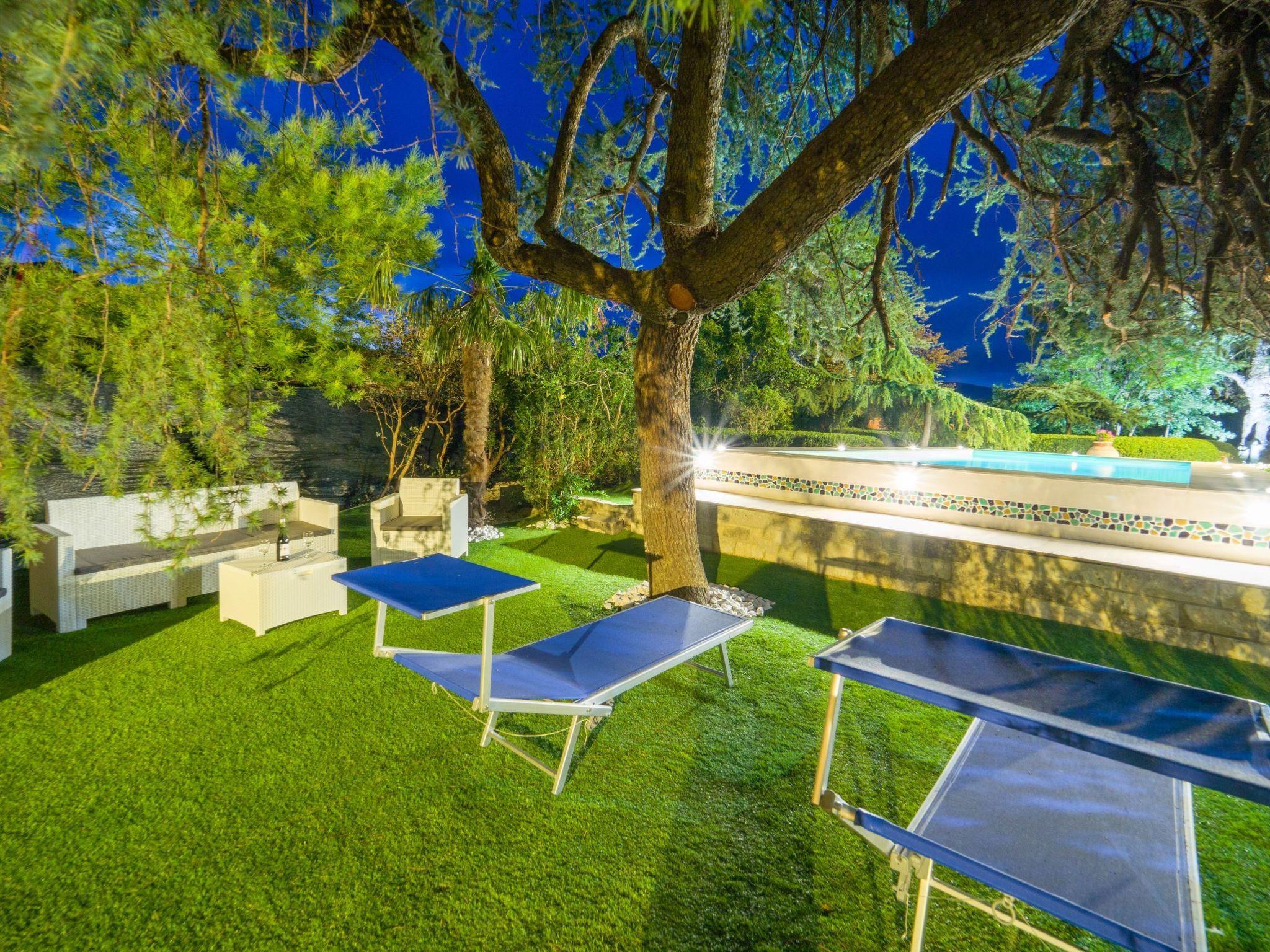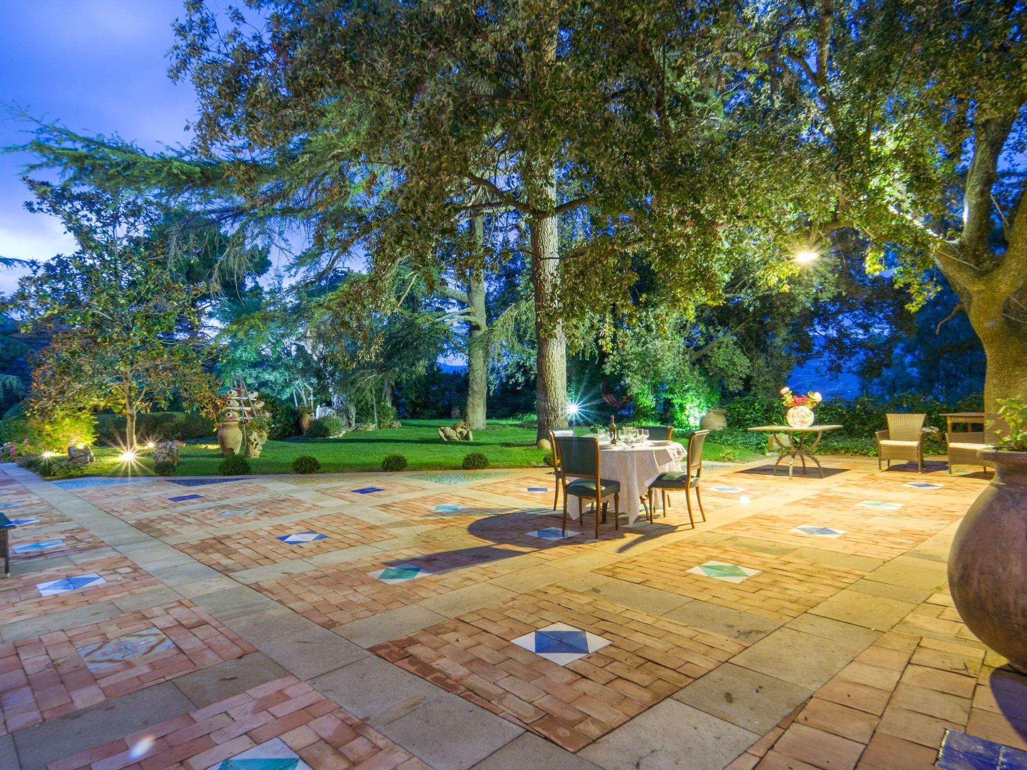 In the park, among flowers and plants and various relaxation areas, there is an elegant swimming pool and a Jacuzzi.
