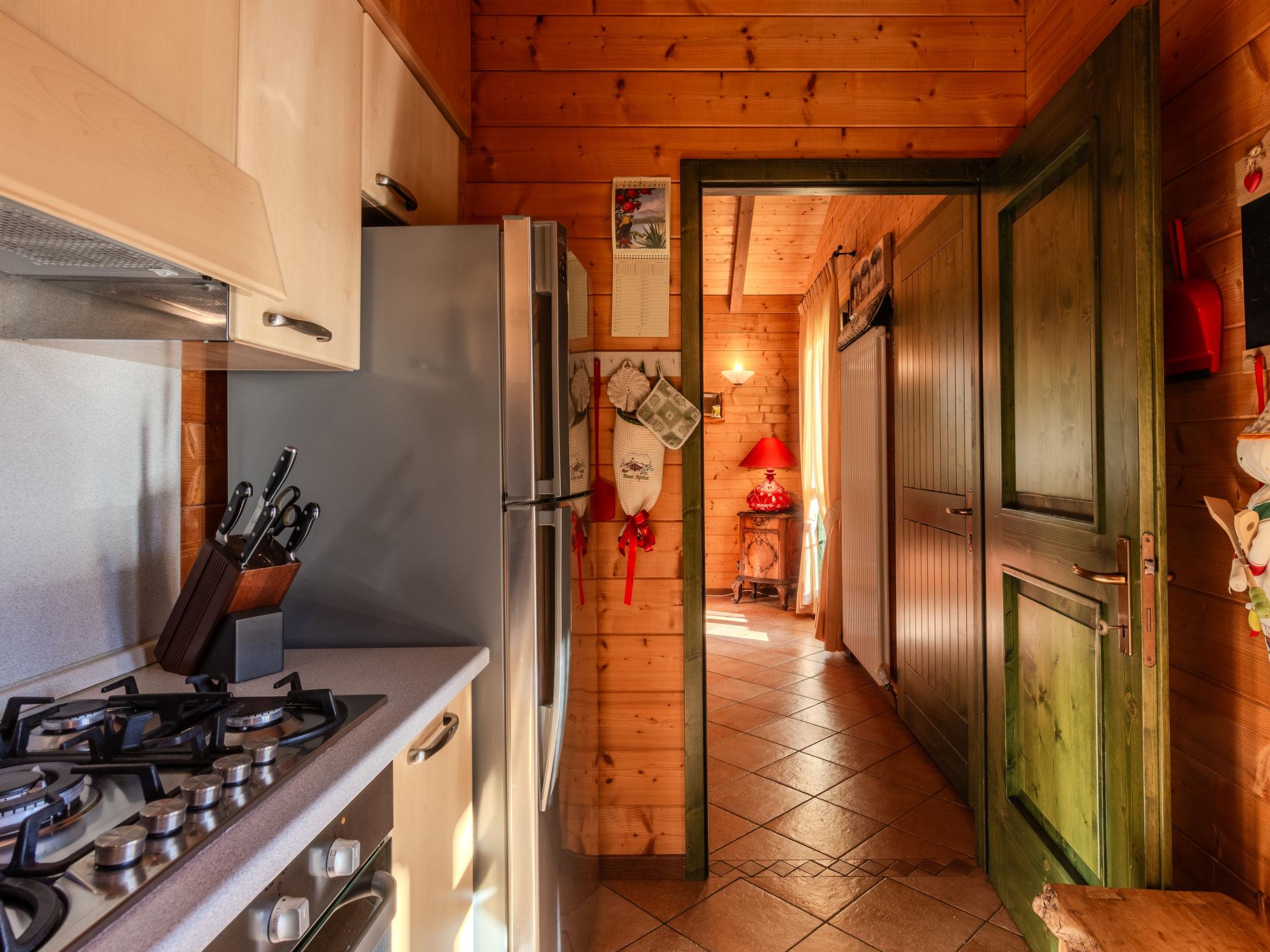 3-room chalet 65 m2 on 2 levels. Cosy and wooden furniture furnishings: 1 double bedroom with shower/bidet/WC. Exit to the garden, to the swimming pool. Upper floor: (exterior staircase) living/sleeping room with 1 double sofabed and Scandinavian wood stove (only for decoration), dining table and TV (flat screen). Exit to the garden, to the balcony. 1 double bedroom. Kitchen (oven, dishwasher, Gas stove, 4 gas rings, toaster, kettle, microwave, freezer, electric coffee machine). Exit to the balcony. Shower/bidet/WC. Gas heating, air-conditioning. Heating available only from 15.10. to 30.04. Natural stone floors. Large balcony, 2 large terraces. Terrace furniture, balcony furniture, barbecue, deck chairs (4). Marvellous panoramic view of the mountains, the valley and the countryside. Facilities: washing machine, children's high chair, baby cot for up to 2 year olds, hair dryer. Internet (WiFi, free). Please note: non-smoking house. No internal connecting door between the floors. IT013063C28YNVTYXI