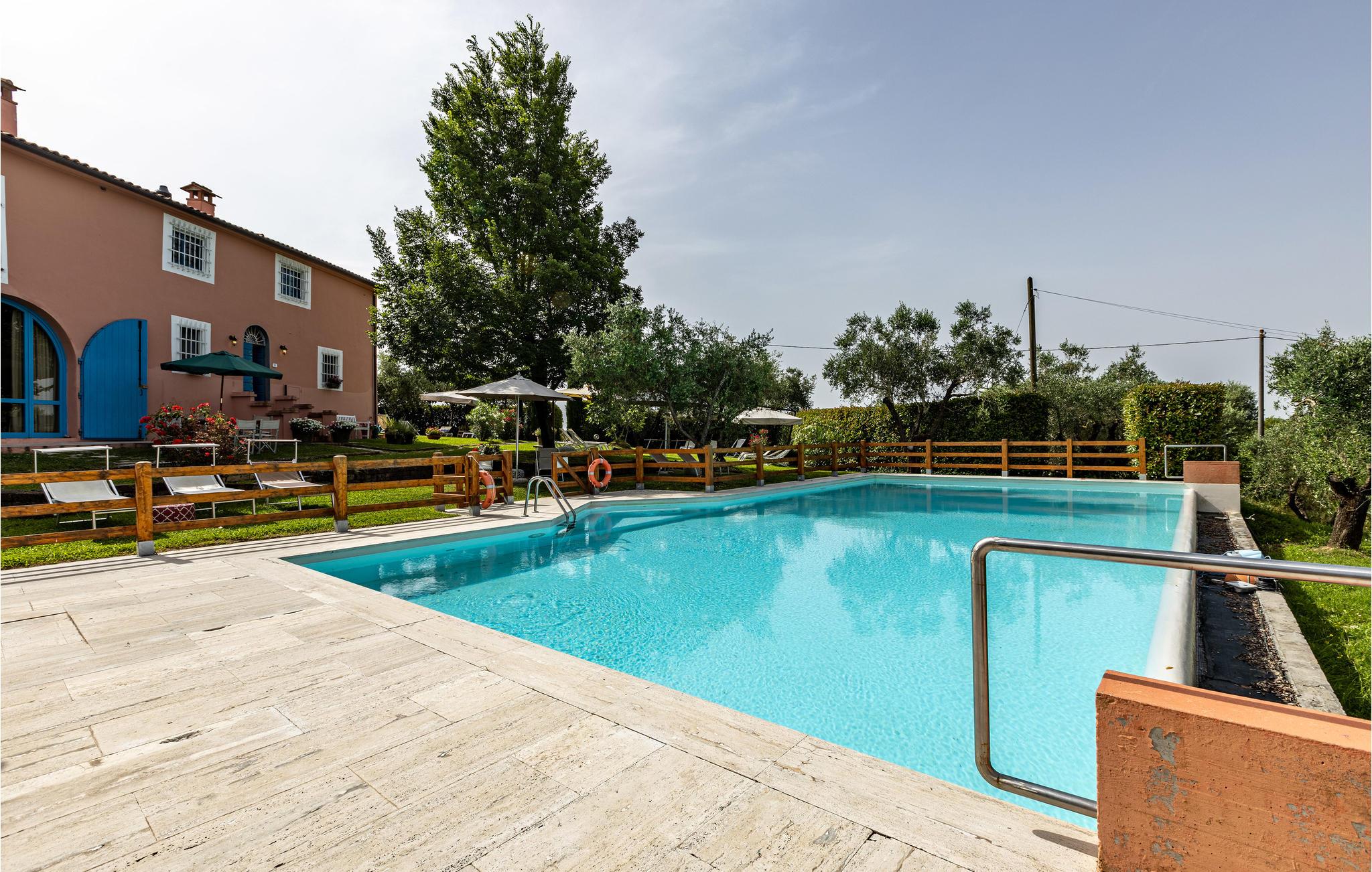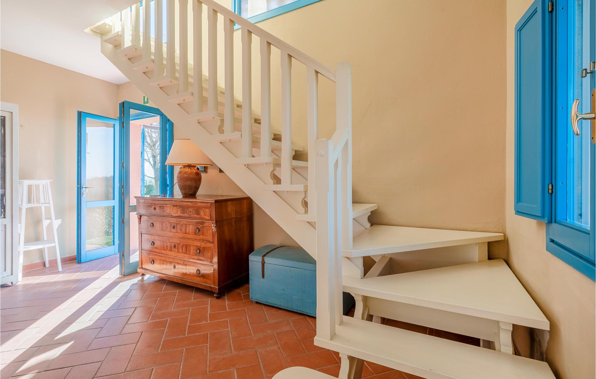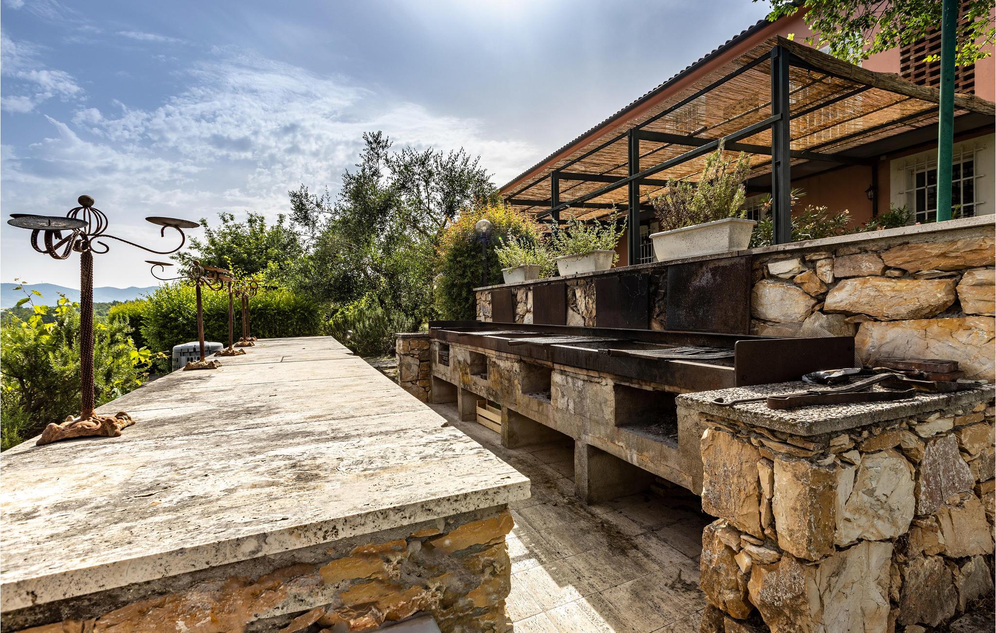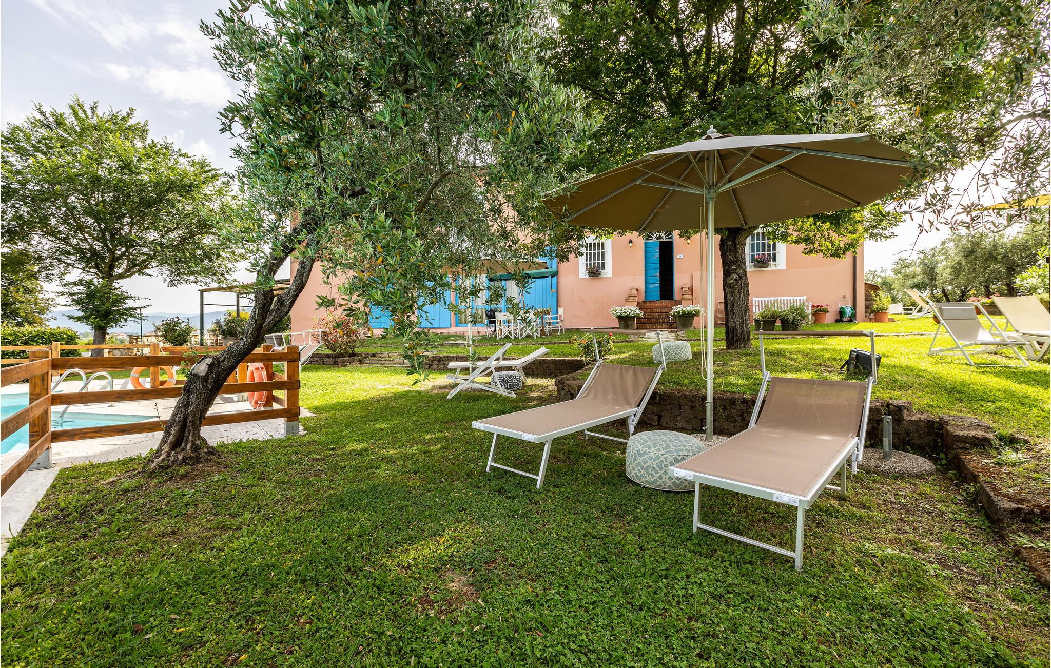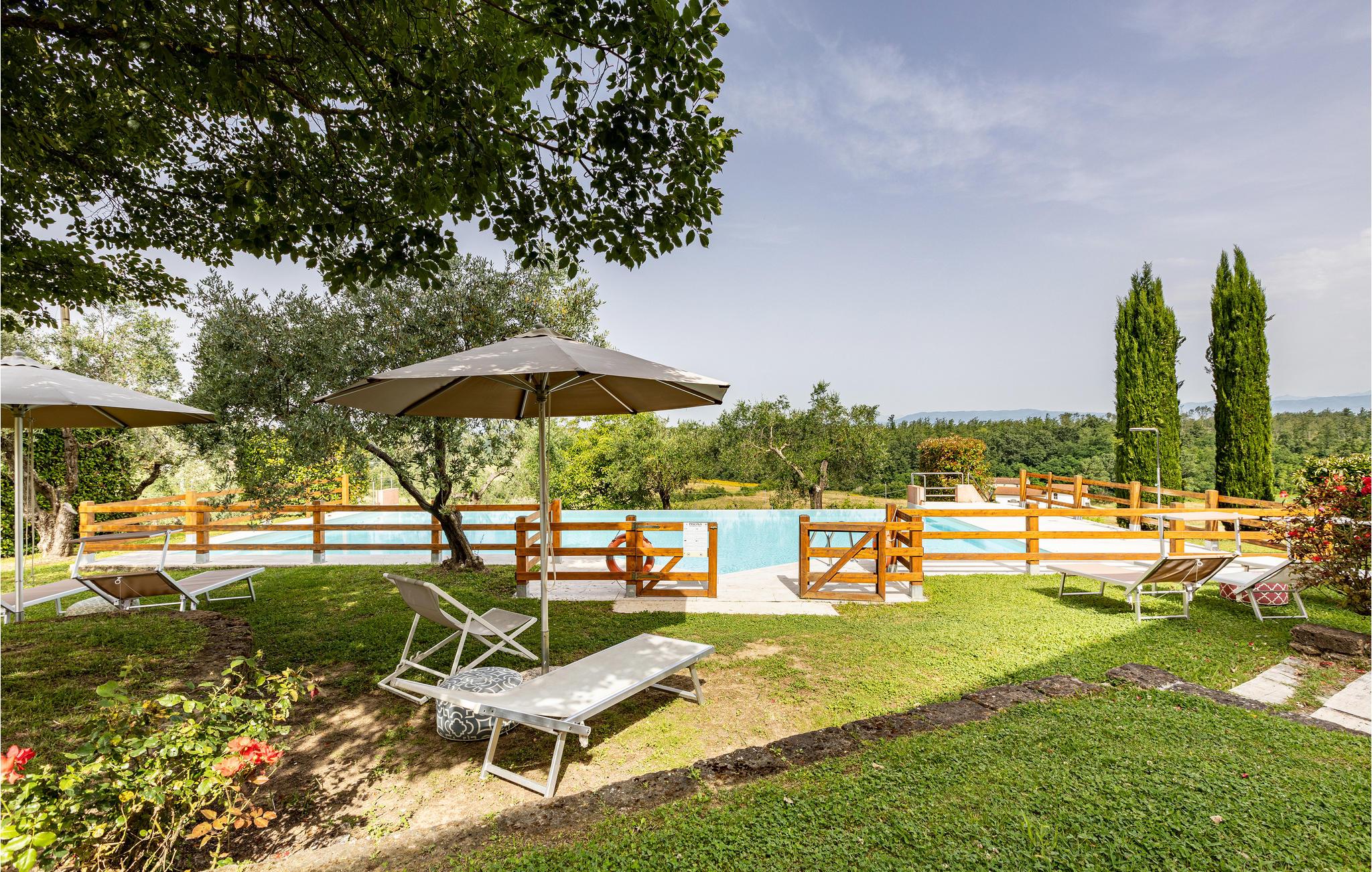 Dette nydelige feriehuset tar imot opptil seks voksne og et ekstra småbarn med sine to soverom, åpen hems, to bad og to kjøkkenkroker. Det er pent innredet og fengsler spesielt med sitt vakre uteområde. I og rundt det felles bassenget kan du nyte det fantastiske toskanske været hele dagen. På den vakre terrassen kan du spise frokost om morgenen eller avslutte dagen med et glass lokal vin mens du nyter det fantastiske panoramaet.