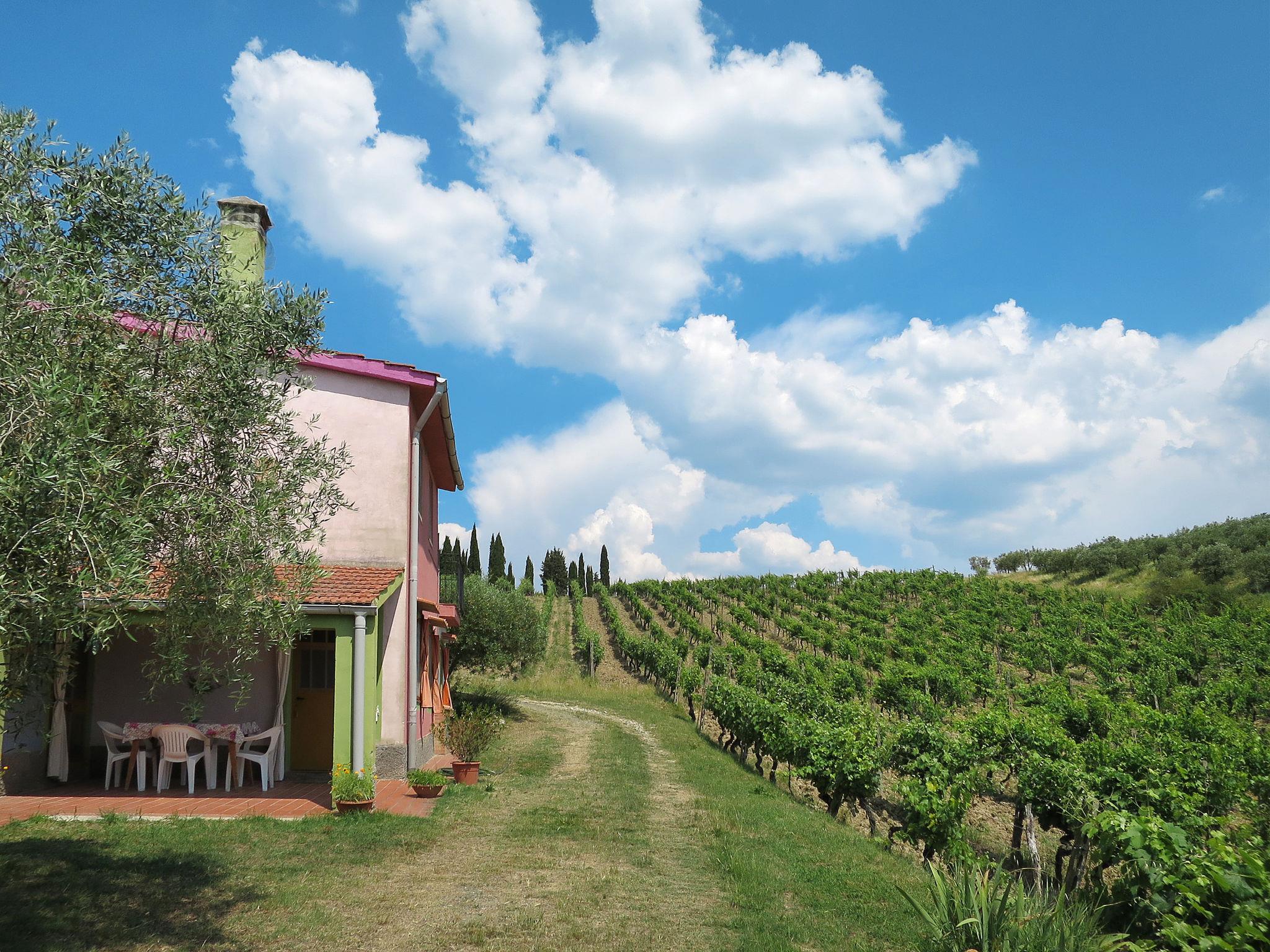 Certaldo: Cosy on a vinyard agricultural estate "Podere Conte Francesco", surrounded by trees, fields and vineyards. 7 apartments in the property. 4 km from the centre of Certaldo, 13 km from the centre of San Gimignano, 57 km from the centre of Firenze, in a secluded, sunny, elevated position on a slope, 80 km from the sea, 80 km from the beach, in the countryside. For shared use: natural state property with plants and trees, natural garden, meadow, orchard, swimming pool (10 x 5 m, depth 150 cm, seasonal availability: 02.May. - 03.Oct.). Outdoor shower, garden furniture, pool maintenance by the owner/gardener. In the complex: WiFi, washing machine (for shared use, extra). 1.5 km long motor access (via unmade road). Parking on the premises. Grocery 3 km, supermarket 7 km, restaurant 7 km, bar 3 km, bus stop 3 km, railway station "Certaldo" 7 km, sandy beach "Cecina Mare" 80 km, indoor swimming pool 7 km. Golf course (18 hole) 27 km, tennis 7 km, riding stable 3 km. Nearby attractions: Siena 45 km, Volterra 40 km, Pisa 83 km. Please note: car recommended. Baby equipment on request (included). The owner lives on the same property. All houses/apartments are individually designed/furnished.