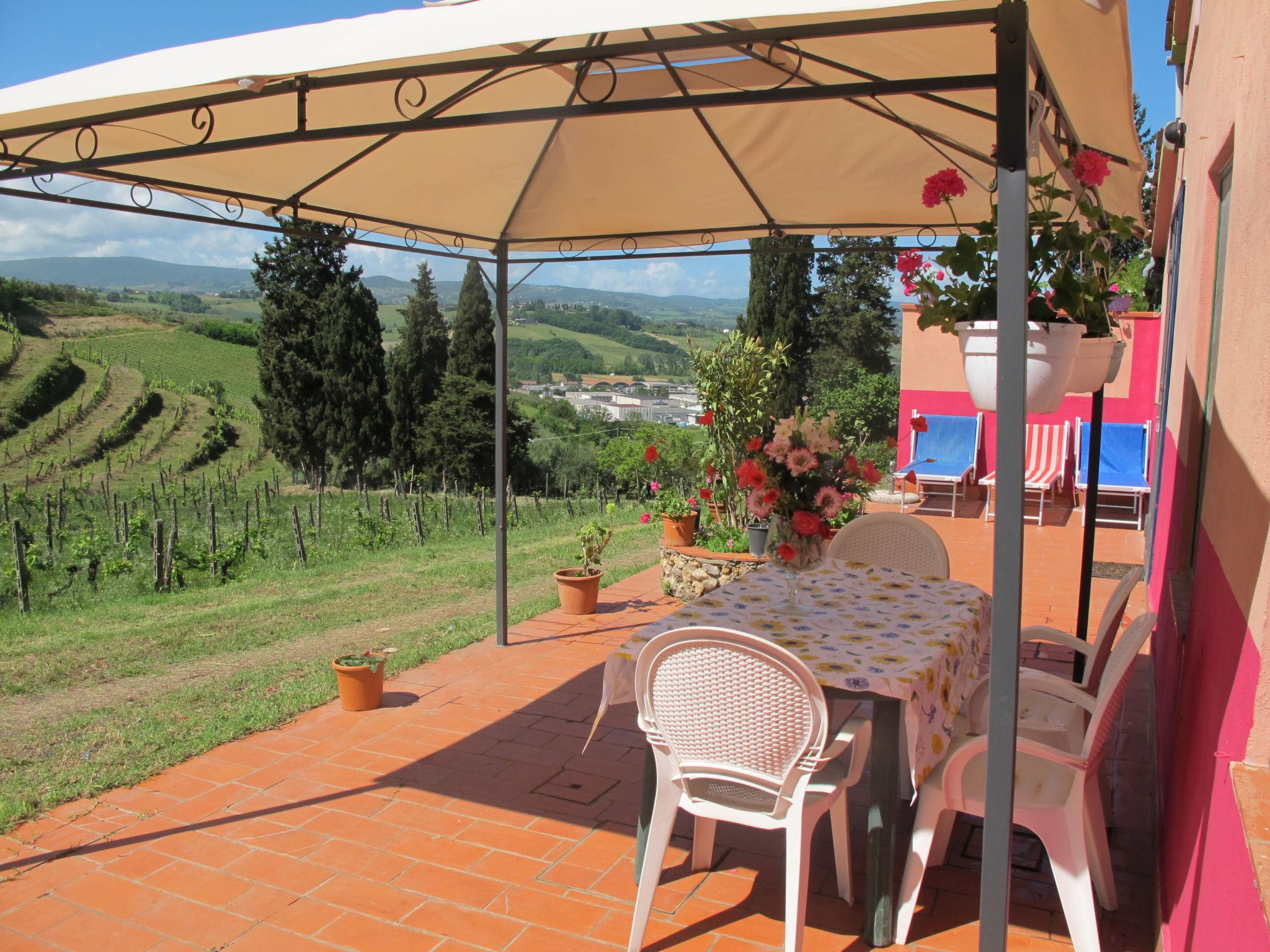 Certaldo: Cosy on a vinyard agricultural estate "Podere Conte Francesco", surrounded by trees, fields and vineyards. 7 apartments in the property. 4 km from the centre of Certaldo, 13 km from the centre of San Gimignano, 57 km from the centre of Firenze, in a secluded, sunny, elevated position on a slope, 80 km from the sea, 80 km from the beach, in the countryside. For shared use: natural state property with plants and trees, natural garden, meadow, orchard, swimming pool (10 x 5 m, depth 150 cm, seasonal availability: 02.May. - 03.Oct.). Outdoor shower, garden furniture, pool maintenance by the owner/gardener. In the complex: WiFi, washing machine (for shared use, extra). 1.5 km long motor access (via unmade road). Parking on the premises. Grocery 3 km, supermarket 7 km, restaurant 7 km, bar 3 km, bus stop 3 km, railway station "Certaldo" 7 km, sandy beach "Cecina Mare" 80 km, indoor swimming pool 7 km. Golf course (18 hole) 27 km, tennis 7 km, riding stable 3 km. Nearby attractions: Siena 45 km, Volterra 40 km, Pisa 83 km. Please note: car recommended. Baby equipment on request (included). The owner lives on the same property. All houses/apartments are individually designed/furnished.