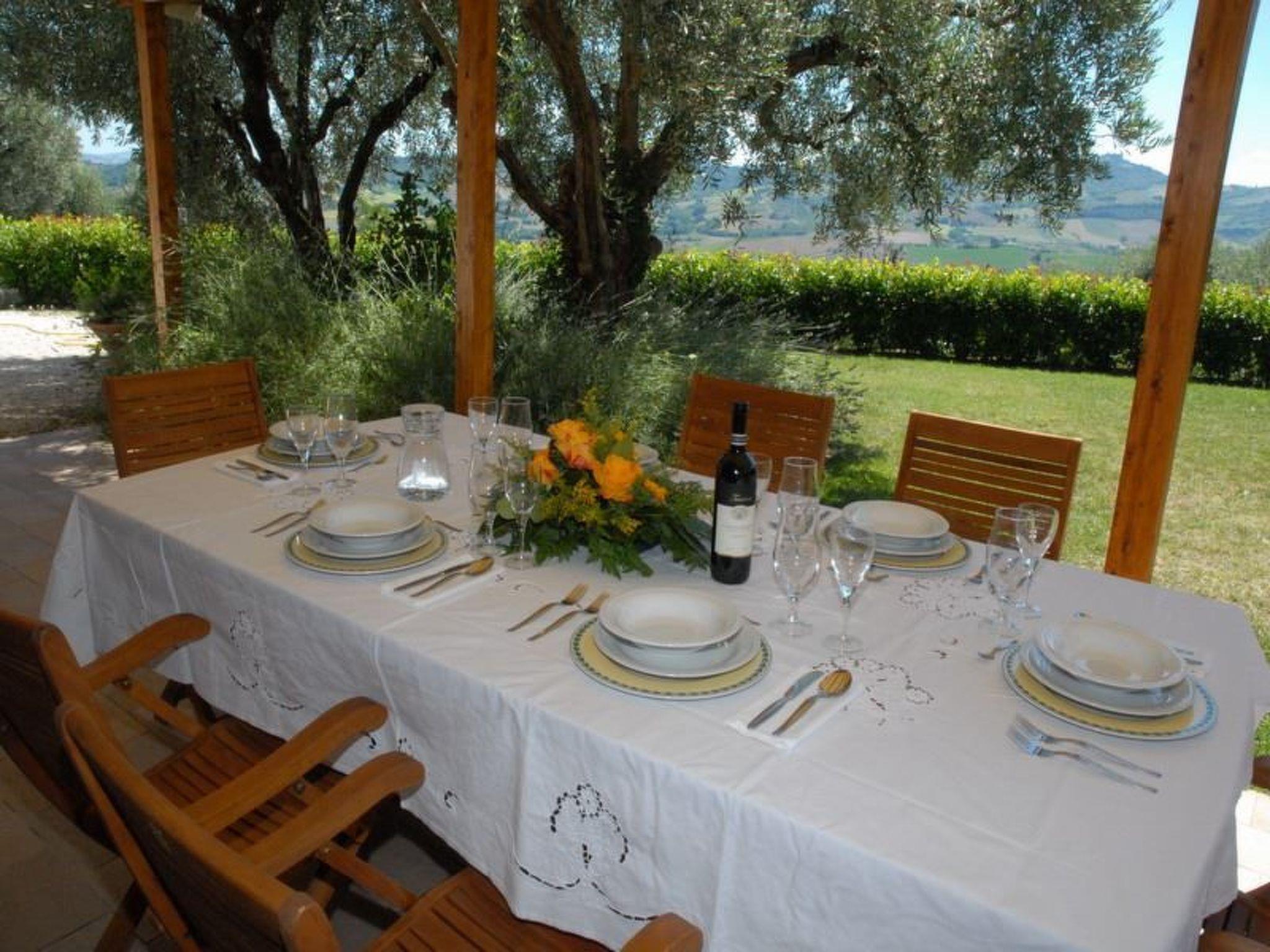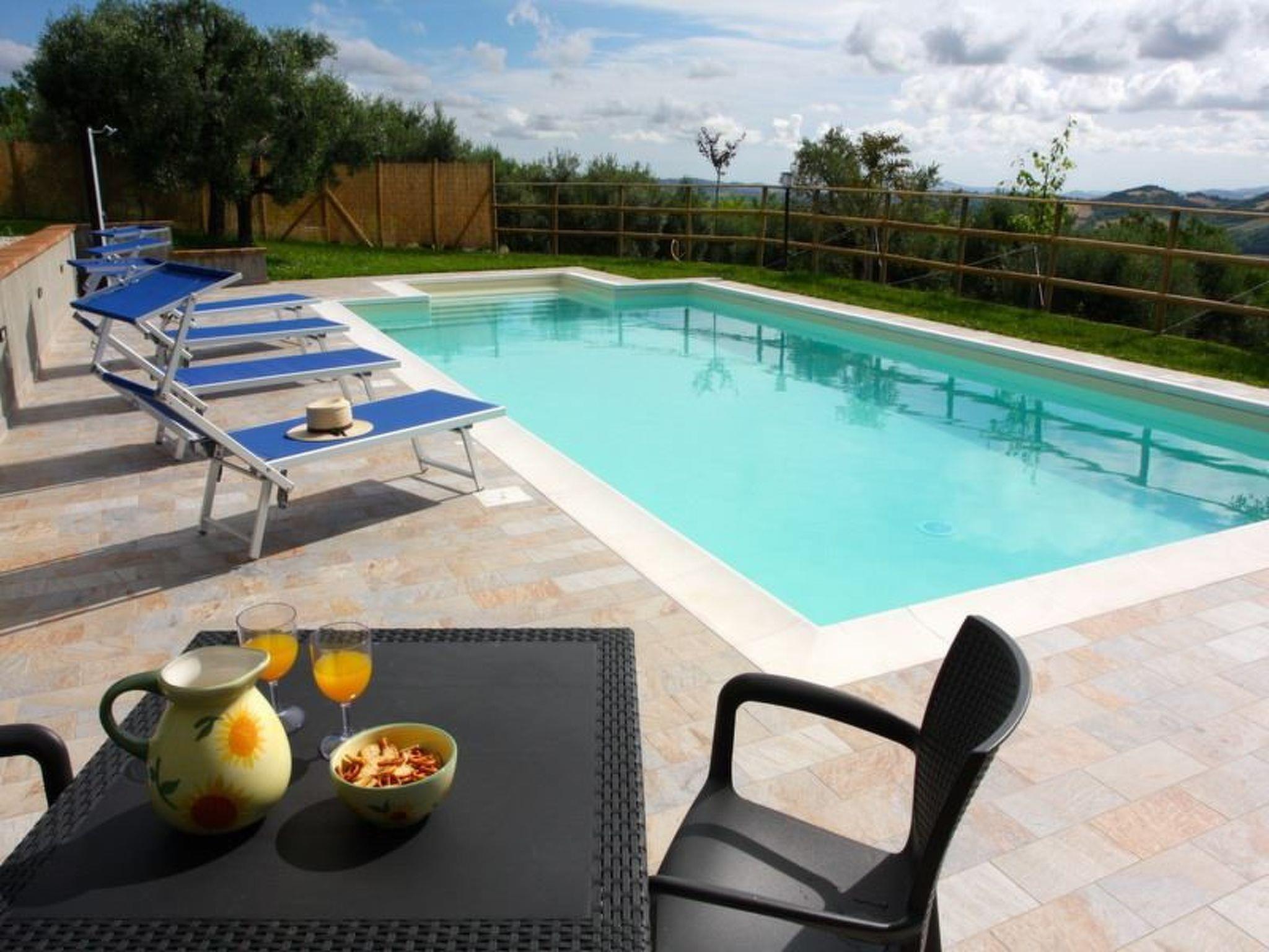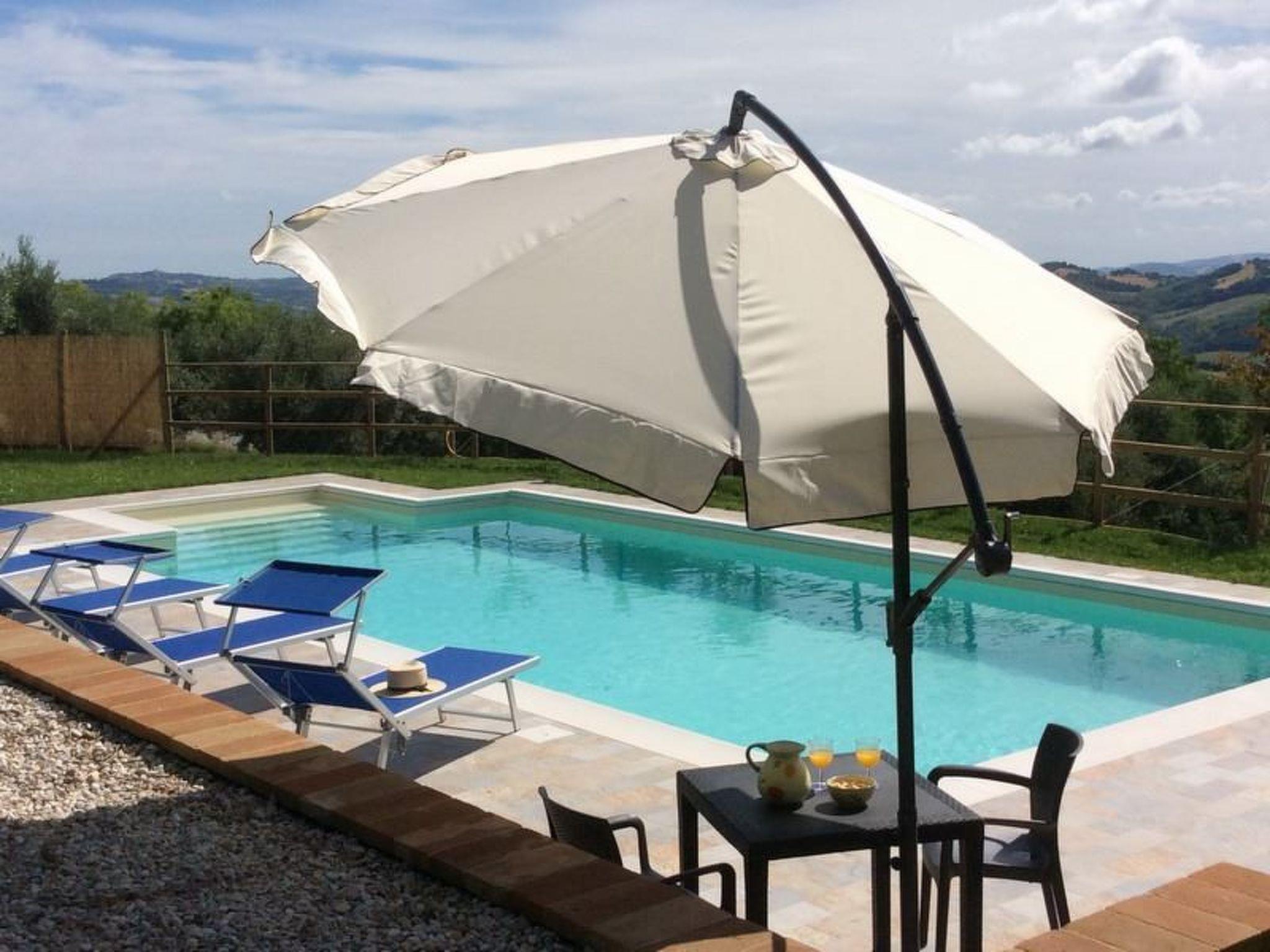 Casa Barbara is a private detached house. It is characterized by the stunning views of Monte San Martino and the rolling hills of Le Marche. The house itself a newly renovated, fully fenced-in, surrounded by olive trees and a lots of outside area from which to admire the panorama. One of these is the terrace below the house, reached by a few steps, that houses the furnished pool area.The rooms are spacious and most inviting. The furniture is quite comfortable and everything has been thought of for guest’holiday enjoyment by the caring and friendly owners, including laundry room with washing machine and ironing facilities. So, Casa Barbara, delightful blend of rustic and modern comforts, is a very affordable home base for small groups or families within easy reach of Macerata, Tolentino, Camerino, the roman theaters of Falerone and Urbisaglia, the beach of Civitanova Marche, the Sibillini Mountains National Park and much more.Electric gatePrivate pool (10 x 5) with showerOutside eating area with barbecueLiving room with wifi and TV SATKitchen with fireplace, 4 stoves, oven, microwave, fridge and kettleLaundry room with ironing facilities1 Double bedded room1 Twin bedded room1Shower roomFirst floorLiving with TV SATKitchen/Dining with fireplace, dishwasher, fridge, 4 stoves, oven, microwave, toaster and coffee machine2 Double bedded rooms1 Shower roomSecond floor1 Double bedded room2 Twin bedded rooms1 Shower room Penna San Giovanni (Shops and Restaurants) 1 KmSarnano 16 KmSibillini National Park 18 KmSan Ginesio 19 KmFalerone roman theatres 10 KmMacerata 38 KmPorto Sant’Elpidio (beach) 40 KmCamerino 55 Km