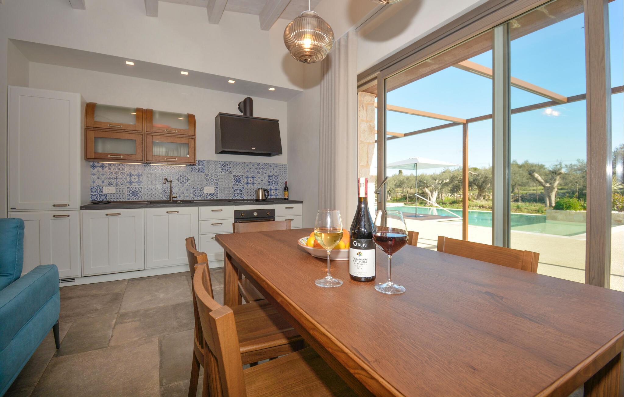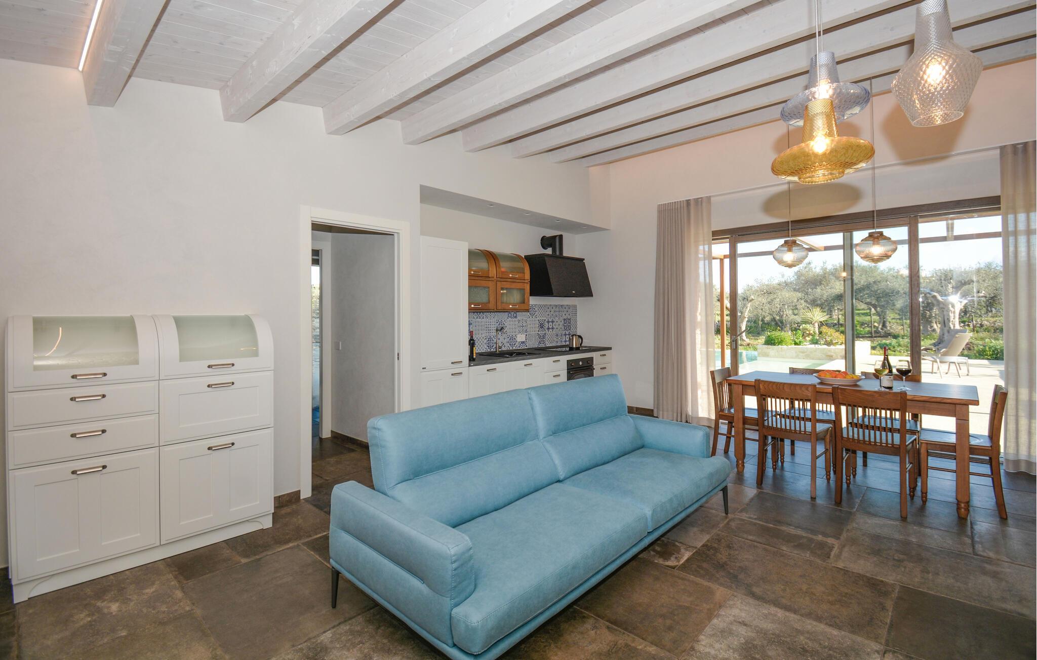 Dette vakre feriehuset er omgitt av middelhavsvegetasjon, og kombinerer rustikk sjarm med moderne komfort. La deg inspirere til å lage deilige retter på det moderne kjøkkenet med åpen planløsning, og nyt måltidene ved det stilfulle spisebordet med utsikt over det grønne. Slapp av i den koselige sofaen og ta deg tid til en god samtale og et glass siciliansk vin.
