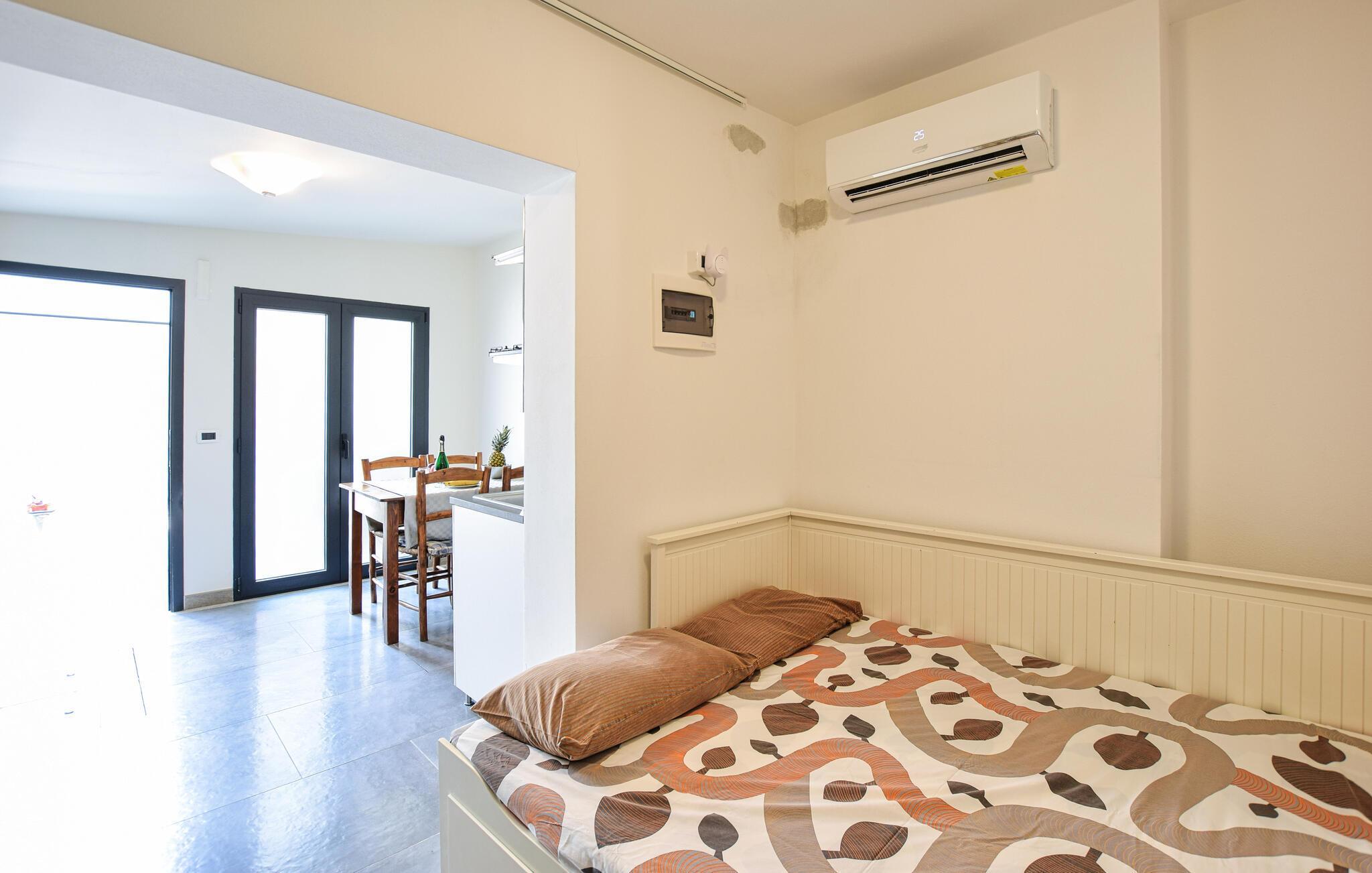 Denne enkle og velholdte ettromsleiligheten tilbyr et koselig lite gjemmested mens dere utforsker den sjarmerende regionen rundt Chioggia som et par. Her kan dere starte dagen med en solid frokost, planlegge utflukter i fred og ro, og om kvelden kan dere se tilbake på opplevelsene over et glass vin eller slappe av med et brettspill.