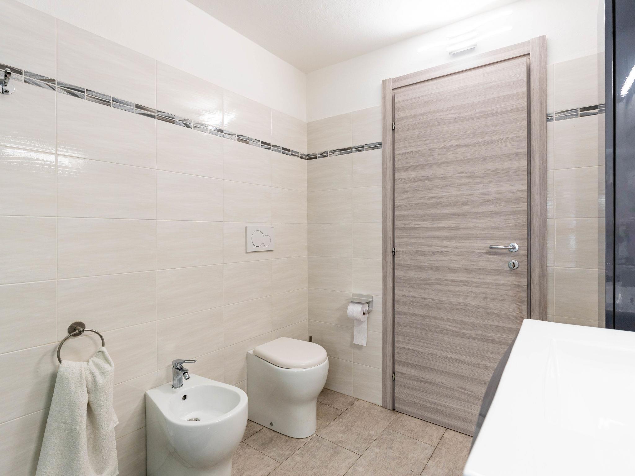 "Pug House", 3-room terraced house 85 m2. Comfortable and cosy furnishings: living/dining room with 1 sofabed (160 cm, length 200 cm), TV. Kitchen (oven, dishwasher, 4 induction hot plates, toaster, kettle). Shower/bidet/WC. Air-conditioning, forced-air heating. Heating available only from 01.11. to 15.04. Upper floor: 1 double bedroom (160 cm, length 200 cm). Exit to the terrace. Walk-through room with 1 bed (80 cm, length 190 cm). Terrace 30 m2. Terrace furniture. View of the countryside and the resort. Facilities: washing machine, mosquito net, baby cot for up to 2 year olds, hair dryer. Internet (WiFi, free). Please note: non-smoking house. Maximum 1 pet/ dog allowed. Private entrance, smoke alarm, fire extinguisher. IT008019B4H8MC668I