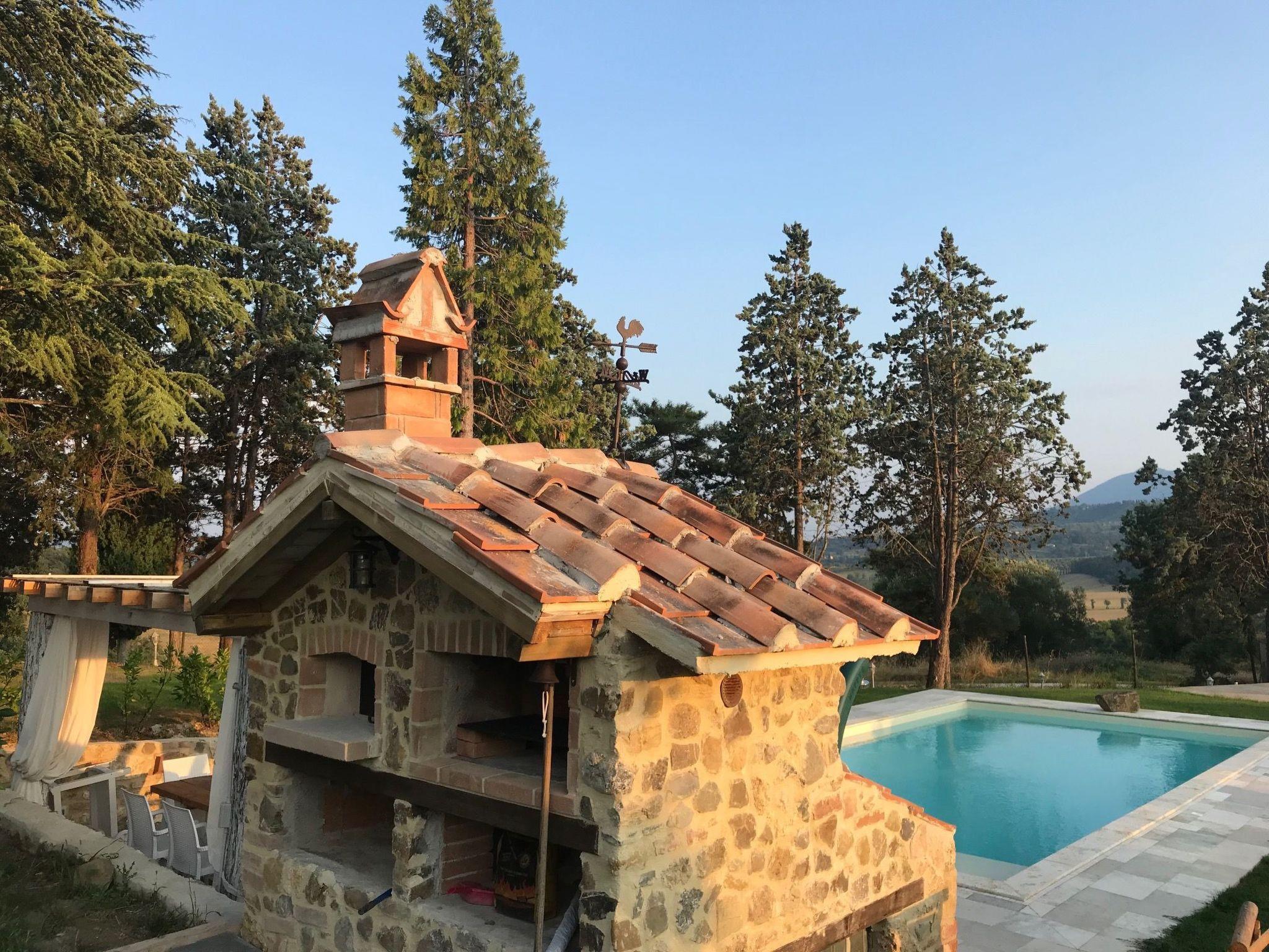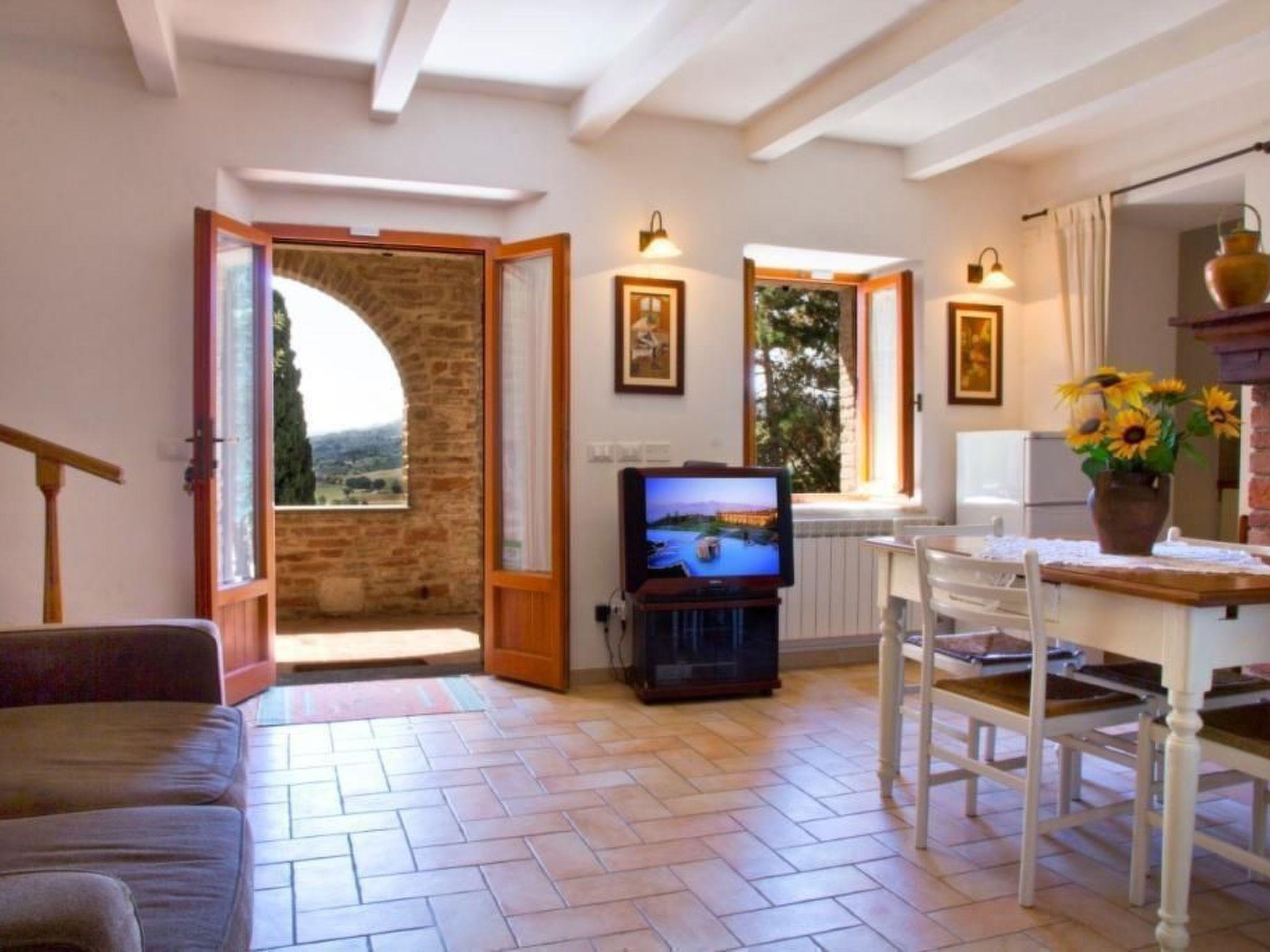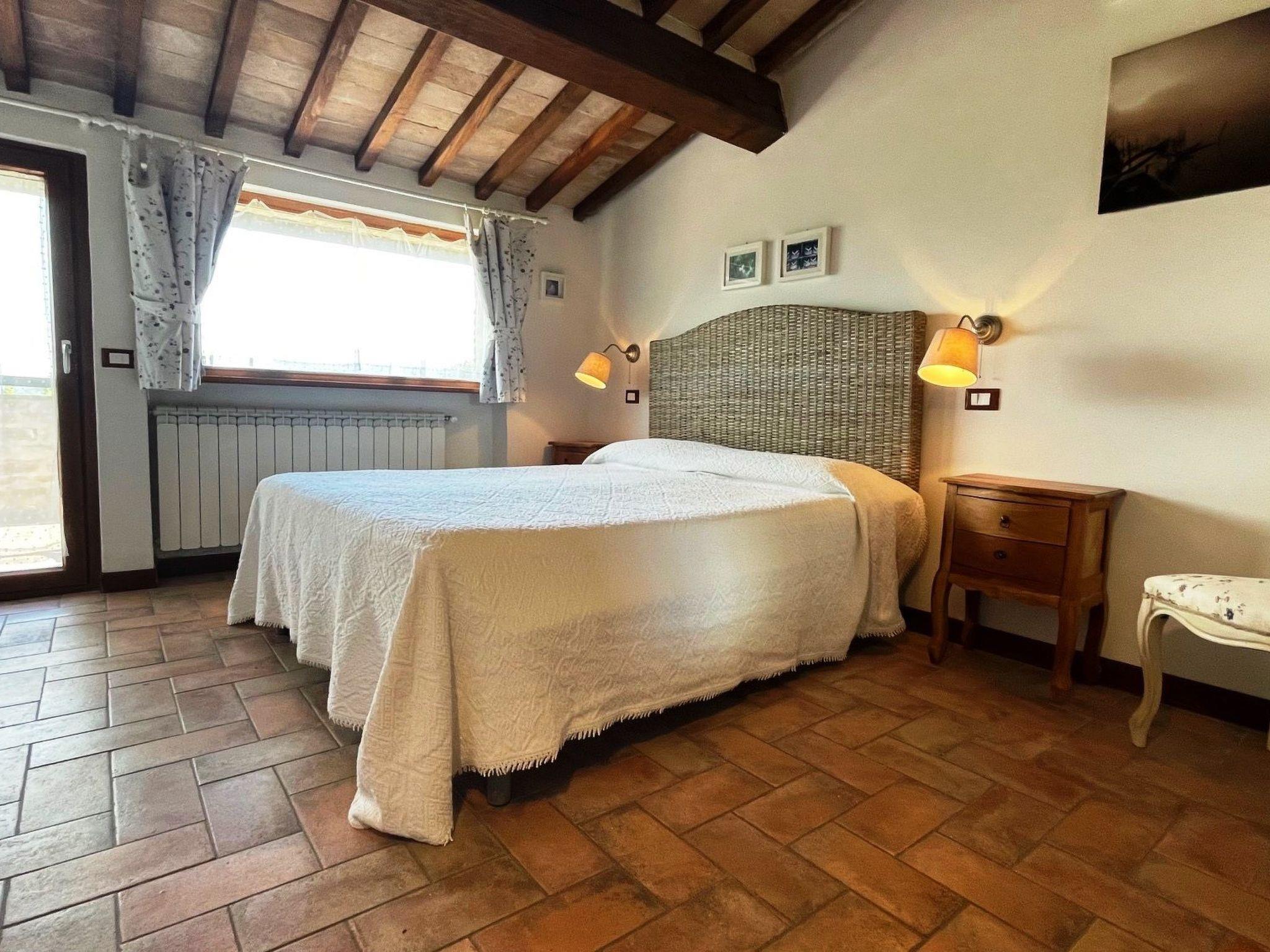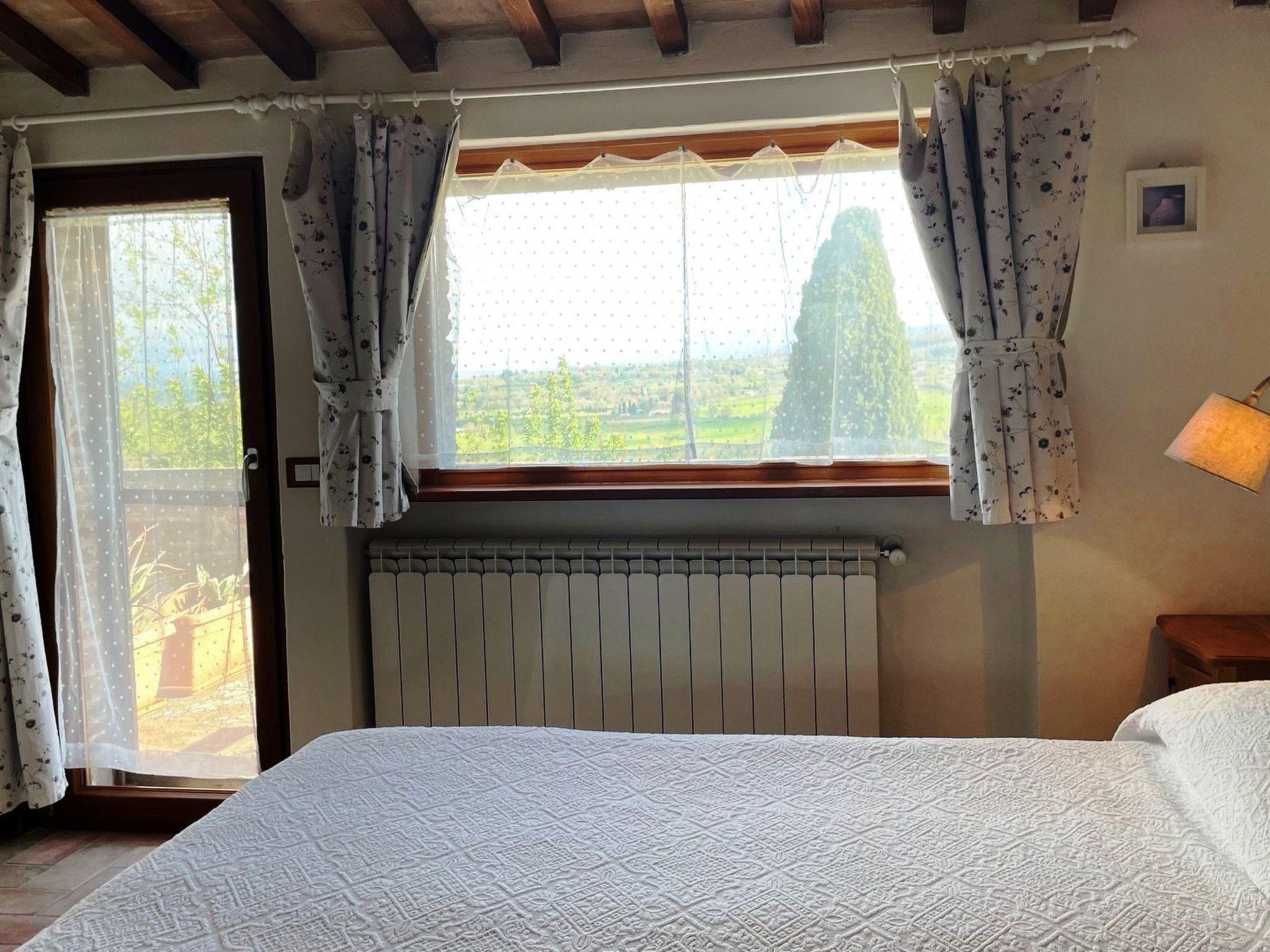 Poggio Cantarello has, on the second floor, two double rooms with private bathroom with shower cabin, view of the surrounding countryside, beamed ceilings and are furnished in a simple way and with antique arte povera wardrobes. Each room has a bathroom, satellite TV, wardrobe, chest of drawers/desk and Wi fi internet connection. (cot or cradle on request) The Rooms At guests' disposal, on the first floor, there is a living room with a double sofa bed, an antique - and working - fireplace, table and chairs, satellite TV and a kitchenette equipped with electric oven, sink, gas cooker and fridge. The Outdoors A large garden, full of many tall trees and olive trees, surrounds the house 2 mountain bikes are available to guests free of charge.