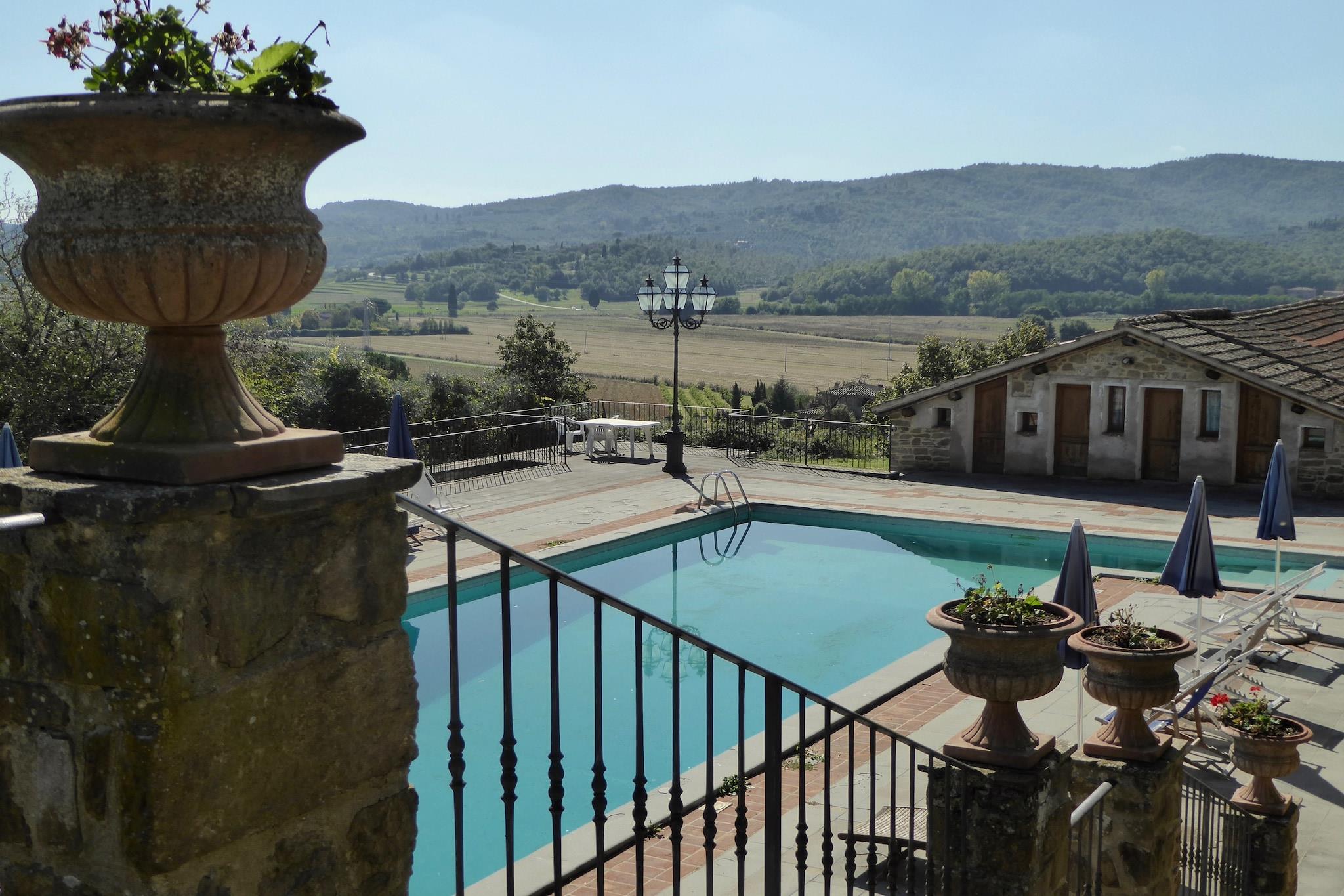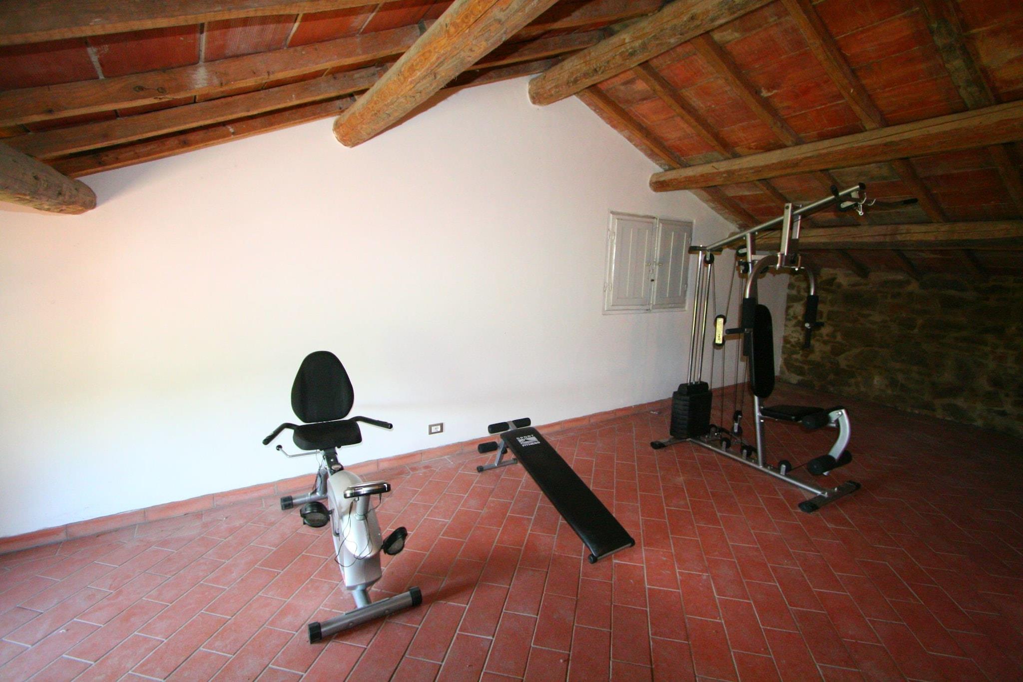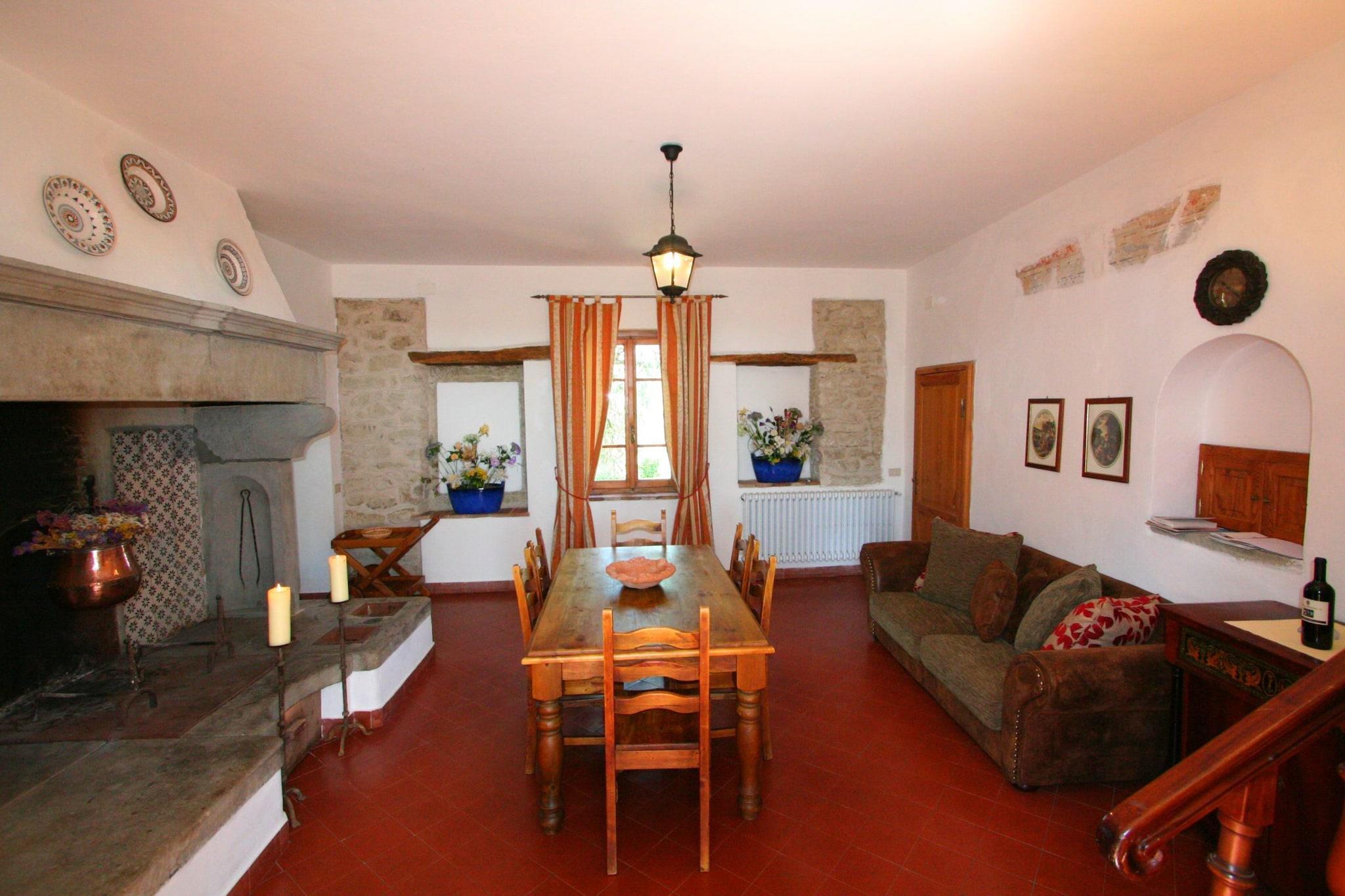 Denne frittliggende toskanske villaen i Ciggiano tilbyr det perfekte tilfluktsstedet for store familier eller grupper, med 8 romslige soverom og overnatting for opptil 20 gjester. Boligen ligger i det rolige landskapet nær Monte San Savino, og har et privat svømmebasseng, frodig hage og panoramautsikt over Chiana-dalen. Det er en ideell setting for en avslappende ferie i hjertet av Toscana. Innvendig finner du koselige soverom med vifter, peiser og et fullt utstyrt åpent kjøkken. WiFi, et treningsrom og barnemøbler sørger for komfort og bekvemmelighet for alle aldre. Uteområdet inviterer deg til å slappe av på terrassen eller nyte måltider under åpen himmel. Enten du svømmer, slapper av eller spiser utendørs, dekker denne eiendommen alle behov. Bare 1 km fra Ciggiano og 5 km fra Monte San Savino, er du nær lokale butikker og autentiske restauranter. Oppdag edelstener i nærheten som Arezzo (20 km), Cortona (35 km) og Montepulciano (38 km). Dagsturer til Siena, Firenze og Perugia er også innen rekkevidde. Ridning og tennis er tilgjengelig innen 20 km, og Firenze lufthavn ligger bare 85 km unna.
