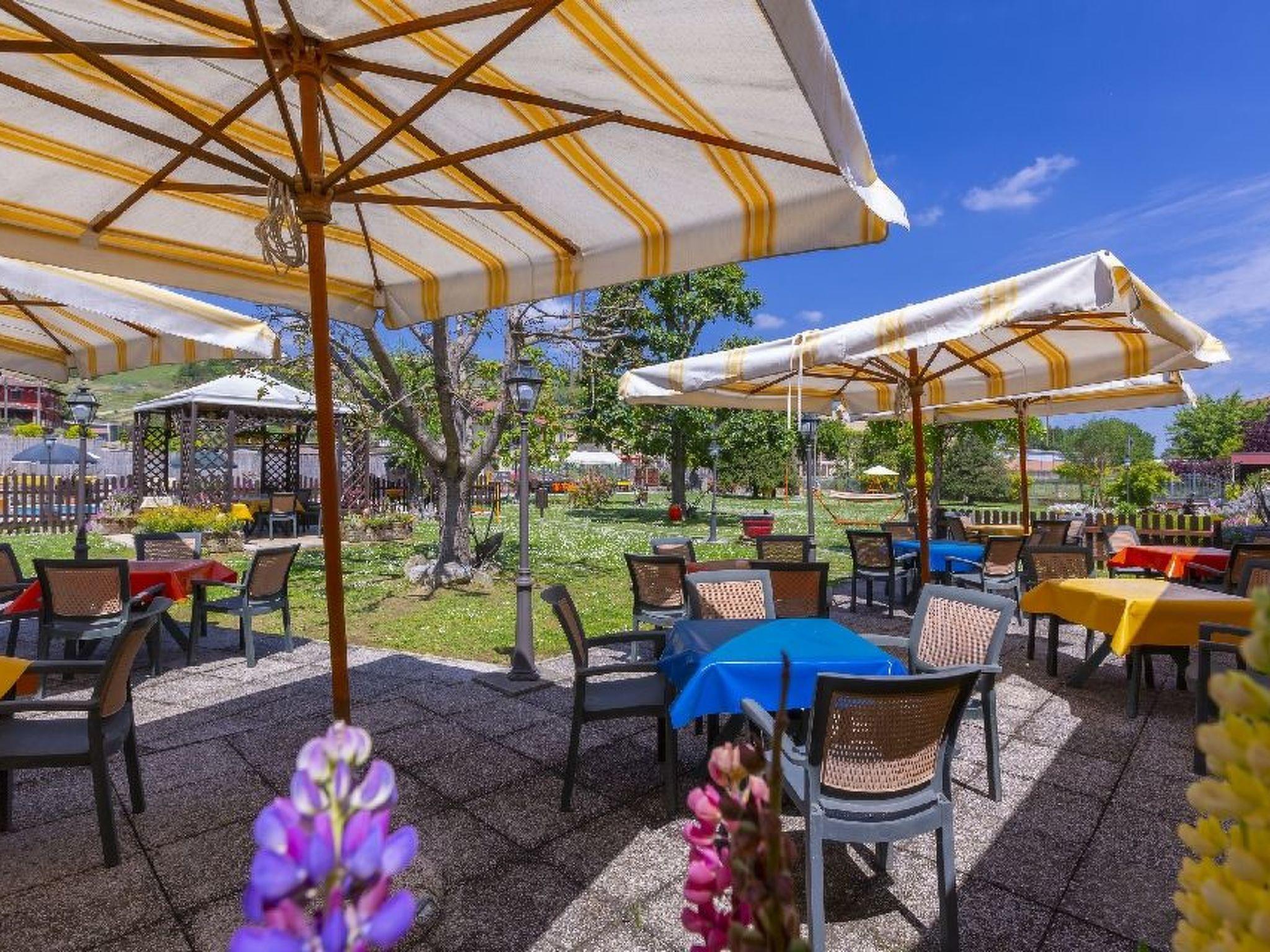The property area includes the car park, in front of the residence, and a green area of approximately 3,000 m2, where we find the 14 x 6 m swimming pool, with sun loungers and parasols, a grass volleyball court, indoor table football, table tennis, as well as a second area adjacent to the swimming pool, with tables, chairs, a large gazebo and barbecue. The whole area is fenced off so that children can have fun safely and parents can relax in peace.