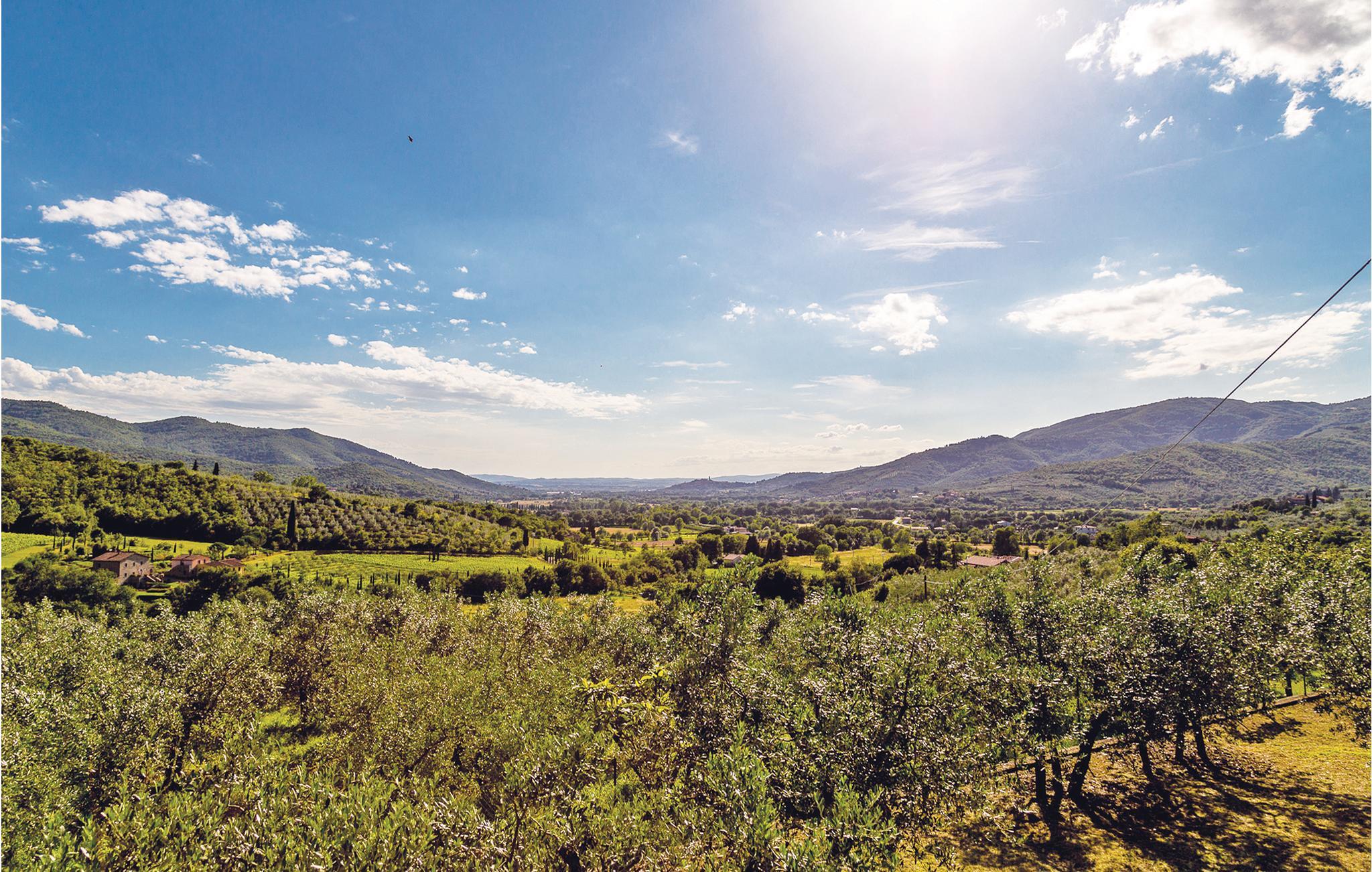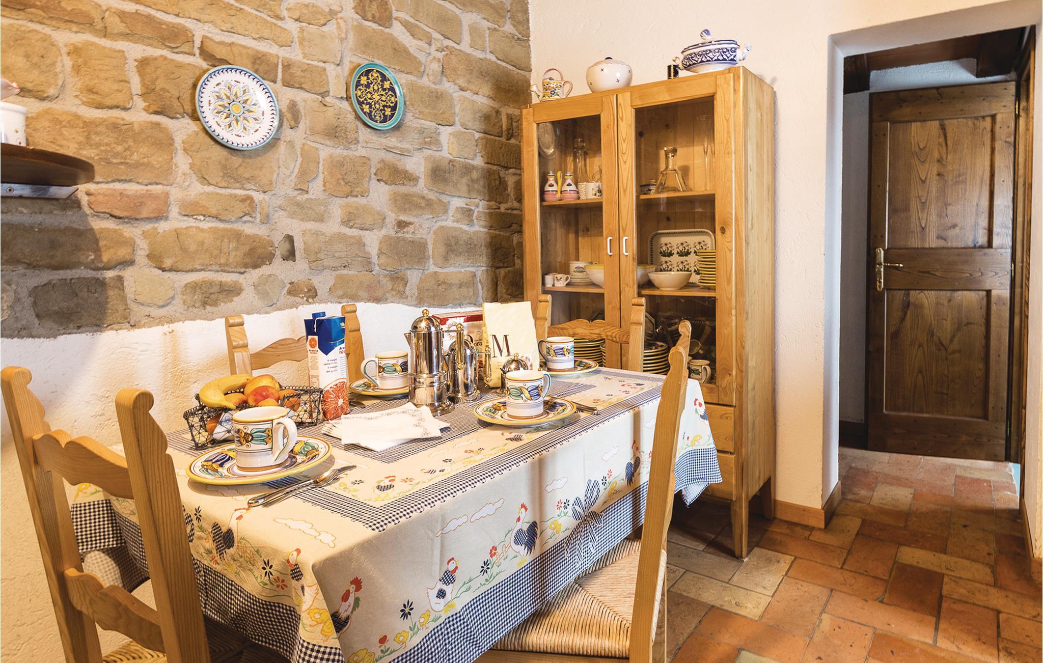 Vakkert, karakteristisk feriehus i naturstein med saltvannsbasseng, en gang et gammelt landsted, som ligger i det grønne. Huset ligger på toppen av en høyde på grensen til Toscana og ca 6 km fra den lille landsbyen Morra, hvor du finner de nærmeste shoppingmulighetene. Her kan du slappe av i all uformalitet ved bassenget, starte utflukter til de karakteristiske, små byene som Cortona (28 km), Arezzo (39 km) eller Gubbio (51 km) og om kvelden, etter å ha kommet tilbake til dette vakre feriehuset, avslutte dagen med en middag på den vakre terrassen. Fra det doble soverommet i 1. etasje fører en trestige til et dørløst rom på loftet (minimum høyde 1,30 m - maksimal høyde 2,00 m) med sovesofa (bredde 1,20 m). Huset er tilgjengelig via en automatisk inngangsport, og du finner en overbygd parkeringsplass på eiendommen. Bak huset er det en liten kirke og huset til presten, men han ringer klokkene bare på søndager.
