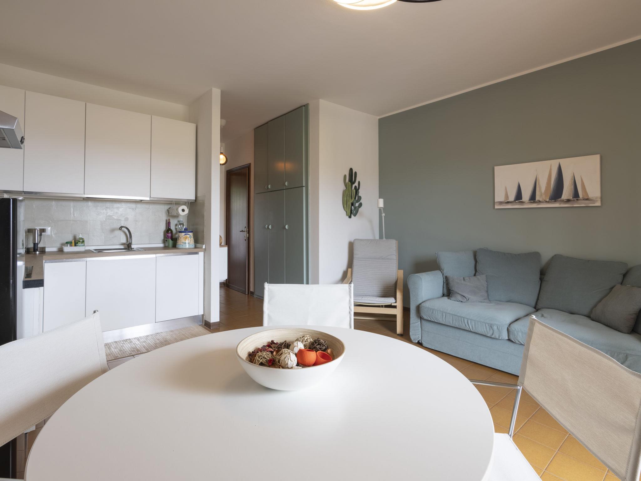 "Happy Home", 2-room apartment 60 m2 on 2nd floor. Practical and modern furnishings: living/dining room with 1 double sofabed (160 cm, length 200 cm), TV. Exit to the balcony. 1 double bedroom. Exit to the balcony. Open kitchen (dishwasher, toaster, kettle, electric coffee machine). Shower/bidet/WC. Gas heating. Heating available only from 01.11. to 15.04. Balcony 12 m2, balcony 8 m2. Terrace furniture. Panoramic view of the sea and the resort. Facilities: washing machine, baby cot for up to 2 year olds, hair dryer. Internet (WiFi, free). Maximum 1 pet/ dog allowed. Bookable garage near the Sea. IT008022C2OWQZKNUA