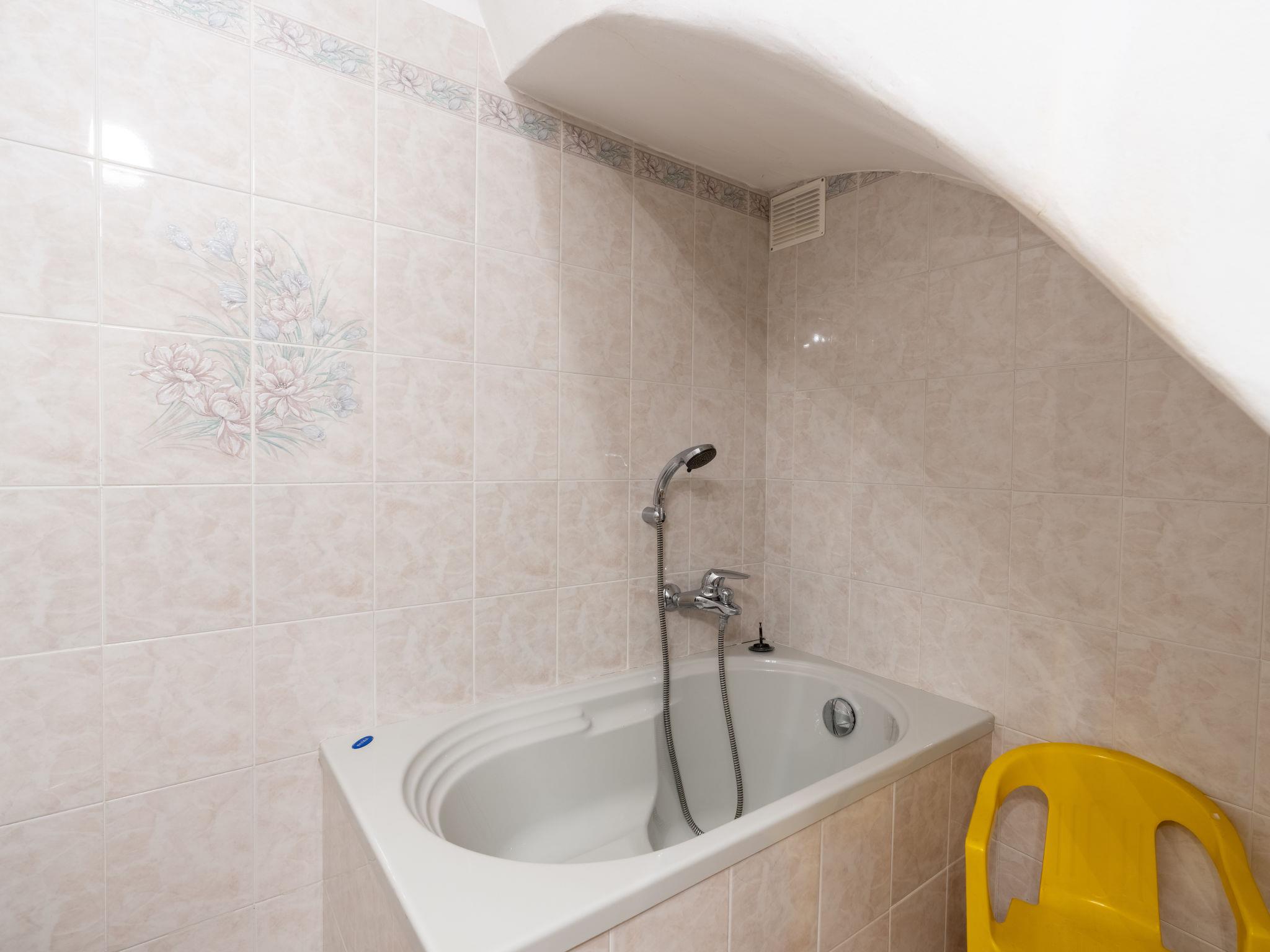 "Peppina", 3-room house 90 m2, on the ground floor. Cosy furnishings: living/dining room. Exit to the garden, to the terrace. Open kitchen (2 hot plates, oven, toaster, kettle, electric coffee machine) with TV. Exit to the garden, to the terrace. Bath/bidet/WC, shower/WC. On the lower ground floor: gas heating. Heating available only from 01.11. to 15.04. Upper floor: 1 double bedroom. 1 room with 2 x 1 bunk beds (90 cm, length 200 cm). Terrace 12 m2, garden. Terrace furniture. View of the countryside and the resort. Facilities: washing machine, hair dryer. Internet (WiFi, free). Please note: private entrance. IT008022C28XF3E58U