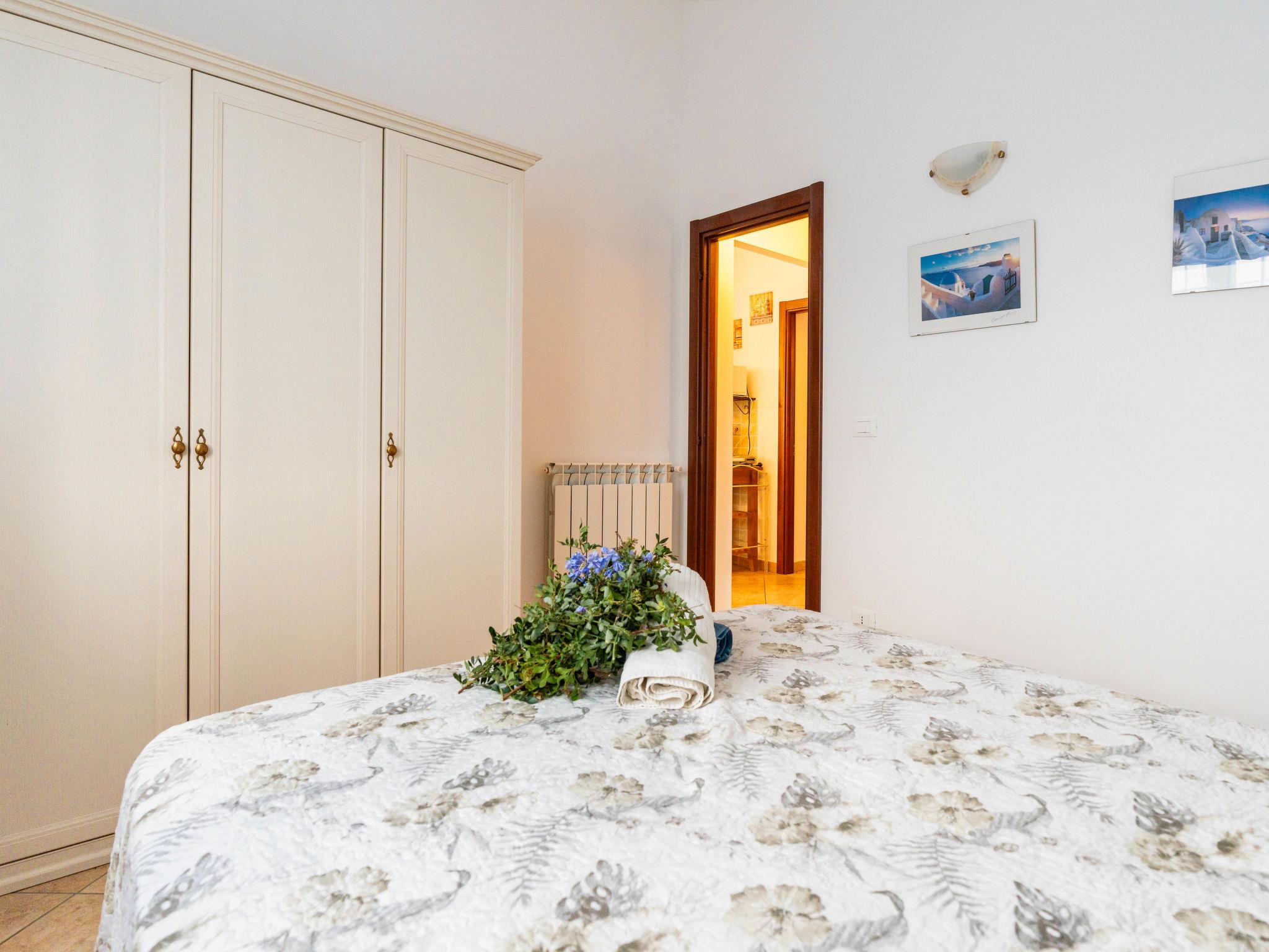 "Garden", 4-room apartment 90 m2, on the ground floor. Practical and cosy furnishings: living/dining room. 3 double bedrooms, each room with 1 french bed (140 cm, length 200 cm). Kitchenette (dishwasher, 4 gas rings, toaster, kettle, microwave, electric coffee machine). 2 showers/bidet/WC. Gas heating, air-conditioning, forced-air heating. Heating available only from 01.11. to 15.04, Solar power. Patio, garden. Terrace furniture, barbecue, deck chairs. Panoramic view of the sea and the countryside. Facilities: washing machine, children's high chair, baby cot for up to 2 year olds, hair dryer. Internet (WiFi, free). Please note: maximum 1 pet/ dog allowed. Private entrance. IT008022B4TIB4YYCI