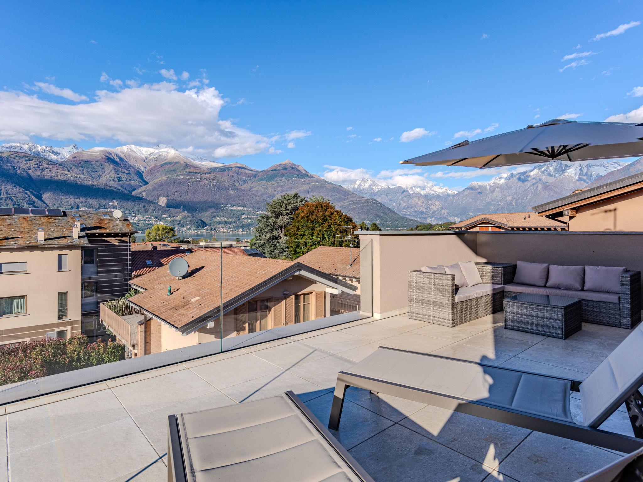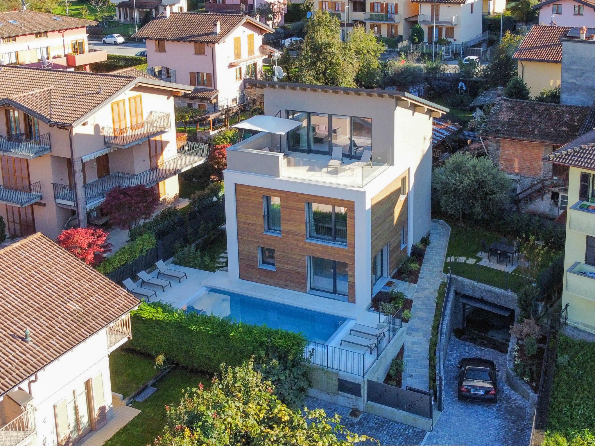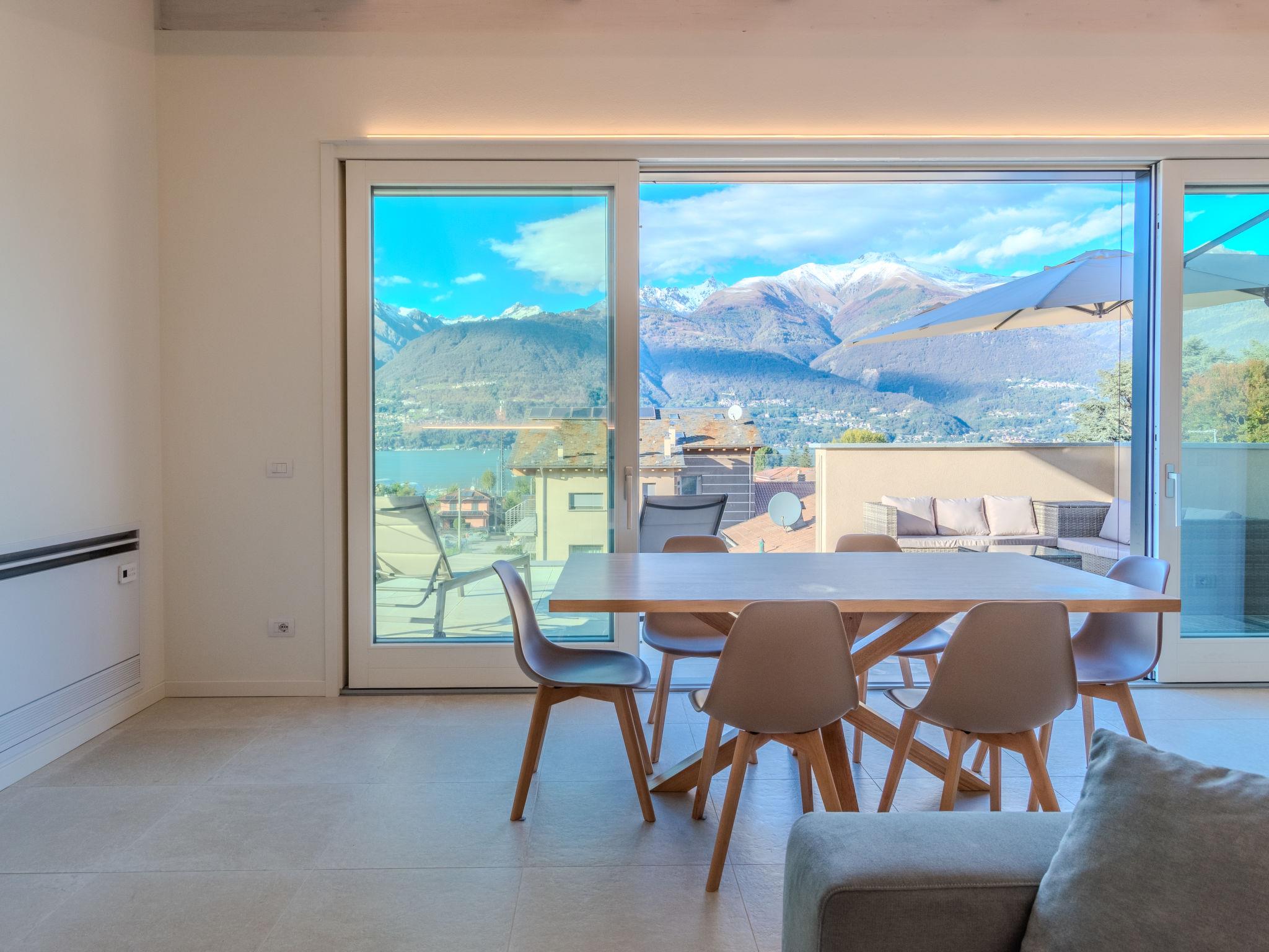 Large, modern house "Uliveto", 3 storeys, built in 2023. 650 m from the centre of Colico, 38 km from the centre of Lecco, 69 km from the centre of Como, in a central, elevated position, 700 m from the lake. Private: property 300 m2 (fenced) with lawn, swimming pool angular (3 x 8 m, depth 140 cm, seasonal availability: 01.Apr. - 30.Oct.). Outdoor shower, pool maintenance by the owner/gardener. In the house: storage room for bicycles. Linen change (suppl. charge extra). Room cleaning on request (extra). Parking (for 3 cars) on the premises, single garage. Supermarket 1.5 km, restaurant 450 m, bar 500 m, bakery, pedestrian zone 600 m, bus stop 900 m, railway station "Colico" 1 km, ferry 600 m, grass beach "Lido di Colico" 700 m. Golf course (18 hole) 37 km, surf school 1.5 km, riding stable 3.4 km, children's playground 1.1 km. Nearby attractions: Forte Montecchio Nord, Abbazia di Piona, Torri di Fontanedo. Well-known ski regions can easily be reached: Madesimo, Livigno. Well-known lakes can easily be reached: Lago di Mezzola. Hiking paths: Pian di Spagna, Monte Legnone. The owner does not accept any youth groups.