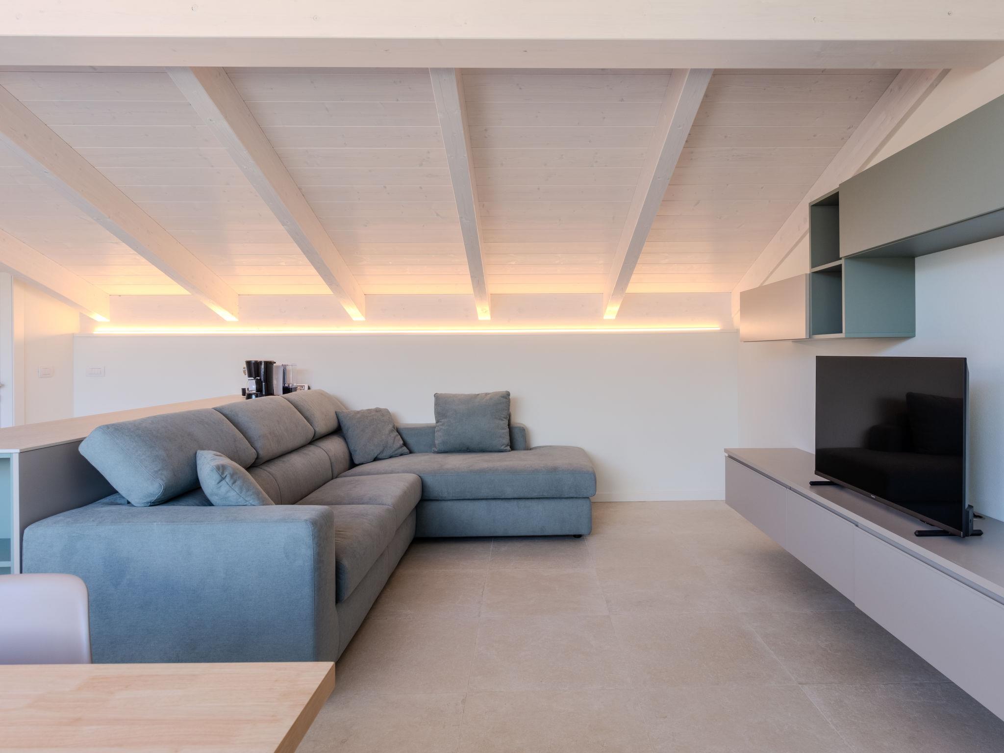 7-room house 150 m2 on 3 levels. Open living/sleeping room with 1 double sofabed and dining table. Exit to the garden. 1 double bedroom. Open kitchen (oven, dishwasher, 4 induction hot plates, toaster, microwave, electric coffee machine). Shower/bidet/WC. Upper floor: 1 double bedroom. 1 double bedroom with shower/bidet/WC. 1 room with 2 beds. Shower/bidet/WC. 2nd upper floor: open living/dining room with panoramic window. Exit to the terrace. Open kitchen (oven, dishwasher, 4 induction hot plates, toaster, microwave, electric coffee machine). Sep. WC. Air-conditioning, forced-air heating. Large terrace 50 m2. Terrace furniture, barbecue, deck chairs (8). Very beautiful view of the lake and the mountains. Facilities: washing machine, children's high chair, baby cot for up to 2 year olds, hair dryer. Internet (WiFi, free). Parking (3 cars), garage (1 car). Please note: non-smoking house. Maximum 1 pet/ dog allowed. No lift. IT097023C29V7R9Y9S