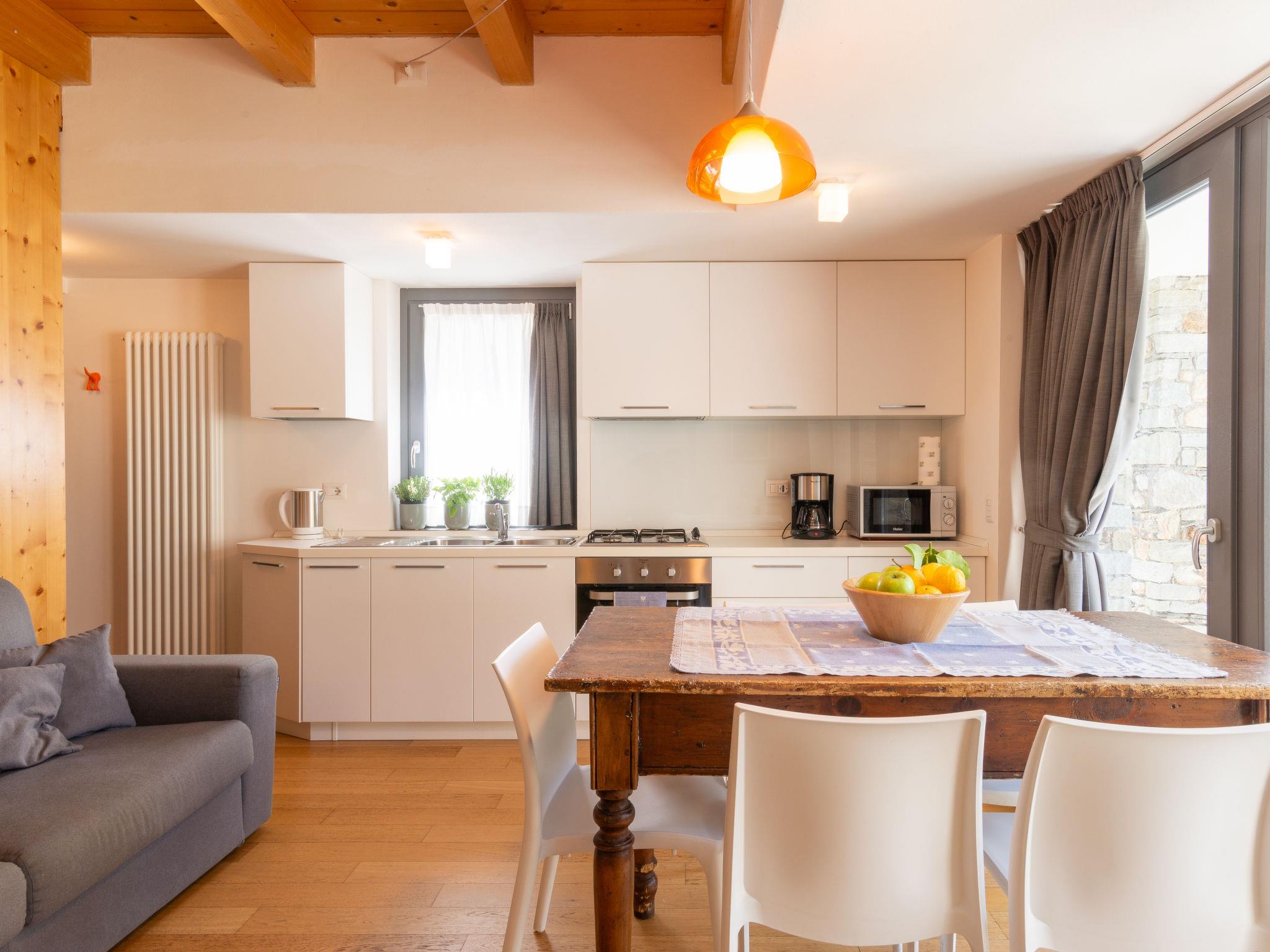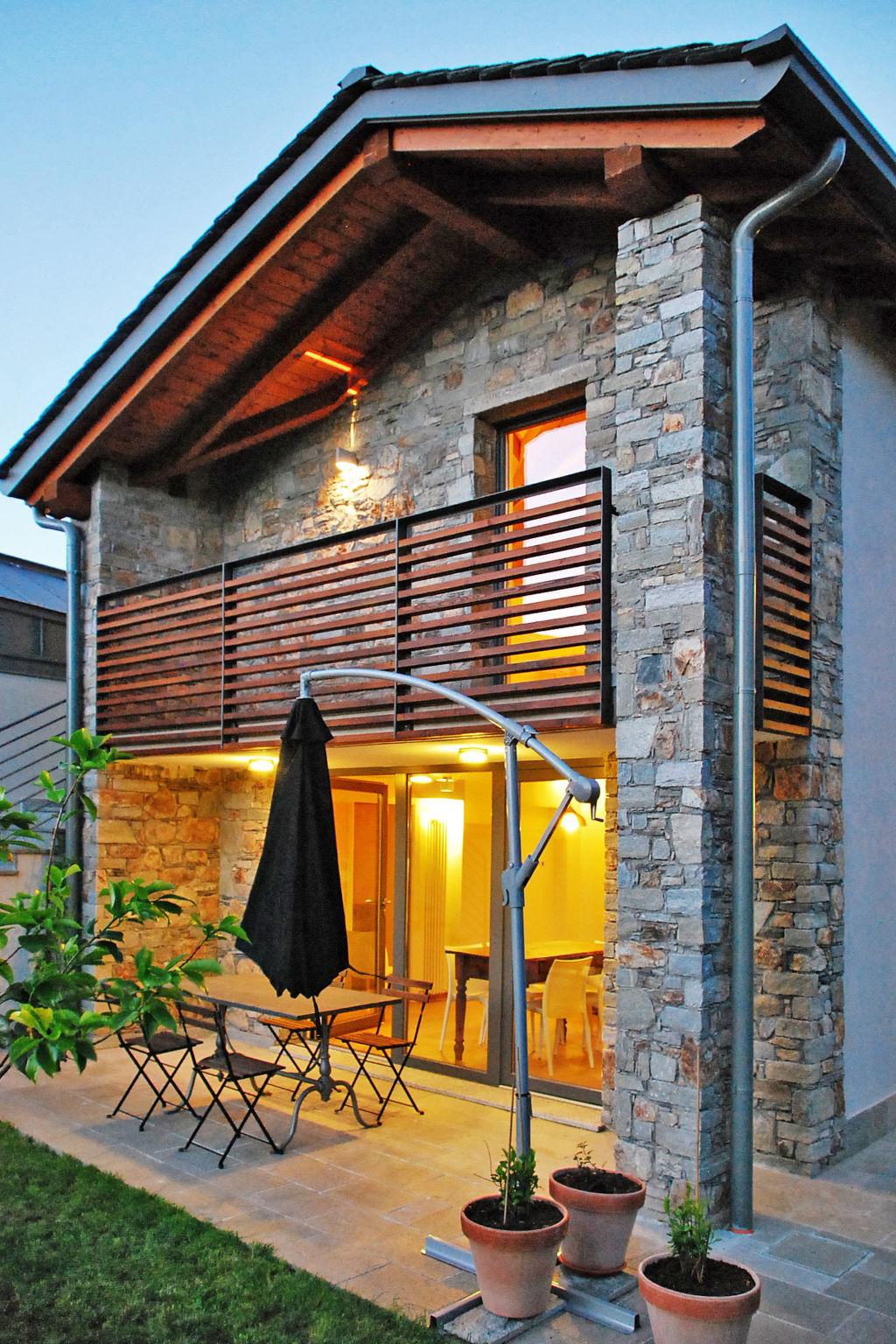 Modern semi-detached house "Baila". In the district of Curcio 1 km from the centre of Colico, 38 km from the centre of Lecco, 65 km from the centre of Como, in the residential district, 2 km from the lake. For shared use: property 800 m2 (fenced) with meadow, orchard, parking (for 3 cars) at the house, public parking on the road. Shop 1 km, bus stop 450 m, railway station "Colico" 1 km, grass beach 2 km. Marina 2 km, golf course (18 hole) 35 km, surf school 2 km. Nearby attractions: Forte Montecchio Nord, Torri di Fontanedo, Abbazia di Piona, Mulino Maufet. Well-known ski regions can easily be reached: Madesimo, Livigno. Well-known lakes can easily be reached: Lago di Mezzola, Lago di Lugano. Hiking paths: Monte Legnone, Monte di Rusico. The owner does not accept any youth groups. Part of the house is closed and unoccupied.