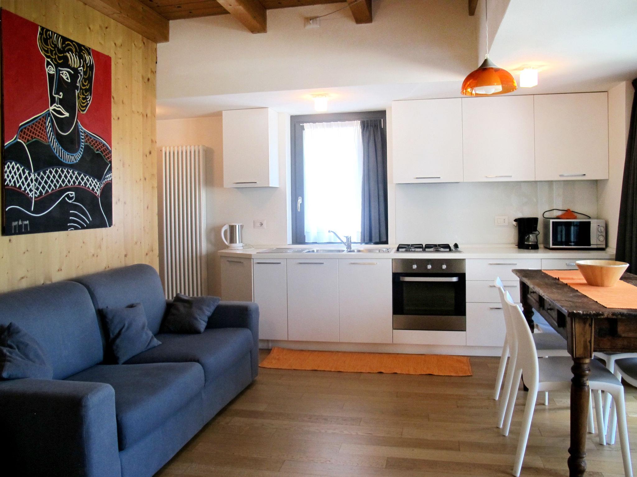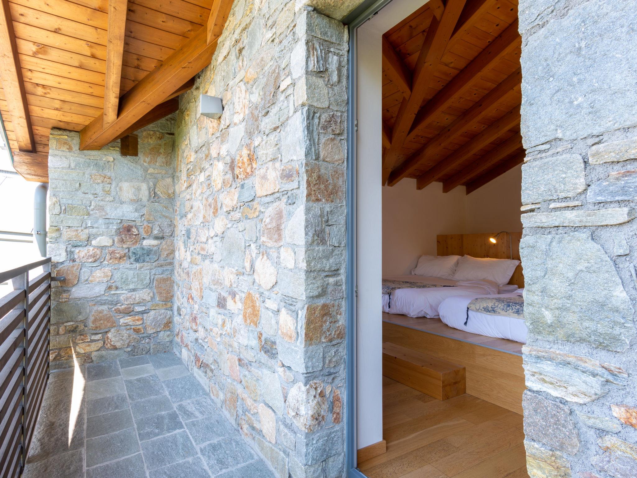 "Baila (CCO510)", 2-room semi-detached house 45 m2 on 2 levels. Bright, modern and tasteful furnishings: living/sleeping room with 1 double sofabed and dining table. Open kitchen (oven, 4 gas rings, kettle, microwave, freezer, electric coffee machine). Exit to the terrace. Shower/WC. Gas heating. Upper floor: (steep stair), 1 open room with sloping ceilings with 2 french beds (140 cm). Exit to the balcony, to the terrace. Parquet floors. Balcony, terrace 10 m2 partly roofed terrace 16 m2, garden, lawn. Terrace furniture, balcony furniture, deck chairs (4). Marvellous view of the mountains. Facilities: washing machine, children's high chair, baby cot, hair dryer. Internet (WiFi, free). Parking (1 car). Instead of an enclosed bedroom, some sleeping areas are located in an open-plan area (gallery, alcove, etc.). IT097023C2TTV3SPXT