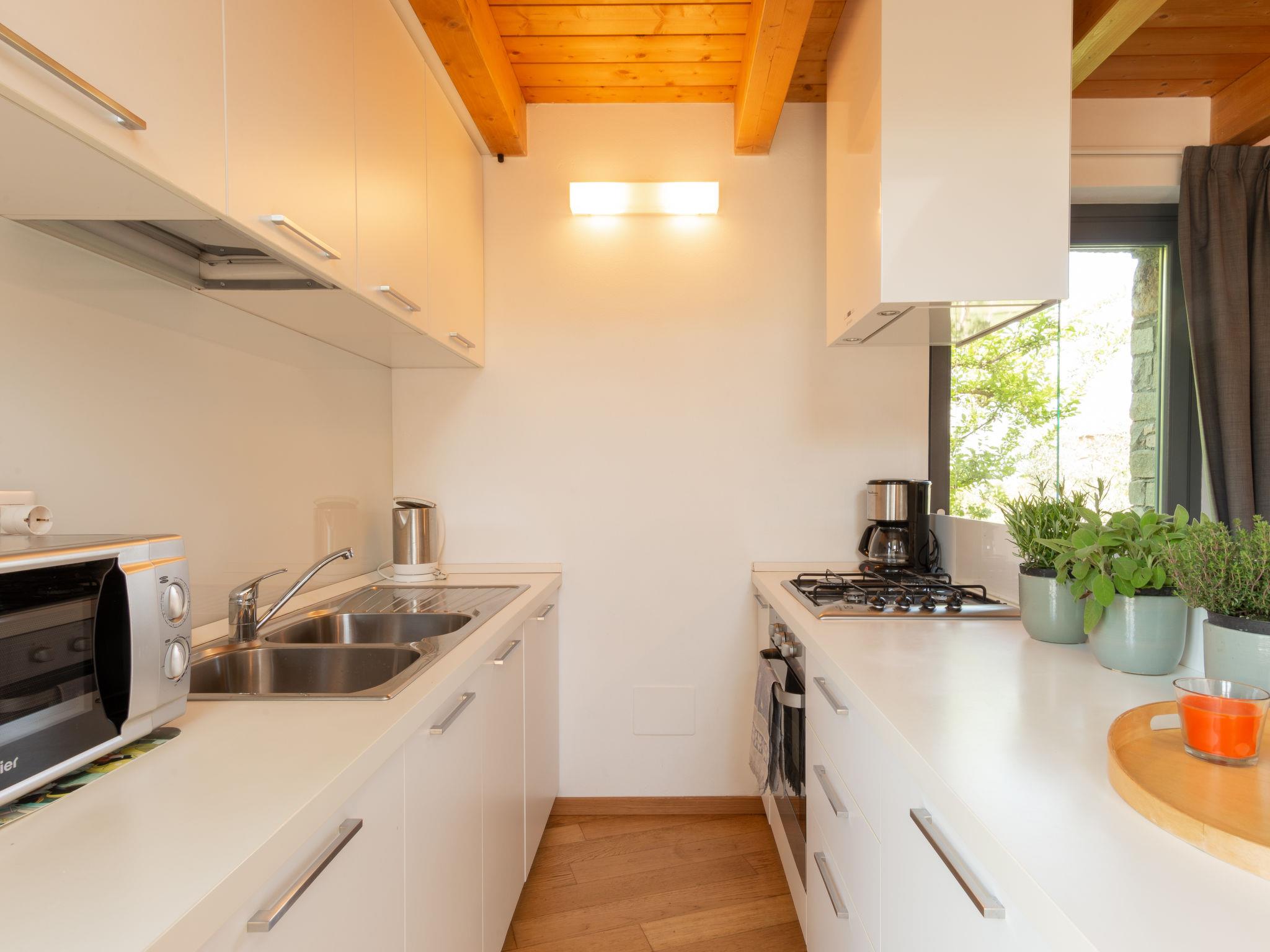 "Baila (CCO511)", 3-room semi-detached house 70 m2 on 2 levels. Modern and tasteful furnishings: living/sleeping room with 1 double sofabed and dining table. Exit to the terrace. 1 room with 1 double bed. Exit to the garden. Open kitchen (oven, 4 gas rings, kettle, microwave, freezer, electric coffee machine). Shower/WC. Gas heating. Upper floor: (steep stair) gallery with 1 bed and 1 double bed. Parquet floors. Terrace 35 m2, garden, lawn. Terrace furniture, deck chairs (4). Marvellous view of the mountains. Facilities: washing machine, children's high chair, baby cot, hair dryer. Internet (WiFi, free). Parking (fenced 2 cars). Instead of an enclosed bedroom, some sleeping areas are located in an open-plan area (gallery, alcove, etc.). IT097023C2TTV3SPXT