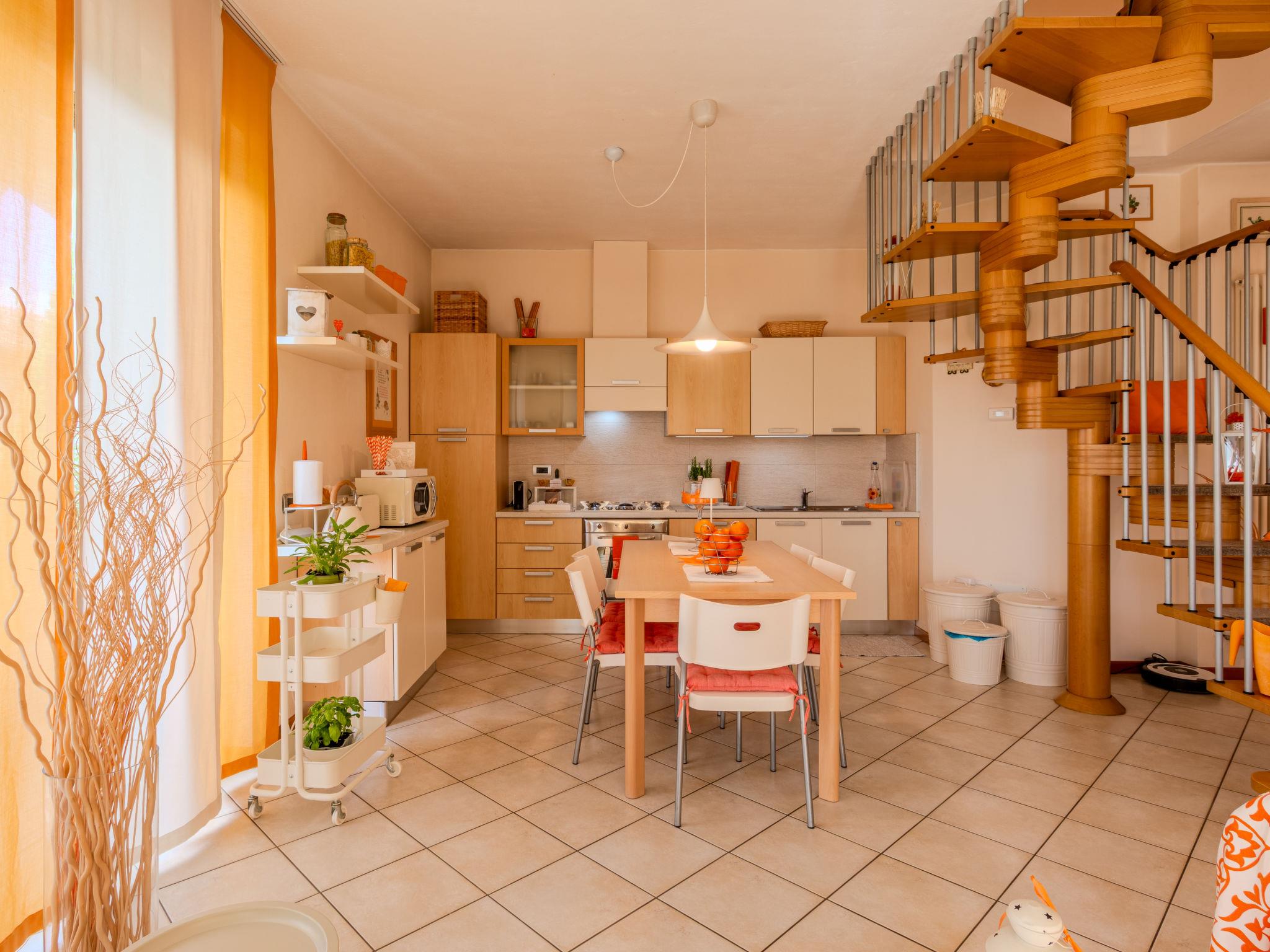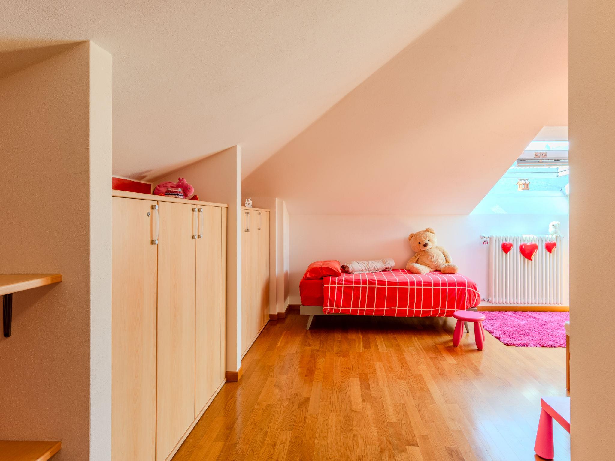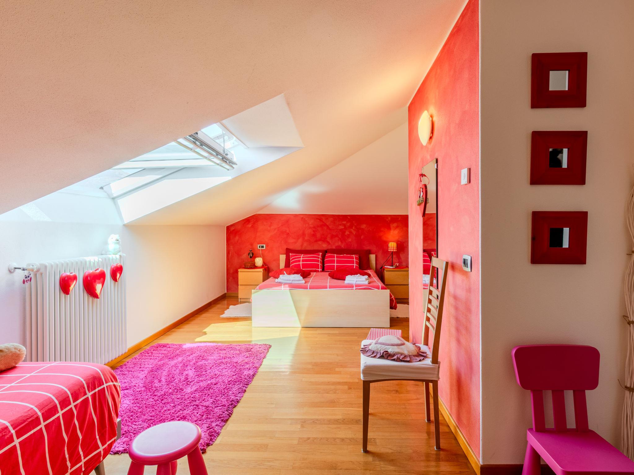 3-room semi-detached house 122 m2 on 2 levels. Tasteful and cosy furnishings: large living/dining room with dining table and TV. Exit to the balcony. Open kitchen (oven, dishwasher, 5 gas rings, toaster, kettle, microwave, electric coffee machine, Capsules for coffee machine (Nespresso) extra). Shower/bidet/WC. Upper floor: 1 room with 1 bed and 1 double bed. 1 room with 3 beds. Bath/bidet/WC. Gas heating, air-conditioning. Heating available only from 15.10. to 15.04. Parquet floors. Balcony. Balcony furniture, deck chairs. Beautiful view of the lake and the countryside. Facilities: washing machine, children's high chair, baby cot for up to 2 year olds, hair dryer. Internet (WiFi, free). Parking (1 car). Please note: non-smoking house. Maximum 1 small pet/ dog allowed. Smoke alarm, fire extinguisher. IT097023C25MCMUUXS