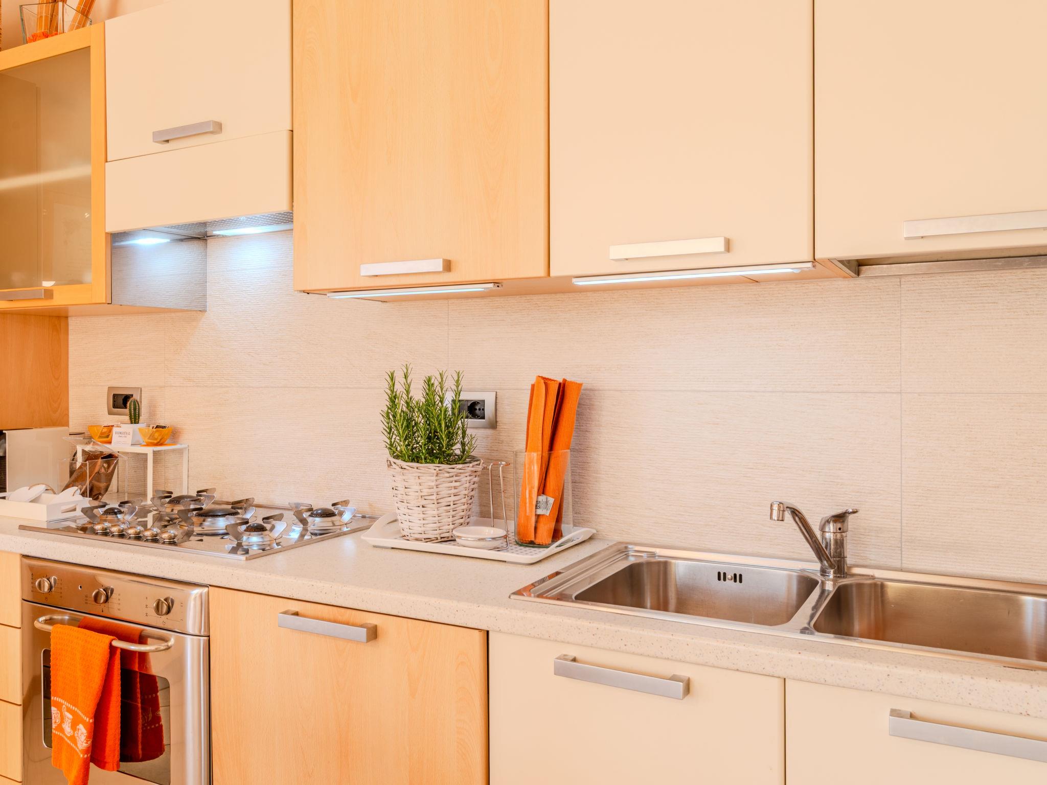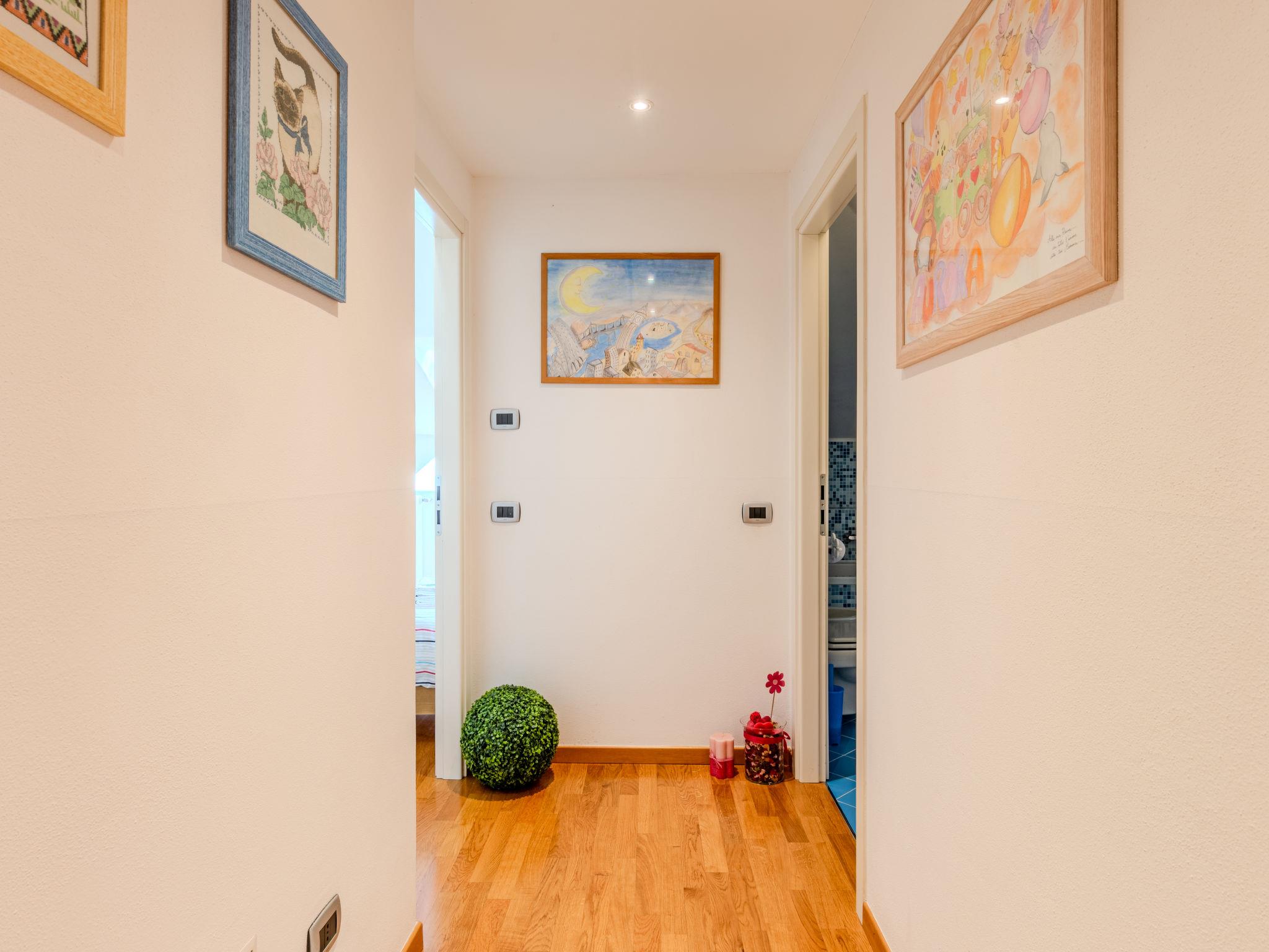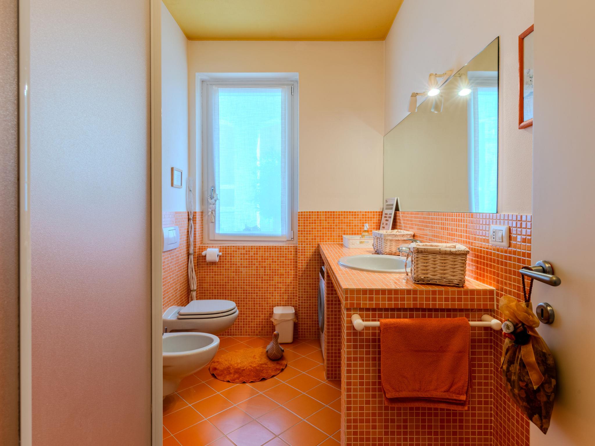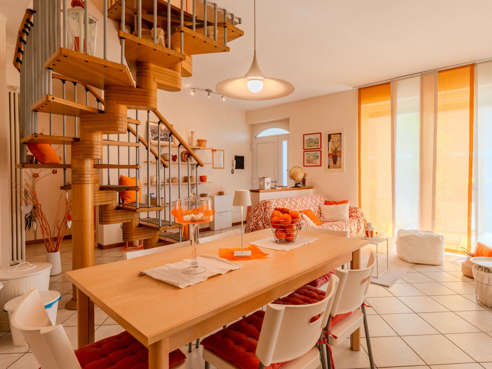3-room semi-detached house 122 m2 on 2 levels. Tasteful and cosy furnishings: large living/dining room with dining table and TV. Exit to the balcony. Open kitchen (oven, dishwasher, 5 gas rings, toaster, kettle, microwave, electric coffee machine, Capsules for coffee machine (Nespresso) extra). Shower/bidet/WC. Upper floor: 1 room with 1 bed and 1 double bed. 1 room with 3 beds. Bath/bidet/WC. Gas heating, air-conditioning. Heating available only from 15.10. to 15.04. Parquet floors. Balcony. Balcony furniture, deck chairs. Beautiful view of the lake and the countryside. Facilities: washing machine, children's high chair, baby cot for up to 2 year olds, hair dryer. Internet (WiFi, free). Parking (1 car). Please note: non-smoking house. Maximum 1 small pet/ dog allowed. Smoke alarm, fire extinguisher. IT097023C25MCMUUXS