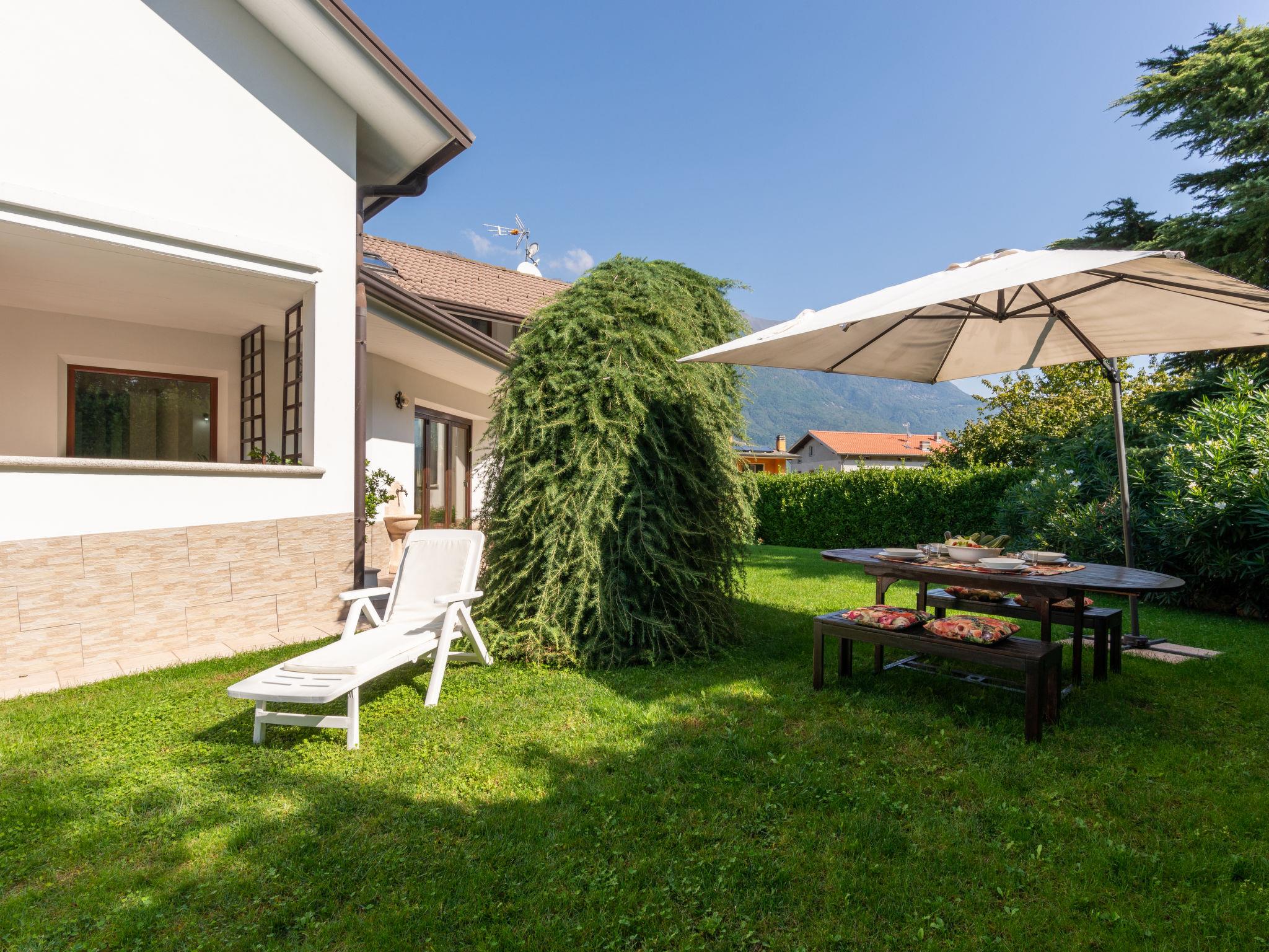 Delebio 9 km from Colico: Modern 2-family house "Candida". 8.5 km from the centre of Colico, 35 km from the centre of Sondrio, 45 km from the centre of Lecco, in the residential district, 8.5 km from the lake, in a cul-de-sac. Private: property 500 m2 with lawn and trees, lawn for sunbathing, swimming pool (8 x 4 m, depth 150 cm, seasonal availability: 15.Apr. - 30.Sep.). Terrace, barbecue, pool maintenance by the owner/gardener. Stepped path to the house. Parking (for 2 cars) on the premises. Shop 650 m, supermarket 2.4 km, bus stop 200 m, railway station "Delebio" 600 m, grass beach "Colico" 8.5 km. Golf course (18 hole) 38 km. The owner does not accept any youth groups. Please note: 1st floor is closed and not occupied. The owner lives in the same residence.
