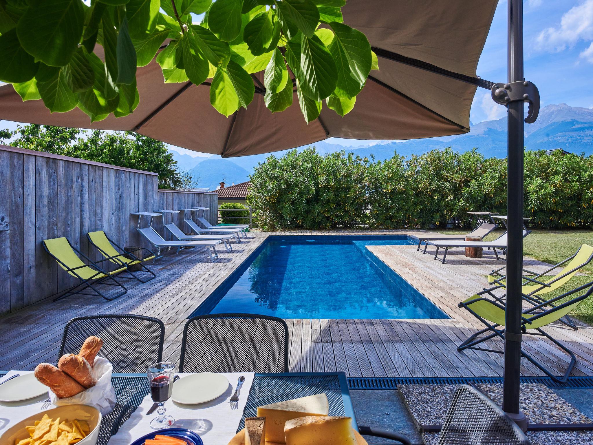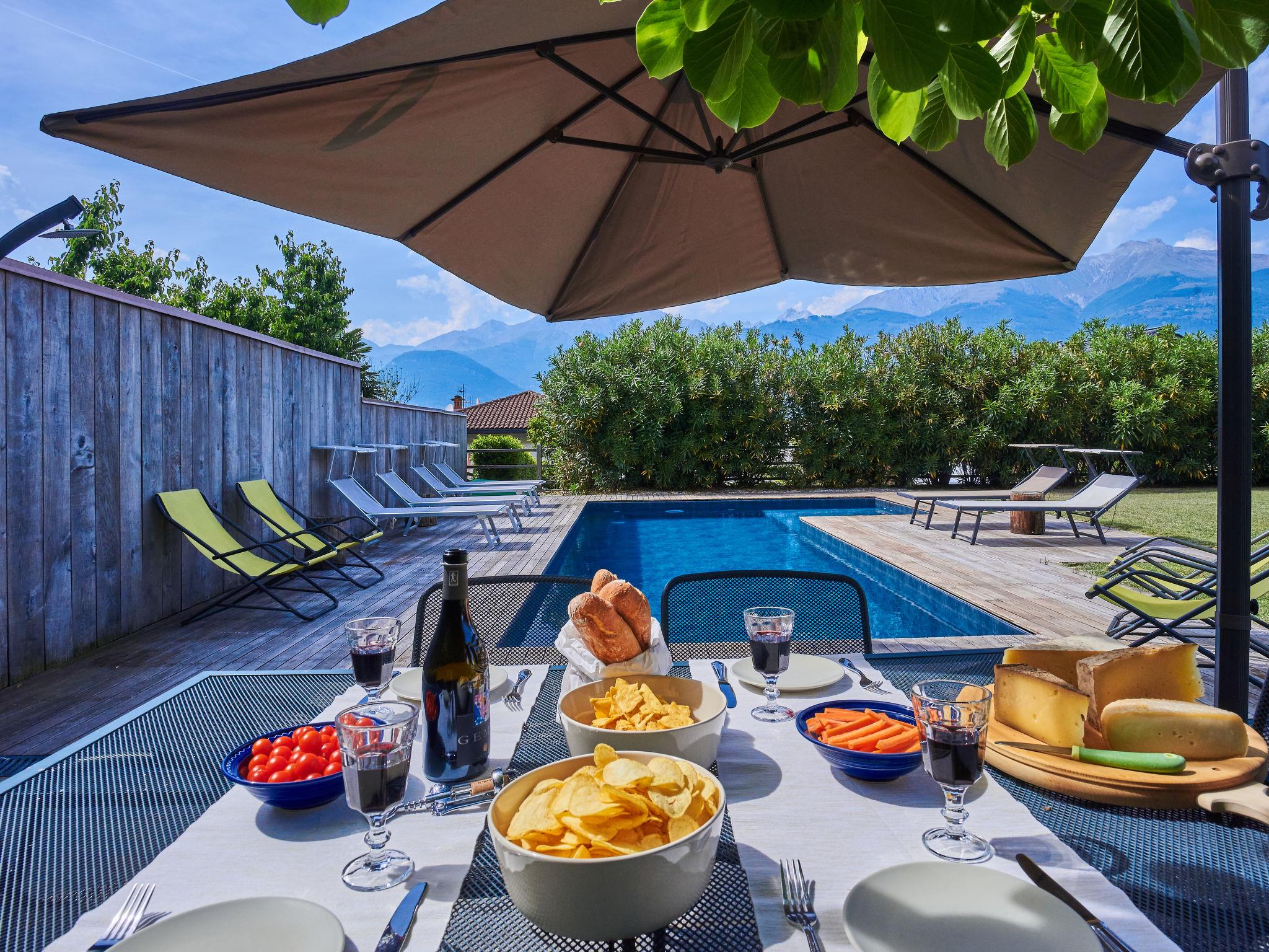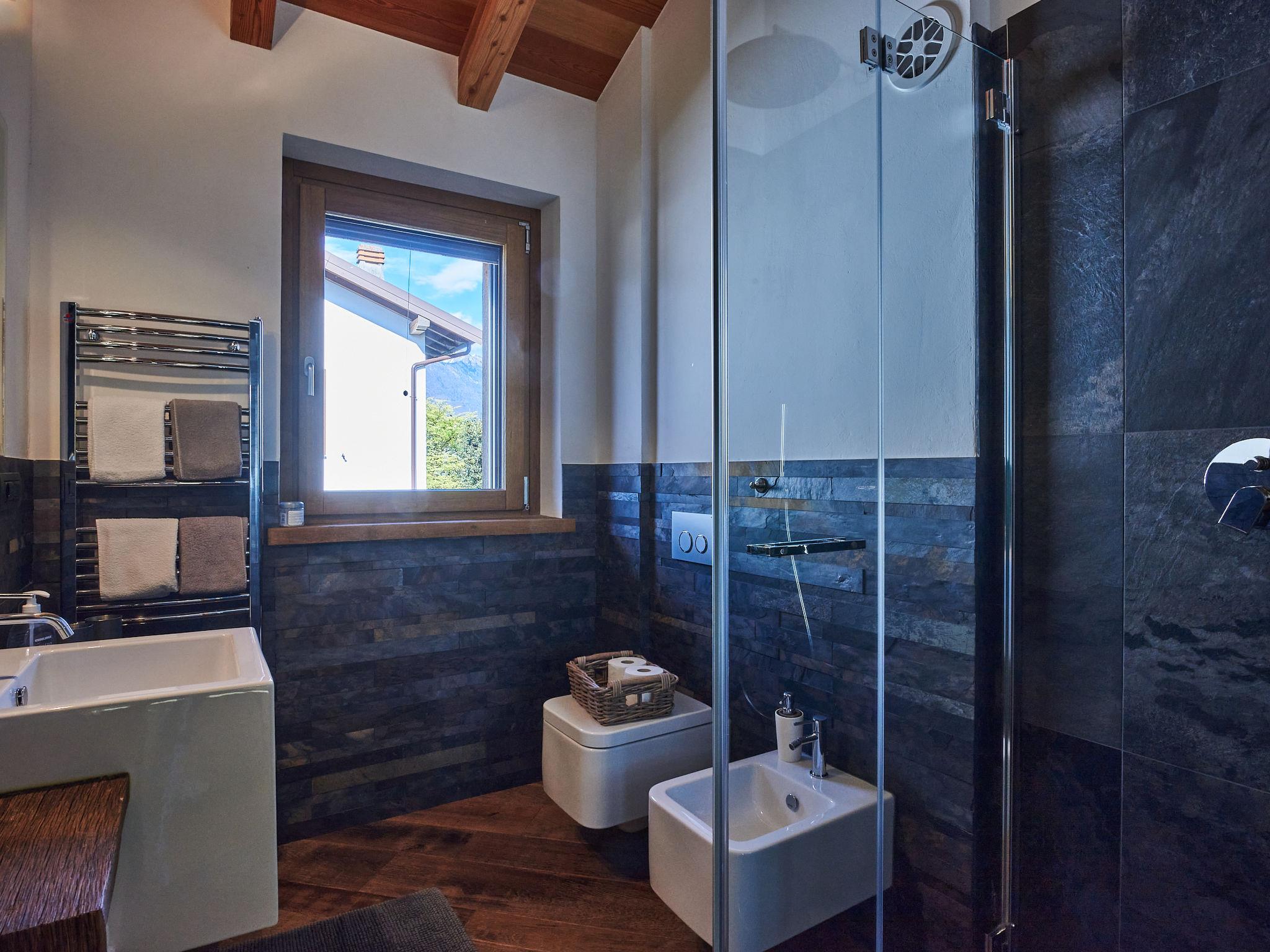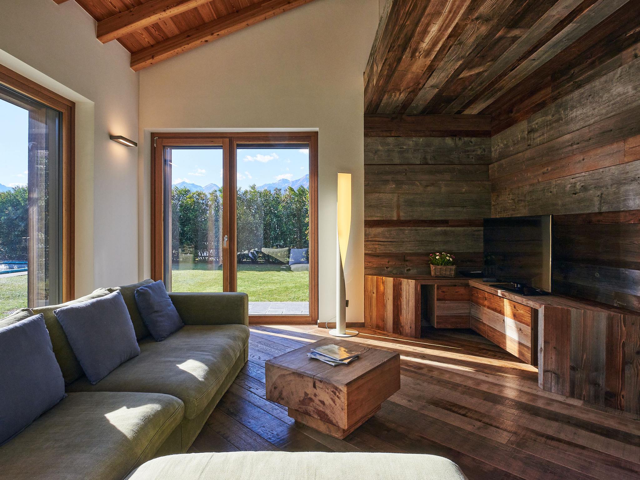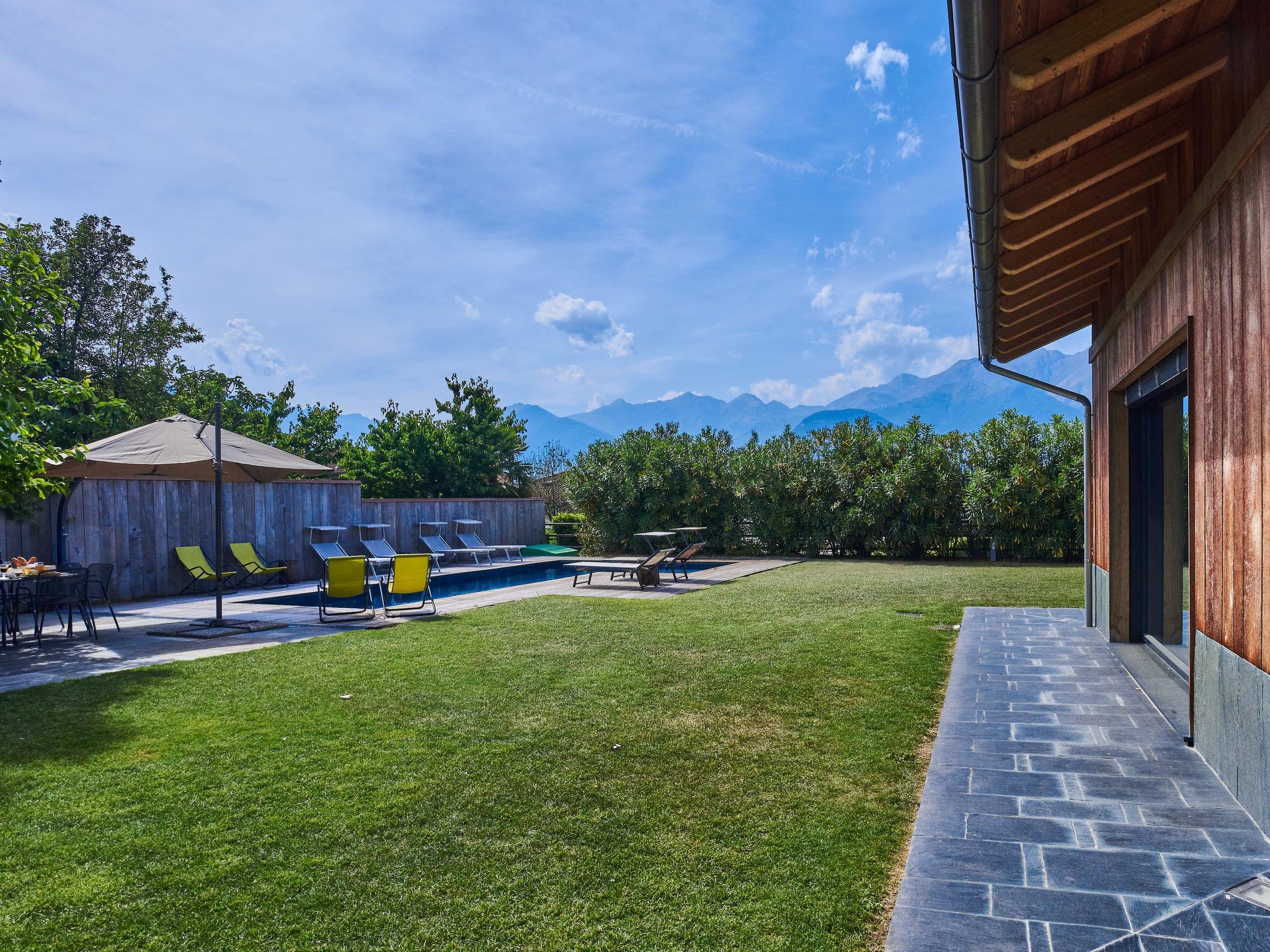 Large, modern villa "Woodhouse", 3 storeys. 650 m from the centre of Colico, 38 km from the centre of Lecco, 69 km from the centre of Como, 1.1 km from the lake, in a cul-de-sac. Private: property 500 m2 (fenced) with lawn, swimming pool angular (depth 150 cm, seasonal availability: 15.May. - 30.Sep.). In the house: fitness room, table football, storage room for bicycles. Parking (for 2 cars) on the premises, single garage. Supermarket, restaurant 650 m, bar 600 m, bus stop 350 m, railway station "Colico" 650 m, grass beach "Lido di Colico" 1.8 km. Golf course (18 hole) 37 km, surf school 1.4 km, riding stable 3.4 km, children's playground 600 m. Nearby attractions: Forte Montecchio Nord, Abbazia di Piona, Torri di Fontanedo. Well-known ski regions can easily be reached: Madesimo, Livigno. Well-known lakes can easily be reached: Lago di Mezzola. Hiking paths: Pian di Spagna, Monte Legnone. The owner does not accept any youth groups.