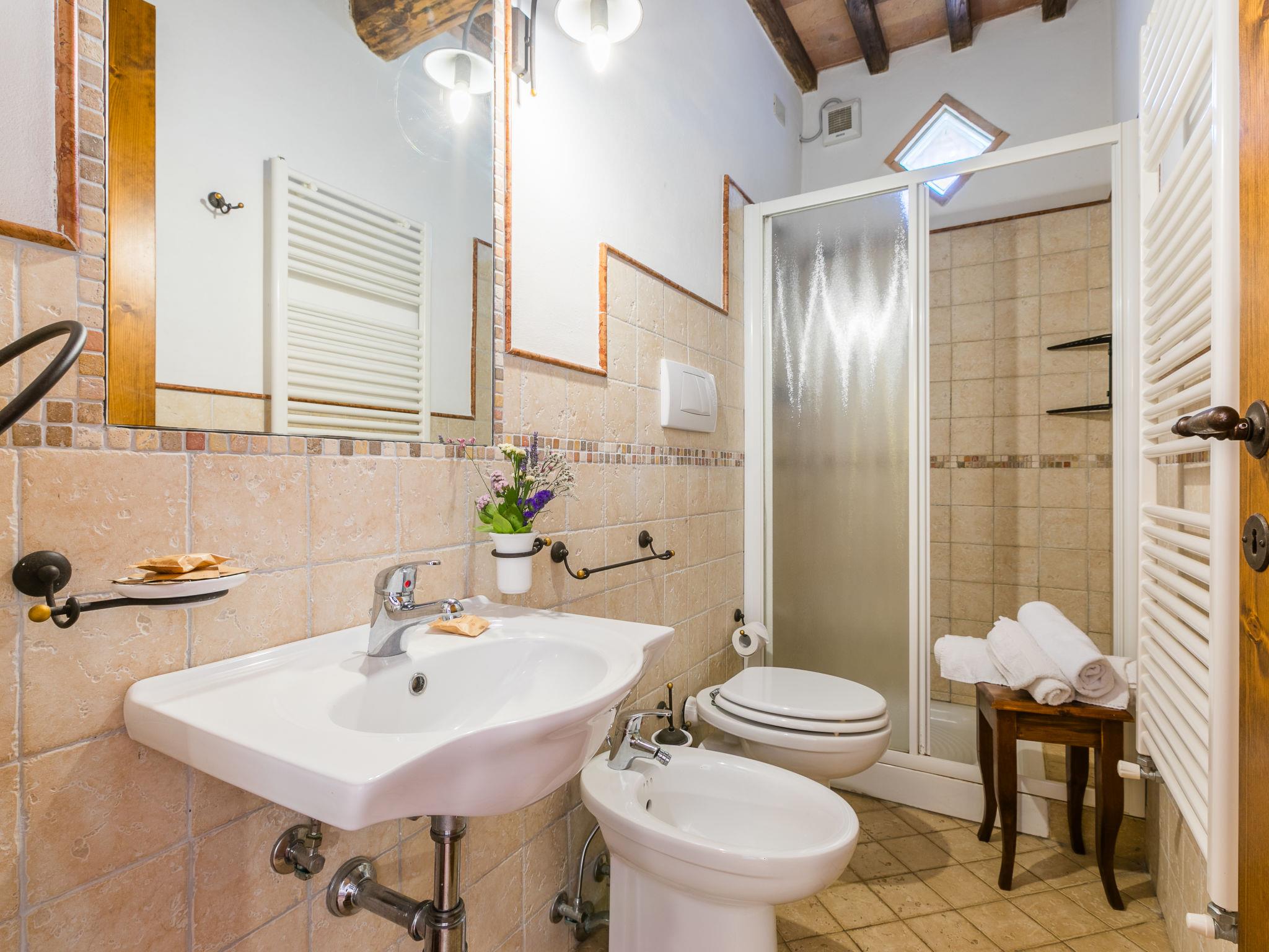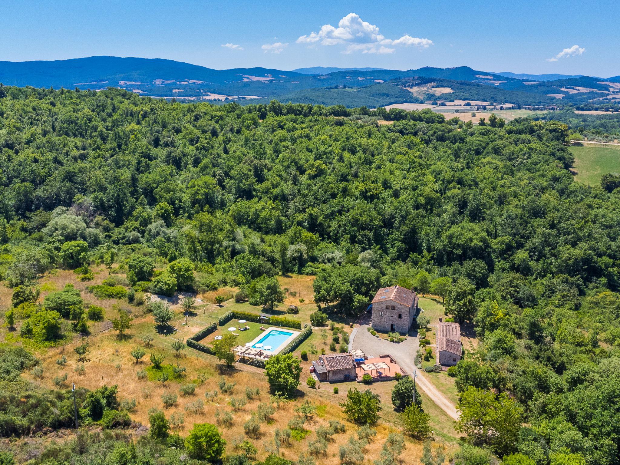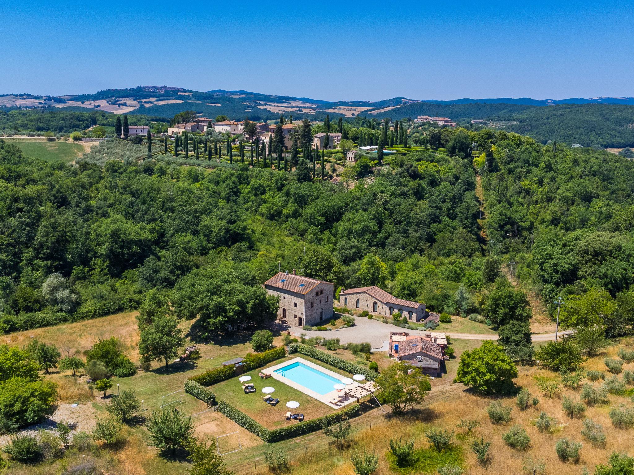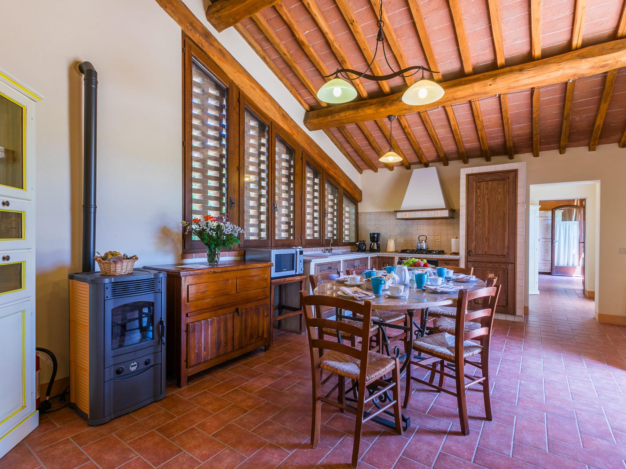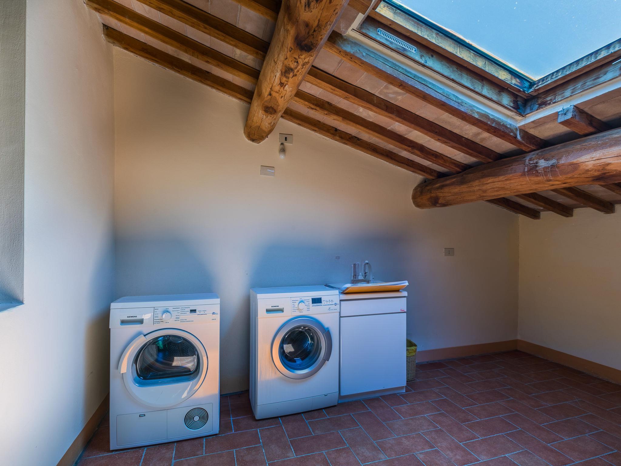 "Podere San Giuseppe", 12-room villa 350 m2 on 2 levels. Spacious and bright, comfortable and tasteful furnishings: small living room with open-hearth fireplace and TV (flat screen), air conditioning. Dining room with air conditioning. Exit to the garden. Living/dining room with dining table, kitchen corner and air conditioning. 4 double bedrooms, each room with TV (flat screen), air conditioning. Exit to the garden. Living room with open-hearth fireplace and air conditioning. Exit to the garden. Large kitchen (oven, dishwasher, Gas stove, 6 gas rings, toaster, kettle, microwave, freezer, electric coffee machine, pizza oven). Exit to the garden, to the patio. 5 showers/bidet/WC. Upper floor: 4 double bedrooms, each room with shower/bidet/WC and TV (flat screen), air conditioning. Heating (extra), air-conditioning. Large patio. Terrace furniture, barbecue, deck chairs, box-room. Facilities: washing machine, dryer, iron, children's high chair, baby cot for up to 2 year olds, hair dryer. Internet (WiFi, free). Parking at the house. Please note: non-smokers only. Private entrance, smoke alarm, fire extinguisher. No internal connecting door between the separated properties. The pool mentioned in the description is for private use. IT052012C2A7PECFIF,IT052012C27BRKFIZO