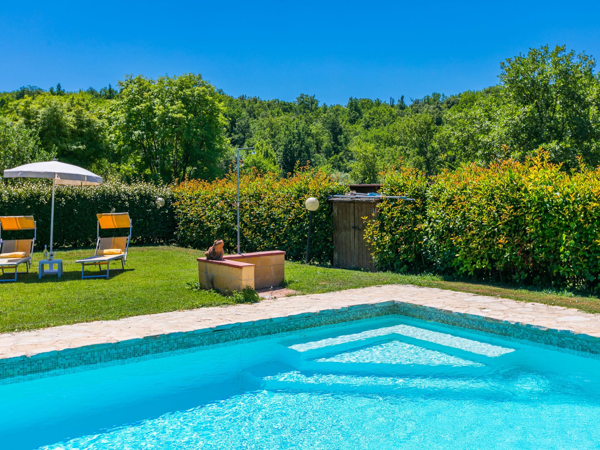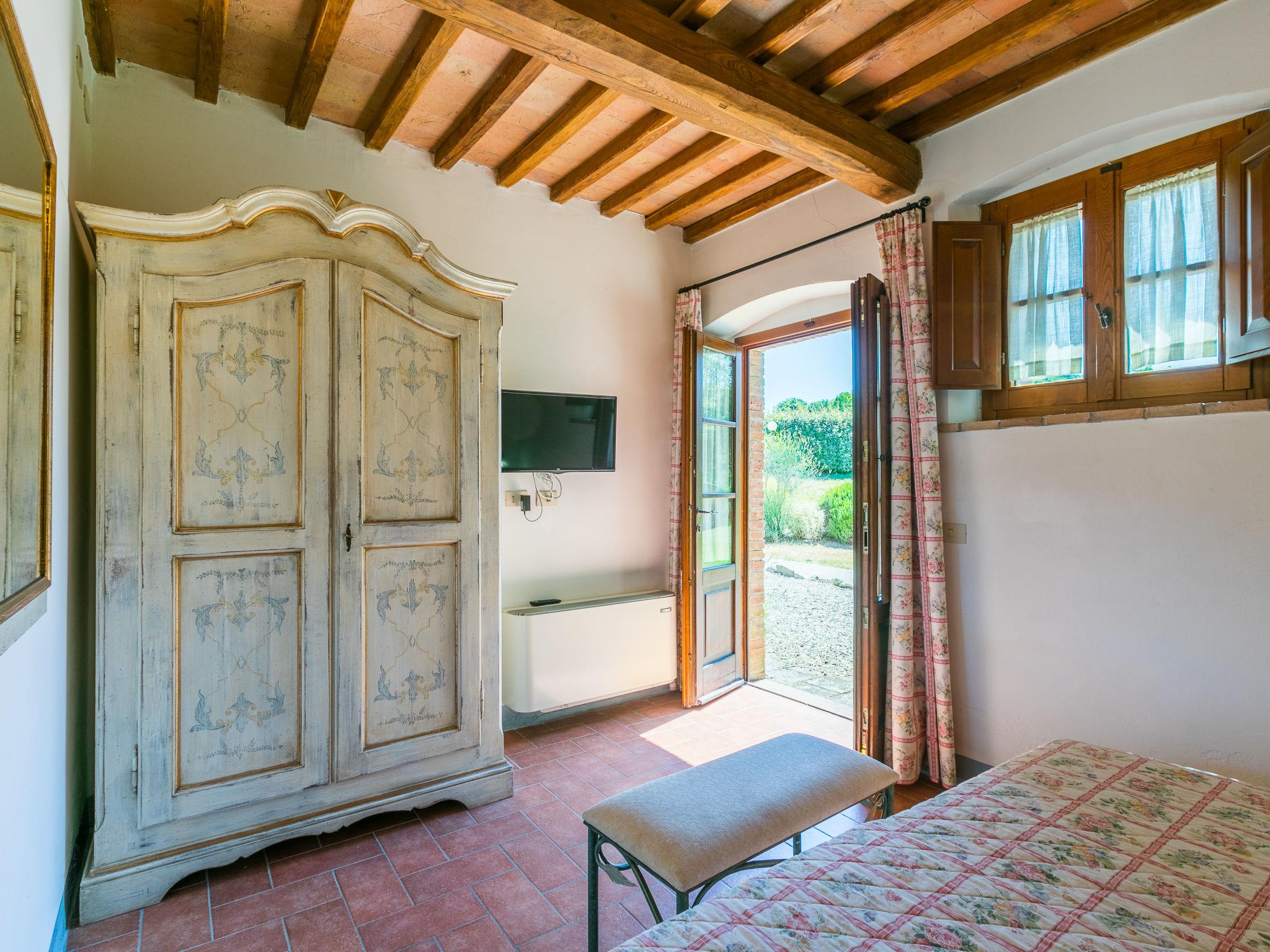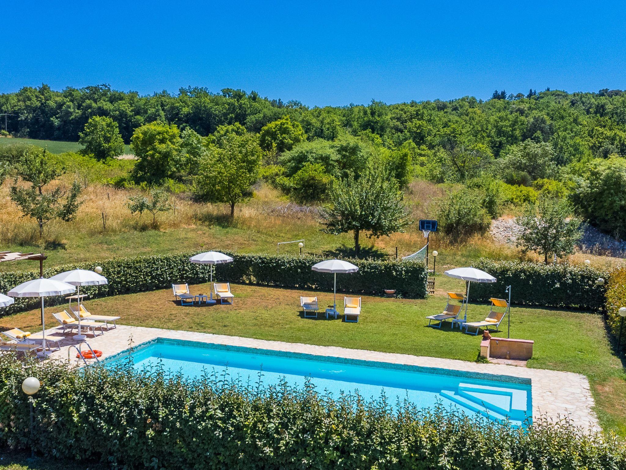 "Podere San Giuseppe sleep 12", 9-room house 270 m2 on 2 levels. Spacious and bright, comfortable and tasteful furnishings: open small living room with open-hearth fireplace and TV (flat screen), air conditioning. Living room with open-hearth fireplace and air conditioning. Exit to the garden. Dining room with air conditioning. Exit to the garden. 2 double bedrooms, each room with shower/WC and TV (flat screen), air conditioning. Exit to the garden. Large kitchen (oven, dishwasher, Gas stove, 6 gas rings, toaster, kettle, microwave, freezer, electric coffee machine, pizza oven) with dining table. Exit to the patio. Shower/bidet/WC. Upper floor: 4 double bedrooms, each room with shower/bidet/WC and TV (flat screen), air conditioning. Heating (extra), air-conditioning. Large patio, garden, lawn. Terrace furniture, barbecue, deck chairs, covered balcony, box-room. View of the countryside. Facilities: washing machine, dryer, iron, children's high chair, baby cot for up to 2 year olds, hair dryer, logs (extra). Internet (WiFi, free). Parking at the house. Please note: non-smokers only. Private entrance, smoke alarm, fire extinguisher. The pool mentioned in the description is for private use. IT052012C27BRKFIZO