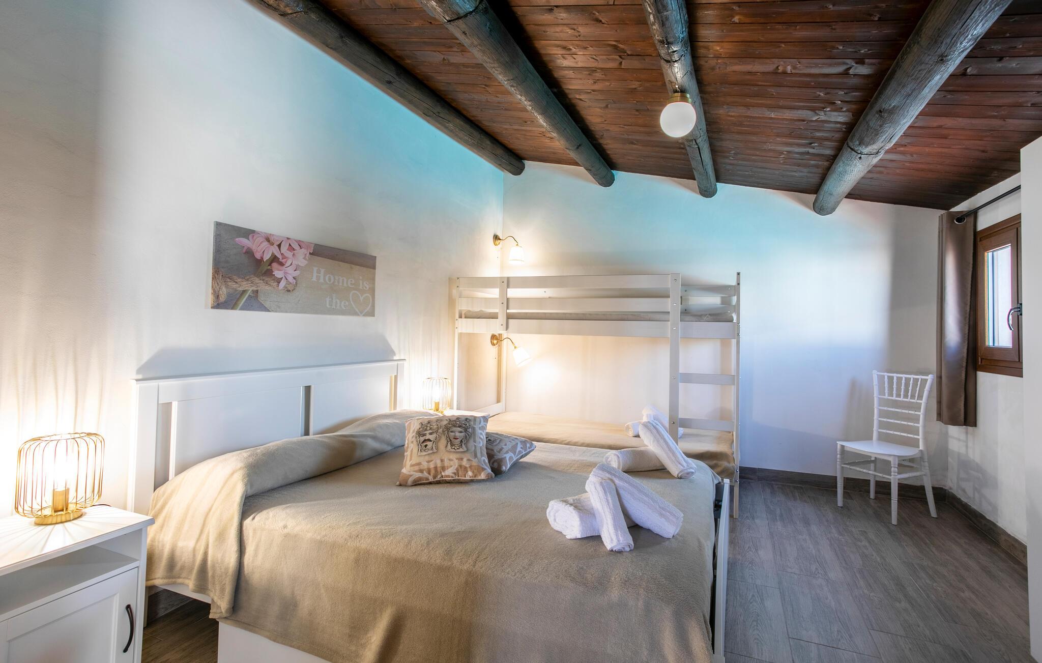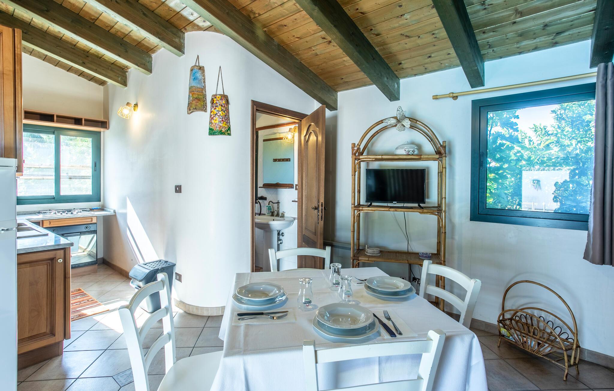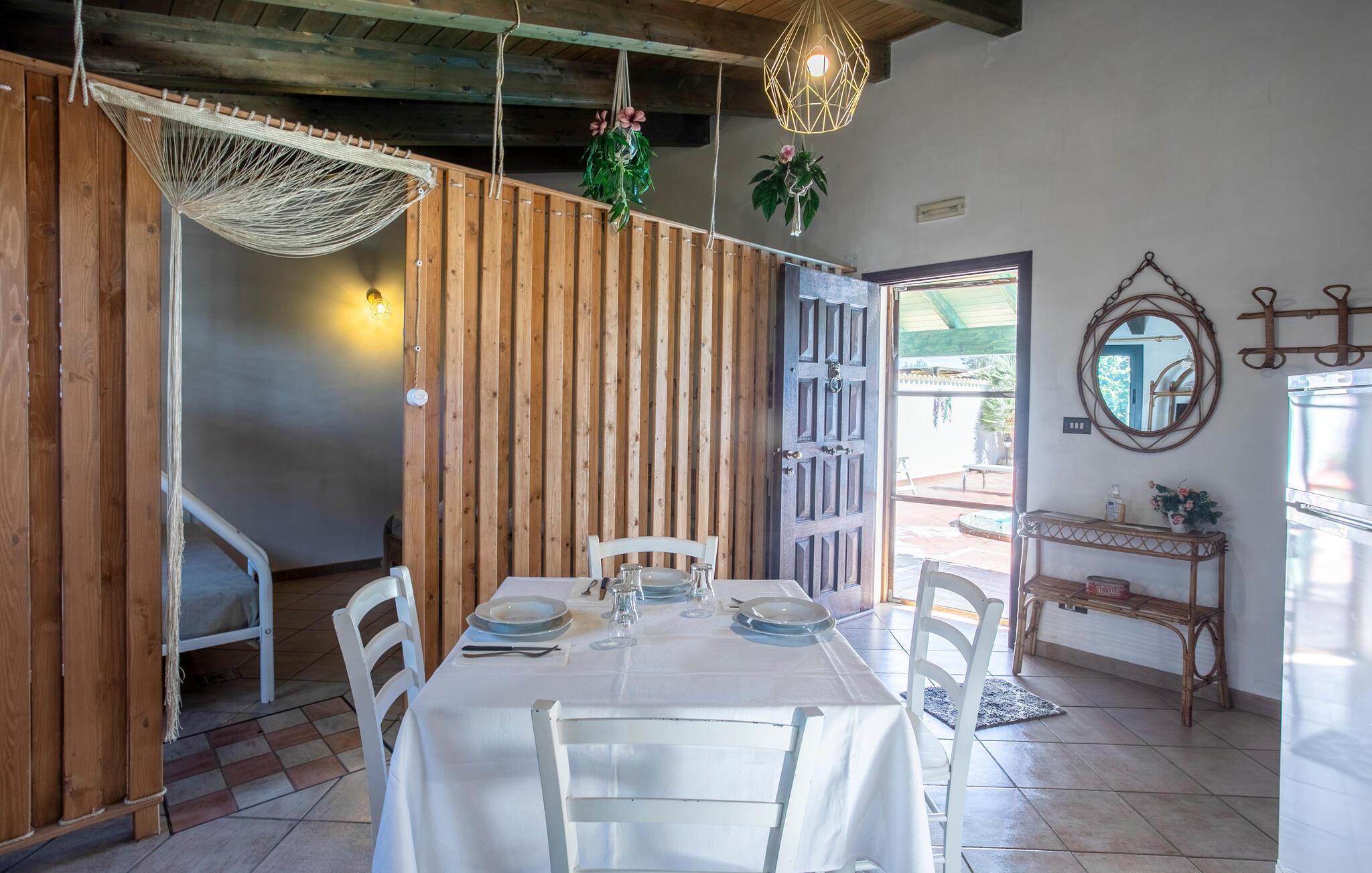 Det innbydende huset ønsker deg velkommen i en idyllisk beliggenhet med utsikt over det pittoreske landskapet på det sørlige Sicilia. Se frem til koselige rom og tradisjonelle, hjemmekoselige møbler. Her kan du slappe av i rustikke omgivelser, nyte måltidene sammen på spisekjøkkenet og sette deg godt til rette om kvelden etter en begivenhetsrik dag.