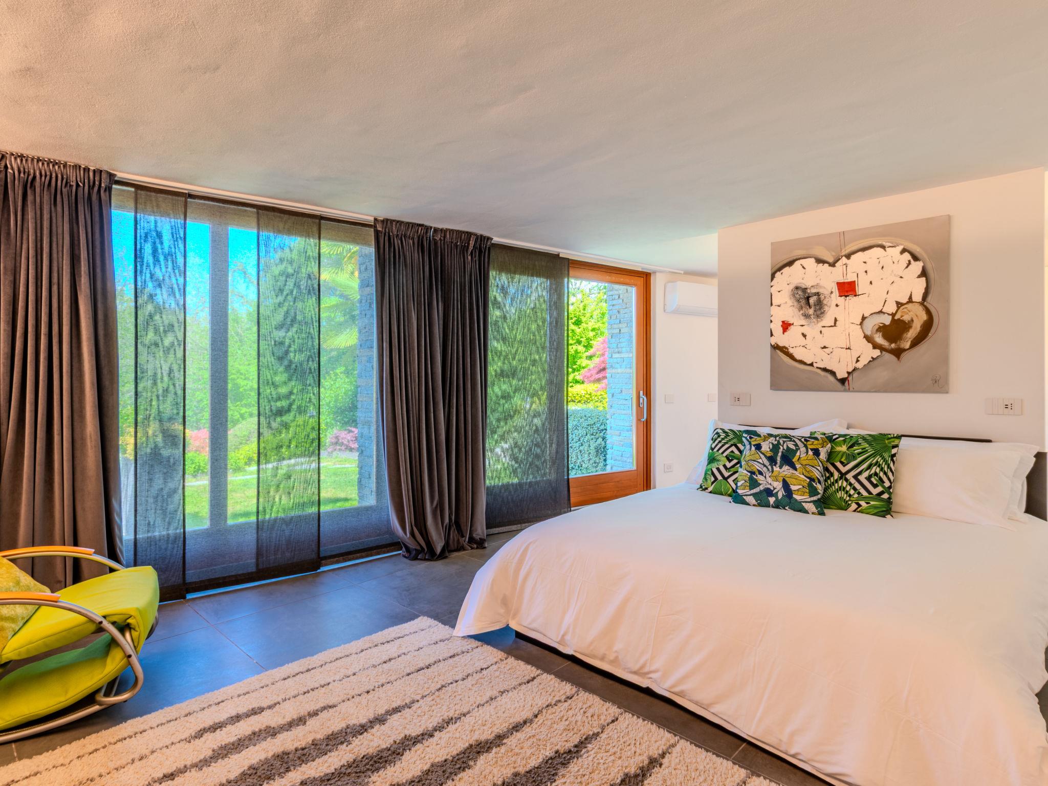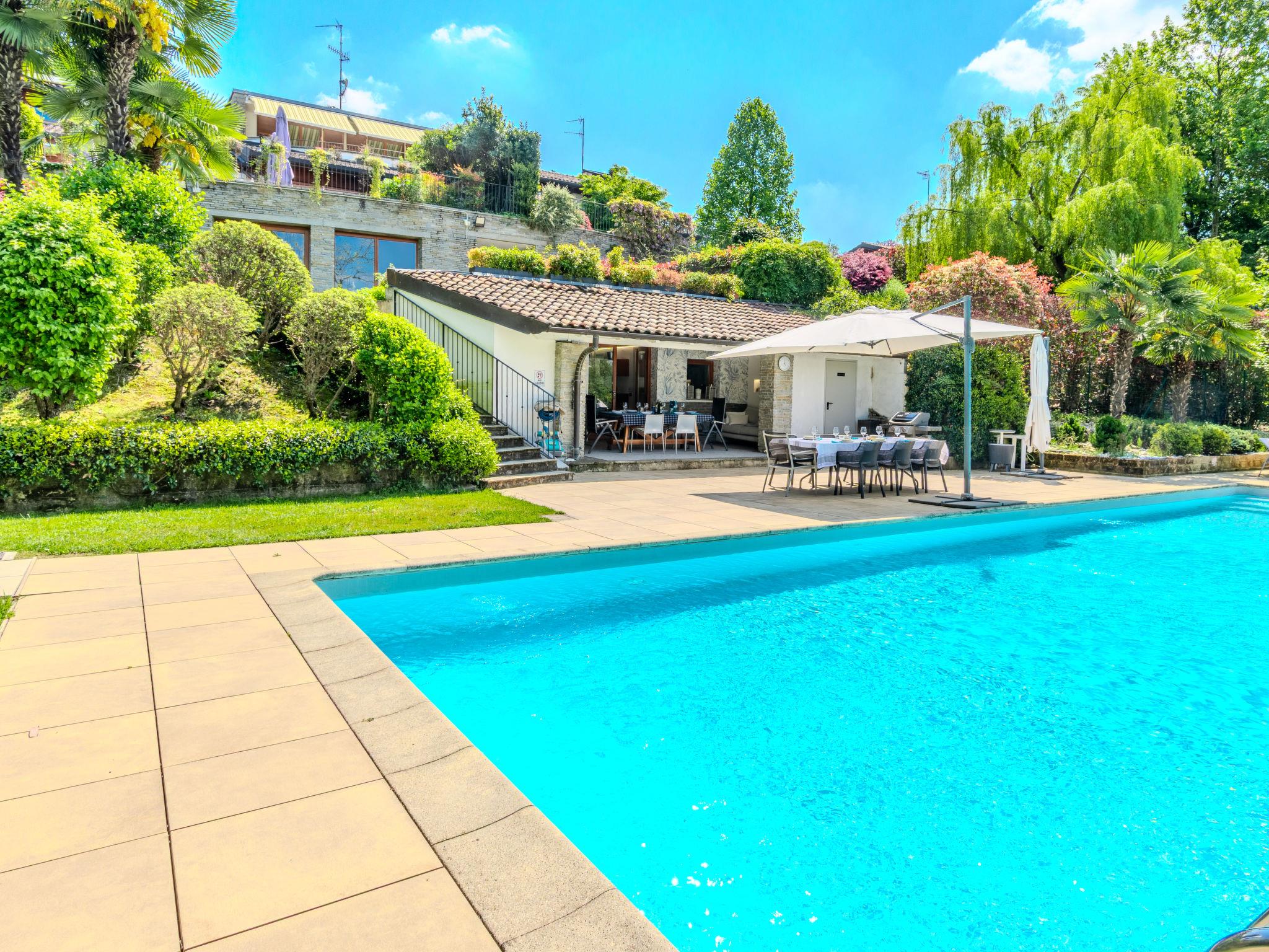Casnate con Bernate 7 km from Como: Beautiful villa "Belvedere", 3 storeys. In the resort Casnate con Bernate, 8 km from the centre of Como, 43 km from the centre of Milano, in a quiet, sunny position residential area (villas), 7 km from the lake. Private: large terraced garden with lawn and trees, swimming pool angular (seasonal availability: 01.Apr. - 30.Oct.). In the house: fitness room, table tennis, washing machine. Room cleaning on request (extra). Parking on the premises. Shop, supermarket, restaurant, bar 800 m, bus stop "P.Don Monti" 350 m, railway station "Portichetto-Luisago" 1.9 km. Golf course (18 hole) 10 km, tennis 800 m. Nearby attractions: Chiesa dei Santi Ambrogio e A. Abate, Villa Casnati Pedroni, Chiesa Cattedrale di Como, Villa Olmo a Como, Tempio Voltiano a Como, Jungle Raider Park Albavilla. Well-known lakes can easily be reached: Lago di Como. Hiking paths: Oasi del Bassone-Torbiera di Albate, Monte Bolletone, Alpe del Vicerè. Please note: car recommended. Groups of teenagers on request only. The owner does not accept any youth groups. The owner lives on the same property. The owner has a dog.