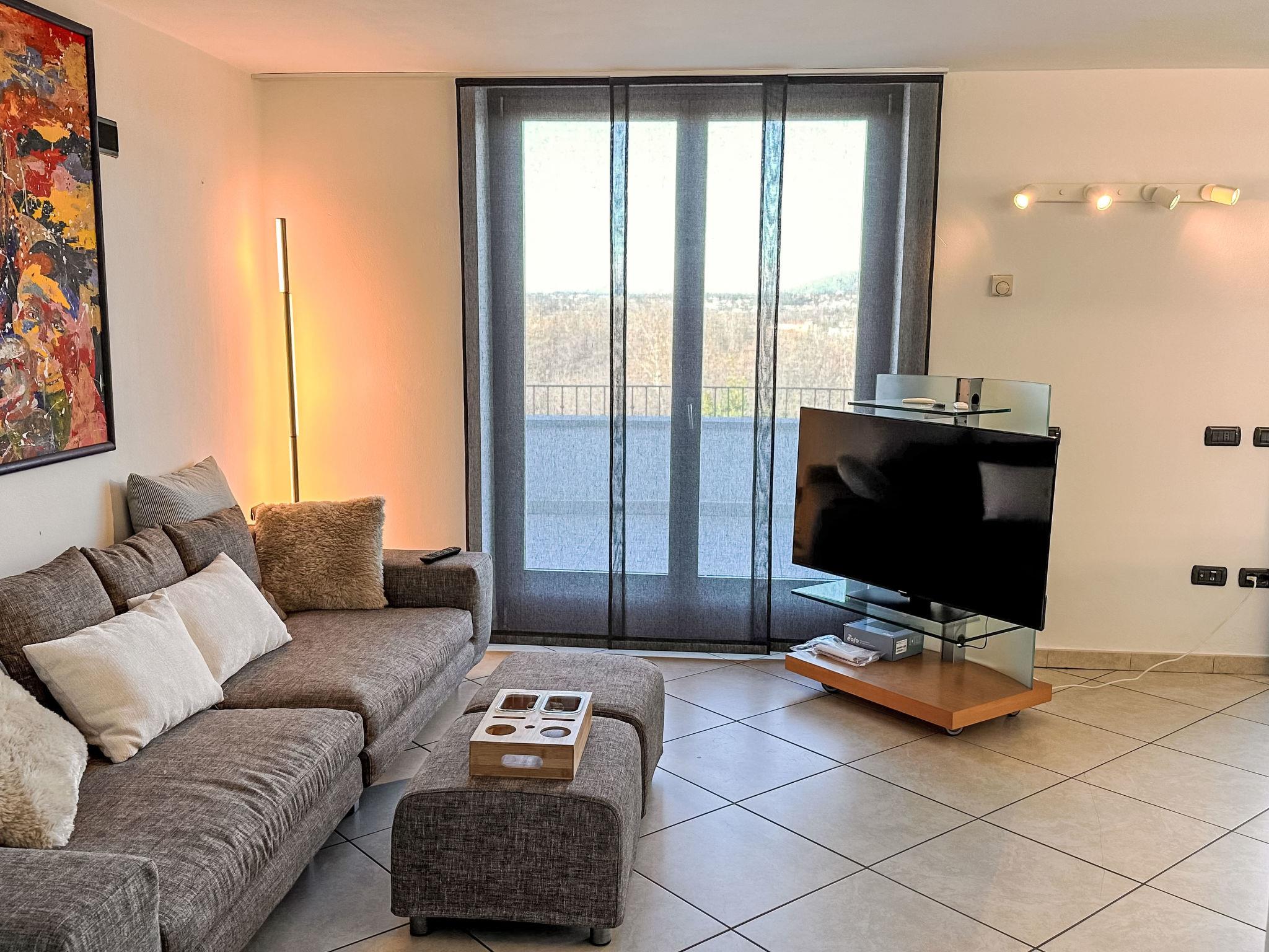 4-room apartment 120 m2 on 2 levels on 1st floor. Tasteful and cosy furnishings: living/dining room with dining table and TV. Exit to the terrace. 1 room with 1 bed and 1 double bed (180 cm, length 200 cm). 1 room with 1 double bed (160 cm, length 200 cm). Open kitchen (oven, dishwasher, 4 induction hot plates, toaster, kettle, microwave). Shower/bidet/WC. Gas heating, air-conditioning. On the lower ground floor: (exterior staircase), 1 large room with 1 bed, 1 double bed, shower/bidet/WC and TV. Exit to the garden, to the swimming pool. Terrace, large patio. Terrace furniture, deck chairs (6). Marvellous view of the mountains and the countryside. Facilities: washing machine, children's high chair, baby cot for up to 2 year olds, hair dryer. Internet (WiFi, free). Parking (2 cars). Please note: non-smokers only. Maximum 1 pet/ dog allowed. Private entrance, fire extinguisher, no lift. No internal connecting door between the floors. The pool mentioned in the description is for private use. IT013053C2DRN5KZV5