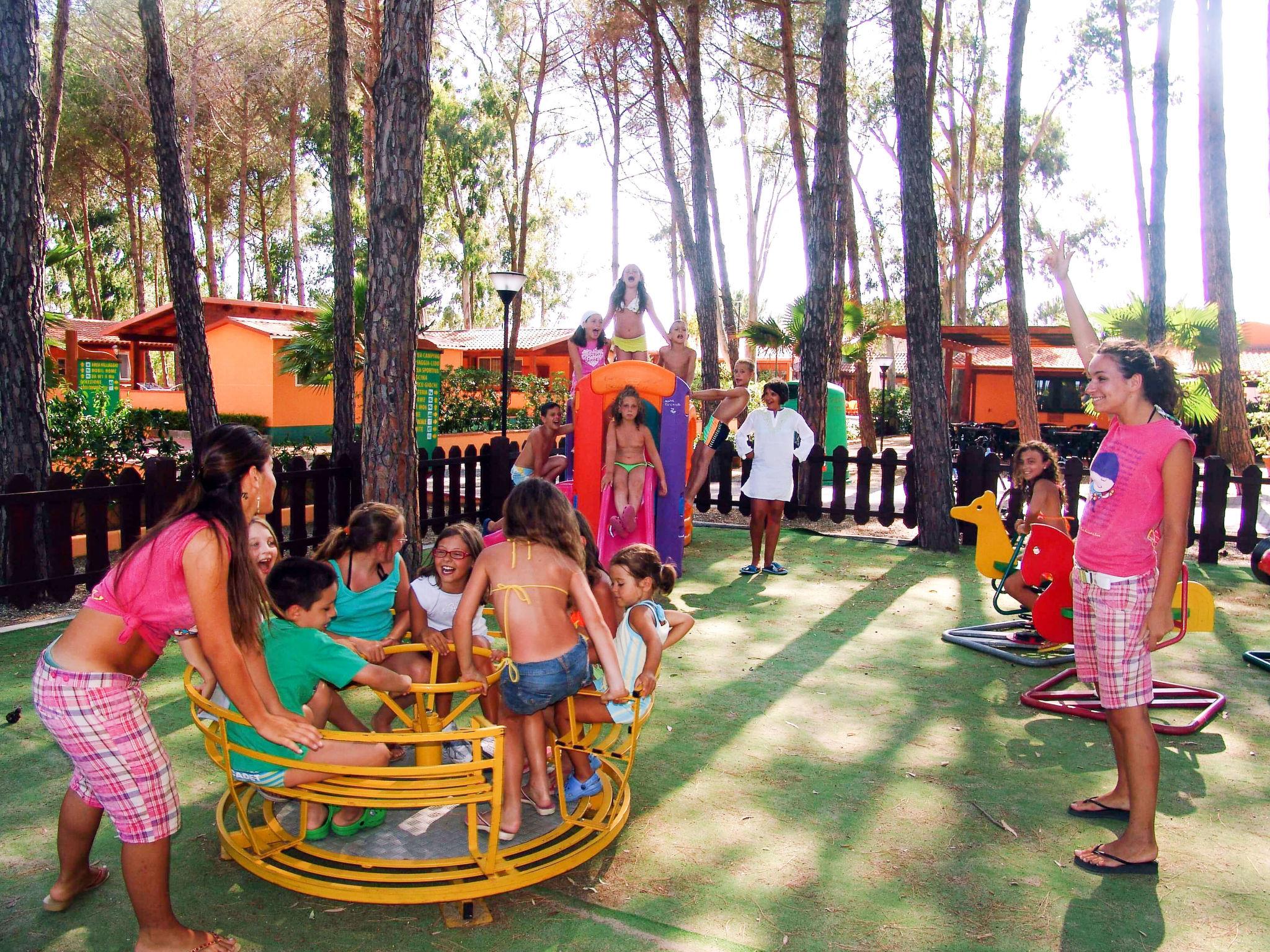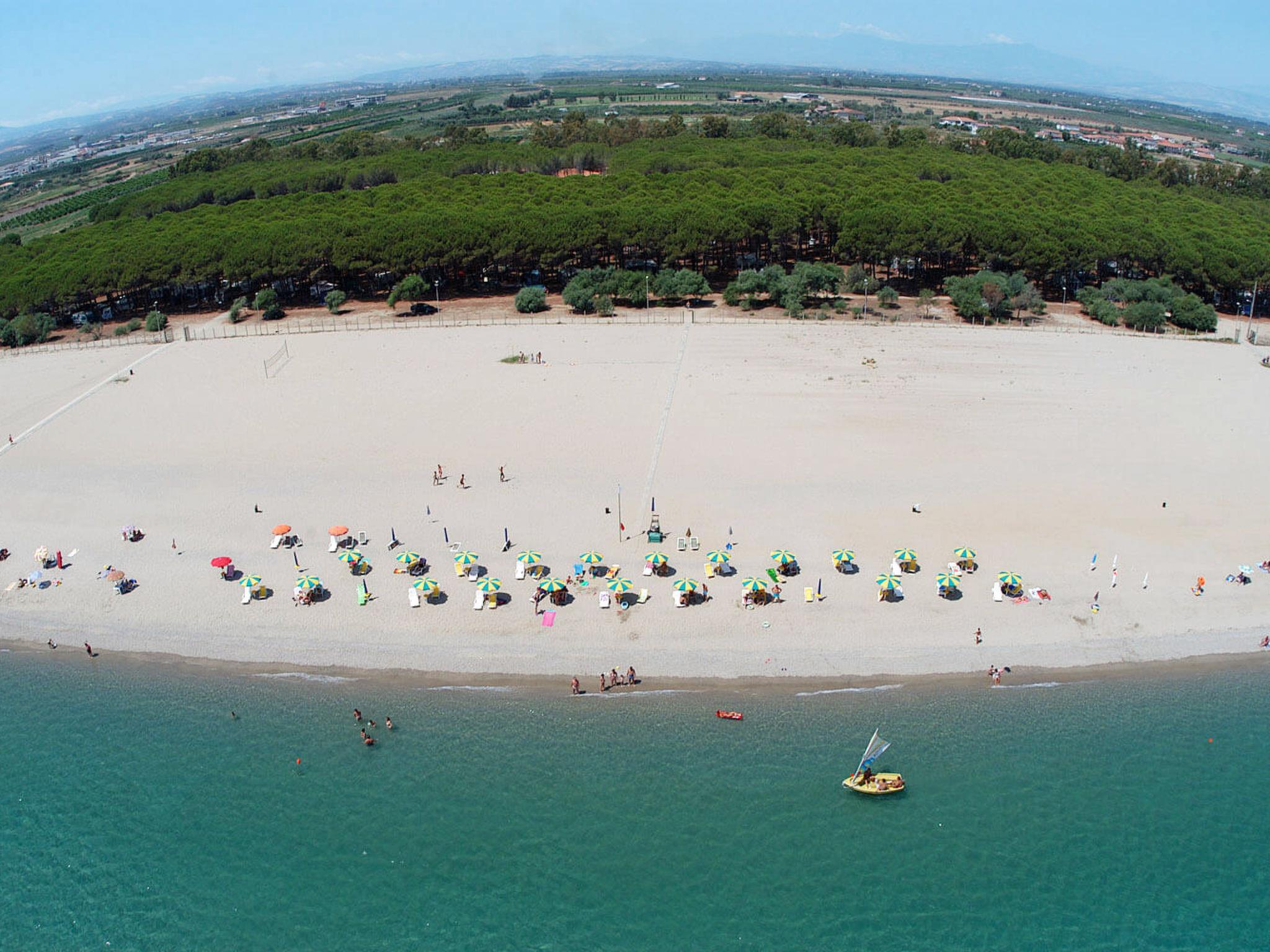 Child friendly holiday village "Camping Thurium". 7 km from the centre of Sibari, 9 km from the centre of Schiavonea, 10 km from the centre of Corigliano Calabro, 350 m from the sea, 350 m from the beach. For shared use: property 40'000 m2 (fenced), trees, swimming pool kidney-shaped (20 x 10 m, depth 140 - 190 cm, seasonal availability: 11.Jun. - 03.Sep. pool opening hours: 09:00-19:00). Outdoor shower, tennis (extra), table tennis (extra), beach volleyball. In the complex: reception, restaurant, bar, bistro, WiFi, table tennis (extra). Shopping facilities, boutique, kiosk, washing machine (for shared use, extra), bicycle rental. Half board possible (extra). Shop 5 km, bus stop 9 km, sandy beach 350 m. Nearby attractions: Sibari 14 km, Rossano 25 km. Please note: entertainment in the season. The owner does not accept any groups. The owner does not accept any youth groups.