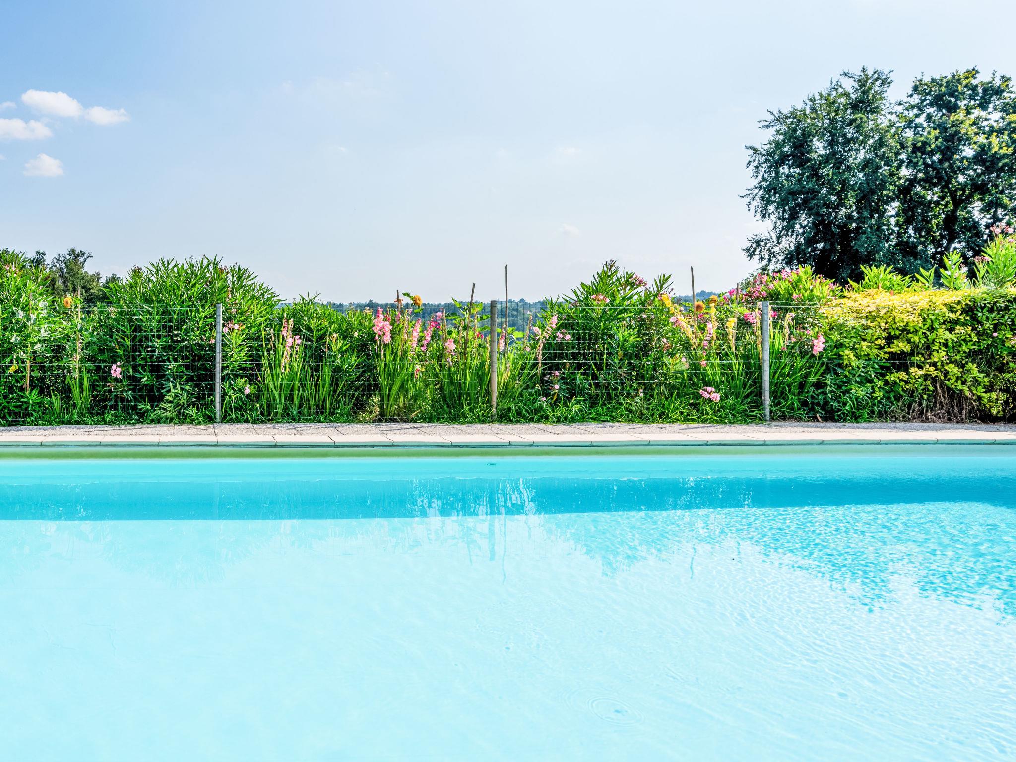 Rustic country house "Bricco dei Ciliegi". 3 houses in the residence. 1.5 km from the centre of Cortazzone, 20 km from the centre of Asti, 45 km from the centre of Turin, on top of a hill, in the countryside. For shared use: property 9'000 m2, garden (not fenced) with lawn and plants, meadow, orchard, swimming pool (10 x 5 m, depth 140 cm, seasonal availability: 15.May. - 15.Oct.). Outdoor shower, arbour, terrace, garden furniture, barbecue house, pool maintenance by the owner/gardener. In the house: storage room for bicycles. 1 km long narrow motor access. Parking at the house on the premises. Supermarket 6 km, bus stop 2 km, railway station "Asti" 20 km, outdoor swimming pool 20 km. Golf course (18 hole) 10 km. Local sale of farm products. Owner lives in separate semi-detached house.