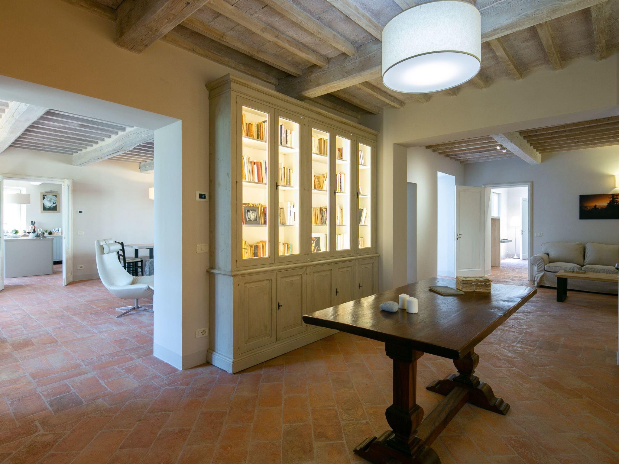 Just a stone's throw from the Umbrian border and the Etruscan town that it dominates from above, Villa Severina is immersed in a corner of Tuscany characterised by the succession of gentle vineyards from which the renowned Syrah of Cortona Doc is made. Crossing verdant rows of vines that follow one another as far as the eye can see, it is also possible to reach on foot or by bicycle the many wine cellars of the famous Wine Route where one can stop for interesting tastings; the very close Lake Trasimeno; the many towns of historical and cultural interest in Umbria and Tuscany. For everyday shopping, in a few minutes by car you can reach Terontola, 6 km away, and Camucia, 9 km.