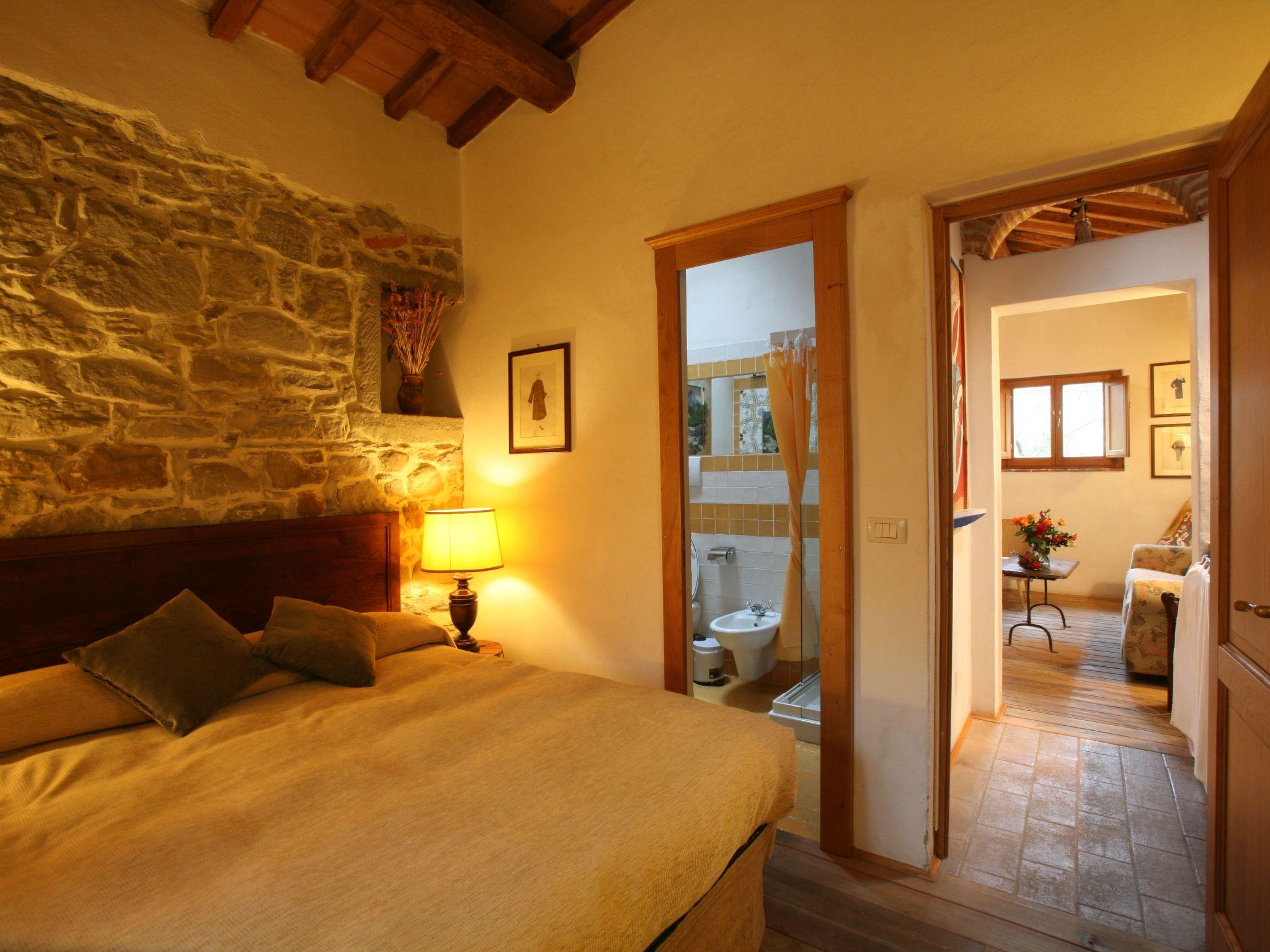 From the entrance door, on the left-hand side there is access to the sitting room with fireplace while on the right-hand side there is access to the Sala della Pastaia whose name derives from an old piece of furniture which today contains various objects but which was used to dry pasta! Today it is a large and spacious dining room where guests can spend moments of convivial serenity Also on the ground floor is a new and comfortable kitchen equipped with everything a good chef would wish to have as tools of the trade.A staircase made of pietra serena, typical of the Cortona area, leads to the first floor where the sleeping area is accessed. Each room has been created following a different theme that differentiates them from one another. At the back of the house, surrounded by greenery and olive trees, is the private swimming pool. Sheltered from prying eyes and not visible from the entrance, the particular position chosen guarantees plenty of sunshine, peace and intimacy. The flooring used for the exterior is teak, which does not heat up in the sun and allows you to walk barefoot or sit on the edge or on the ground without the danger of getting burnt.