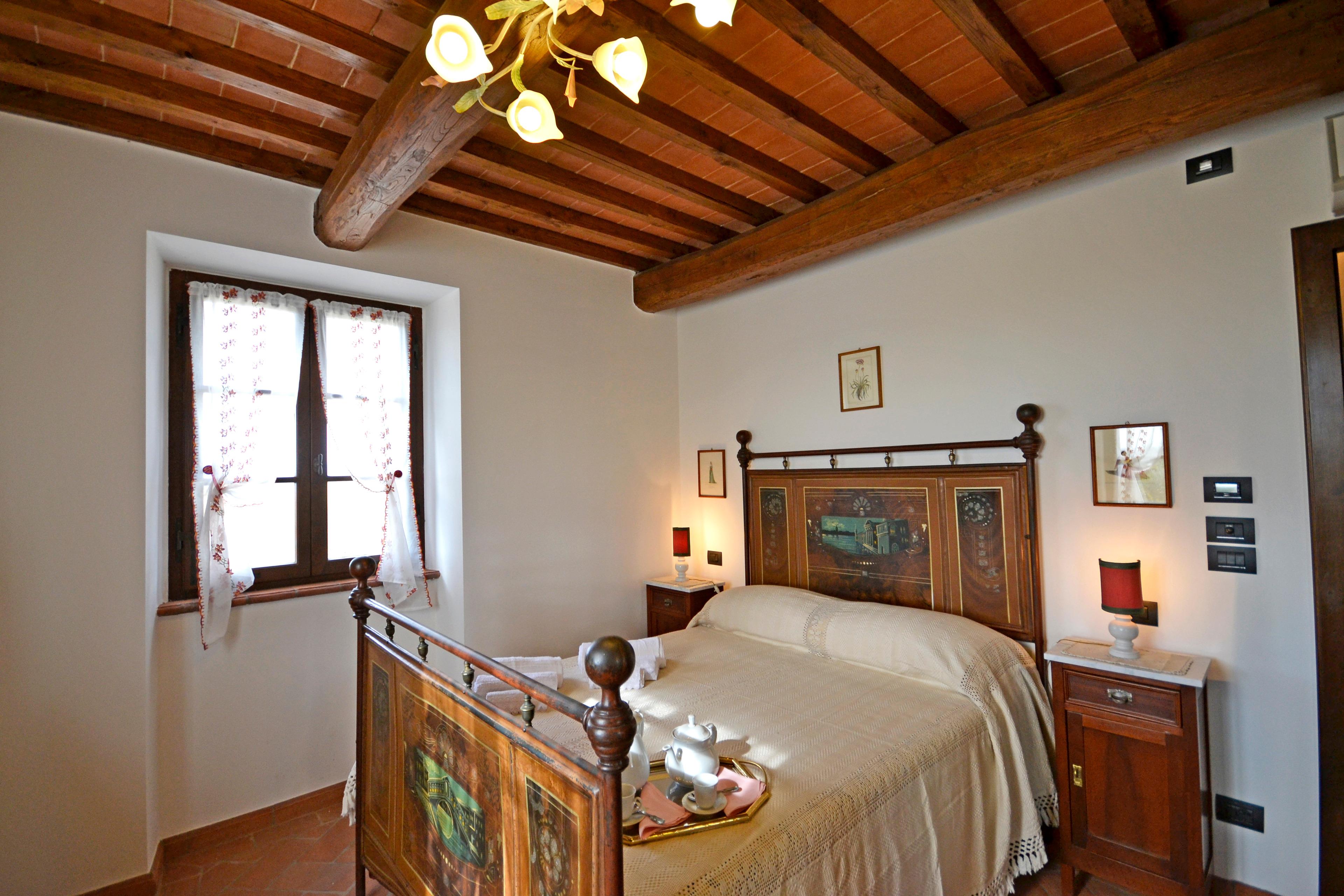Die Innenräume von Villa Anita sind geräumig, hell und durch Decken mit freiliegenden Holzbalken und Terrakottaböden geprägt, die an den rustikalen toskanischen Stil erinnern, der auf der ganzen Welt berühmt ist. Die Villa erstreckt sich über drei Etagen und ist in drei Wohnungen aufgeteilt, die miteinander kommunizieren. Eine Eigenschaft, die es für große Gruppen ideal macht, alle zusammen zu sein und gleichzeitig die Privatsphäre zu wahren. Man kann das Erdgeschoss von drei verschiedenen Eingängen aus erreichen: der erste Eingang bietet Zugang zu einem Wohnzimmer mit Steinkamin, Sofa und Sat-TV, das zu einer voll ausgestatteten Küche und einem Esstisch sowie zu einem Einzelzimmer, einem Doppelzimmer und einem Schlafzimmer mit Badezimmer mit Dusche führt. Über den zweiten Eingang gelangen Sie in den größten Raum des Hauses, der mit einem Steinkamin und einem großen Esstisch ausgestattet ist. Von hier aus gelangt man über eine Steintreppe in den ersten Stock, wo sich ein Hauptschlafzimmer mit Bad mit Dusche und Badewanne befindet. Der Salon führt in eine zweite Küche, die ebenfalls komplett mit Esstisch und Sat-TV ausgestattet ist. Das Erdgeschoss wird durch zwei weitere Schlafzimmer ergänzt, ein Doppel- und ein Schlafzimmer mit Etagenbett und Badezimmer mit Dusche.