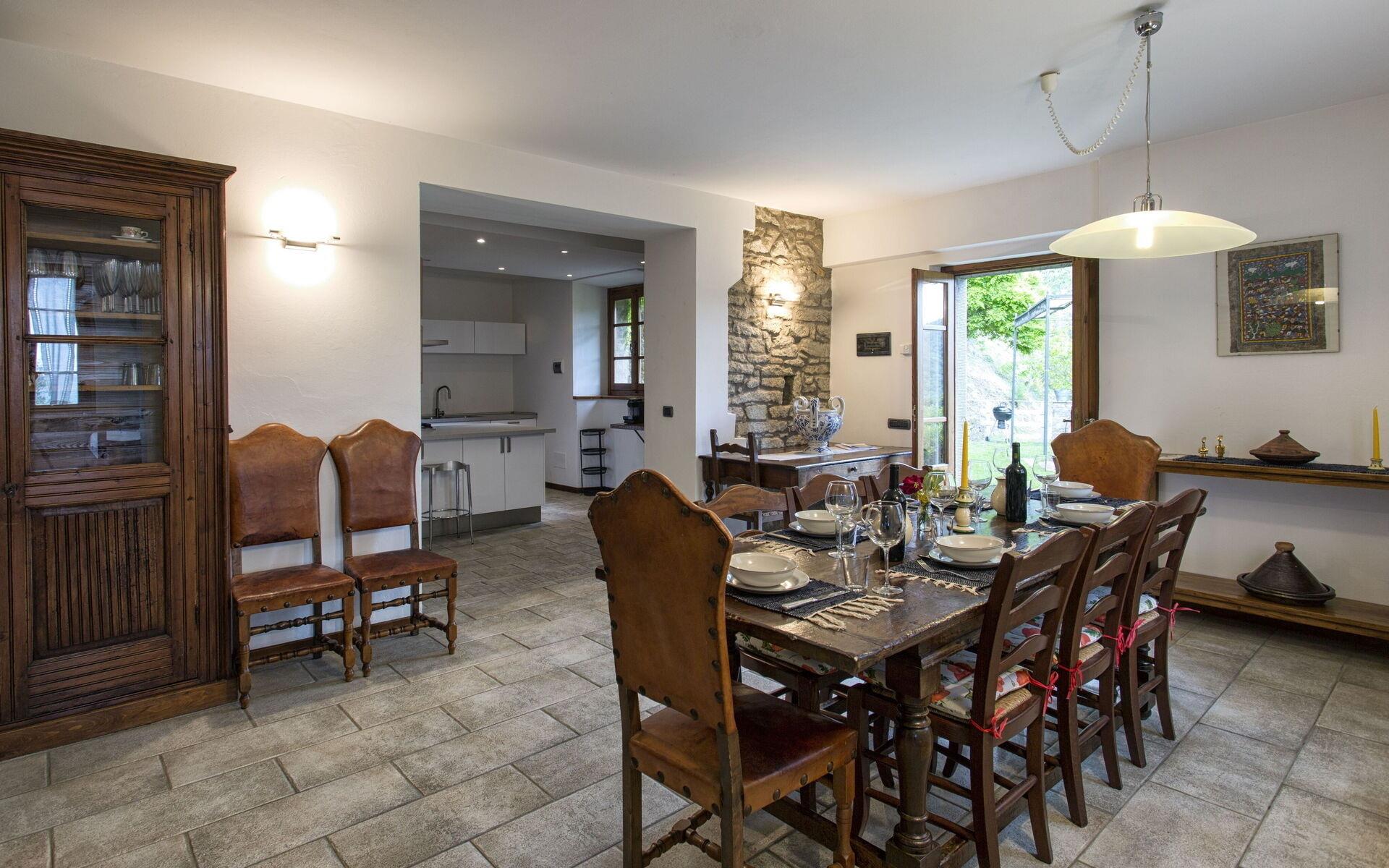 Die Villa besteht aus einem Erdgeschoss, wo große Räume herrschen: die Küche ist ein zeitgenössisches Meisterwerk, wo die große Kochinsel ein Treffpunkt für die Schaffung von traditionellen Gerichten begleitet von guter Laune und warum nicht, ein Glas guten Wein! Es stehen Ihnen zwei große Esszimmer zur Verfügung, beide mit angrenzendem Fernsehraum, in dem ein großes Ecksofa Sie bequem empfängt. Vom Fernsehraum aus gelangen Sie in den Wellnessbereich: Sie starten in der Holzsauna, um sich zu verjüngen, und gelangen dann in den Raum mit einem Whirlpool, der bequem Platz für 4 Personen bietet, und von dem aus Sie auch einen schönen Blick auf das Tal haben oder die Möglichkeit, die Fitnessgeräte zu benutzen. Der Wellnessbereich ist mit einem Bad mit Dusche ausgestattet.